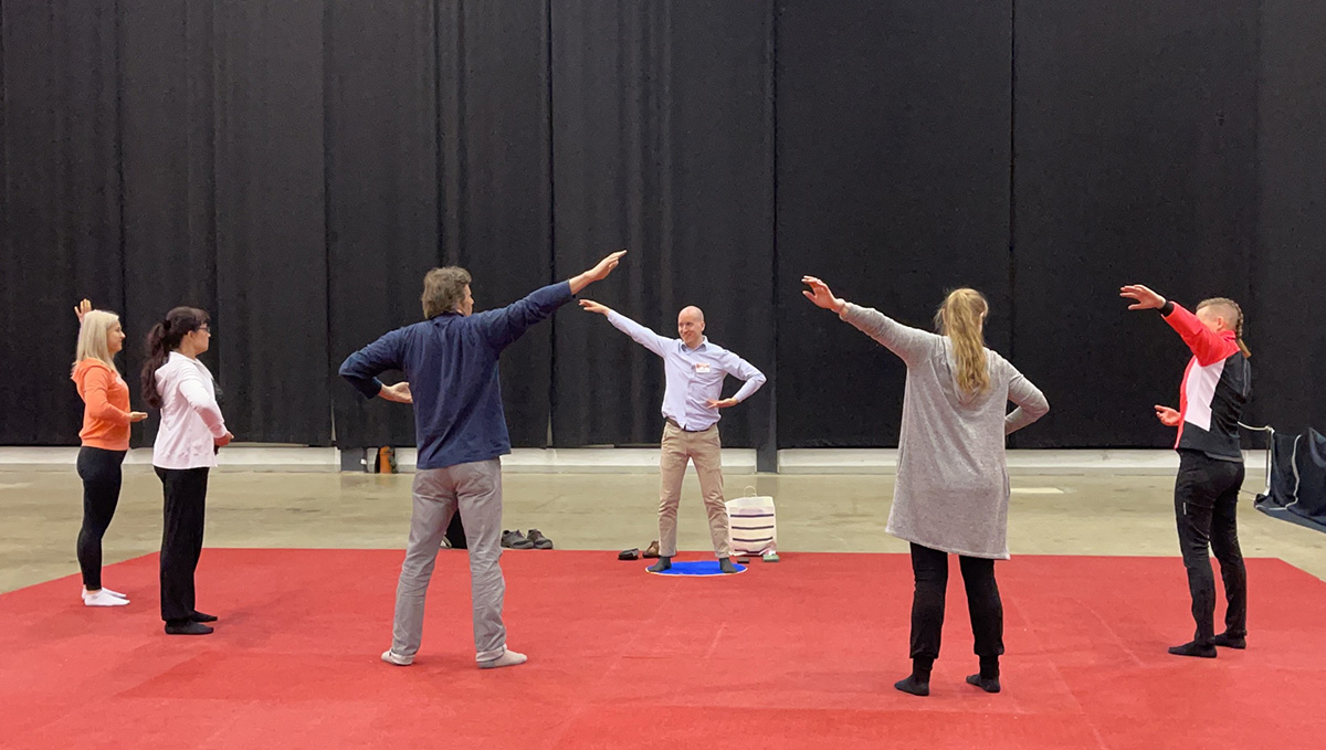 ![]() 图1~2:一些芬兰人对功法感兴趣,在博览会上当场学功。 |