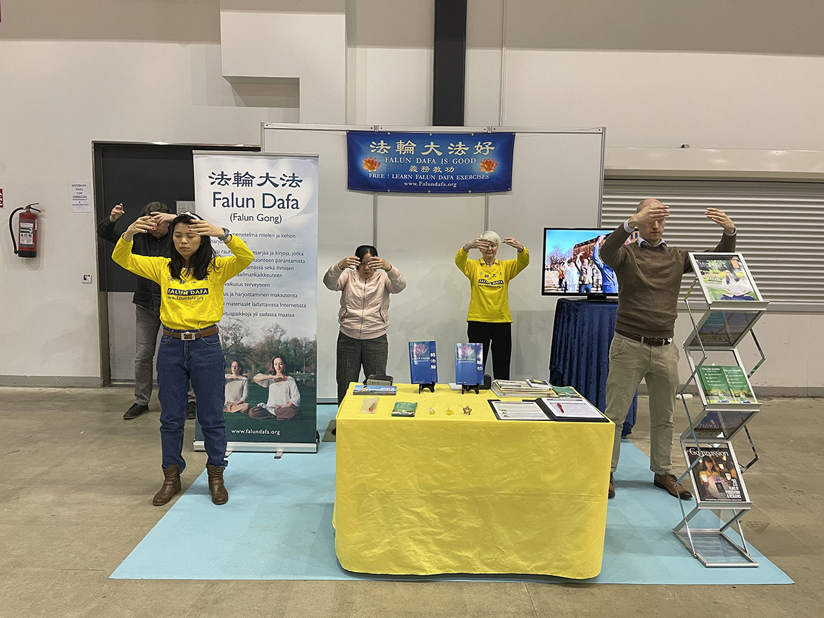 在这次博览会上,一位芬兰女士表示,她了解这场迫害,因为之前她到首都赫尔辛基时,看到法轮功学员在中共大使馆前抗议迫害。随后,这位女士在征签表上签了名,支持法轮功学员反迫害。