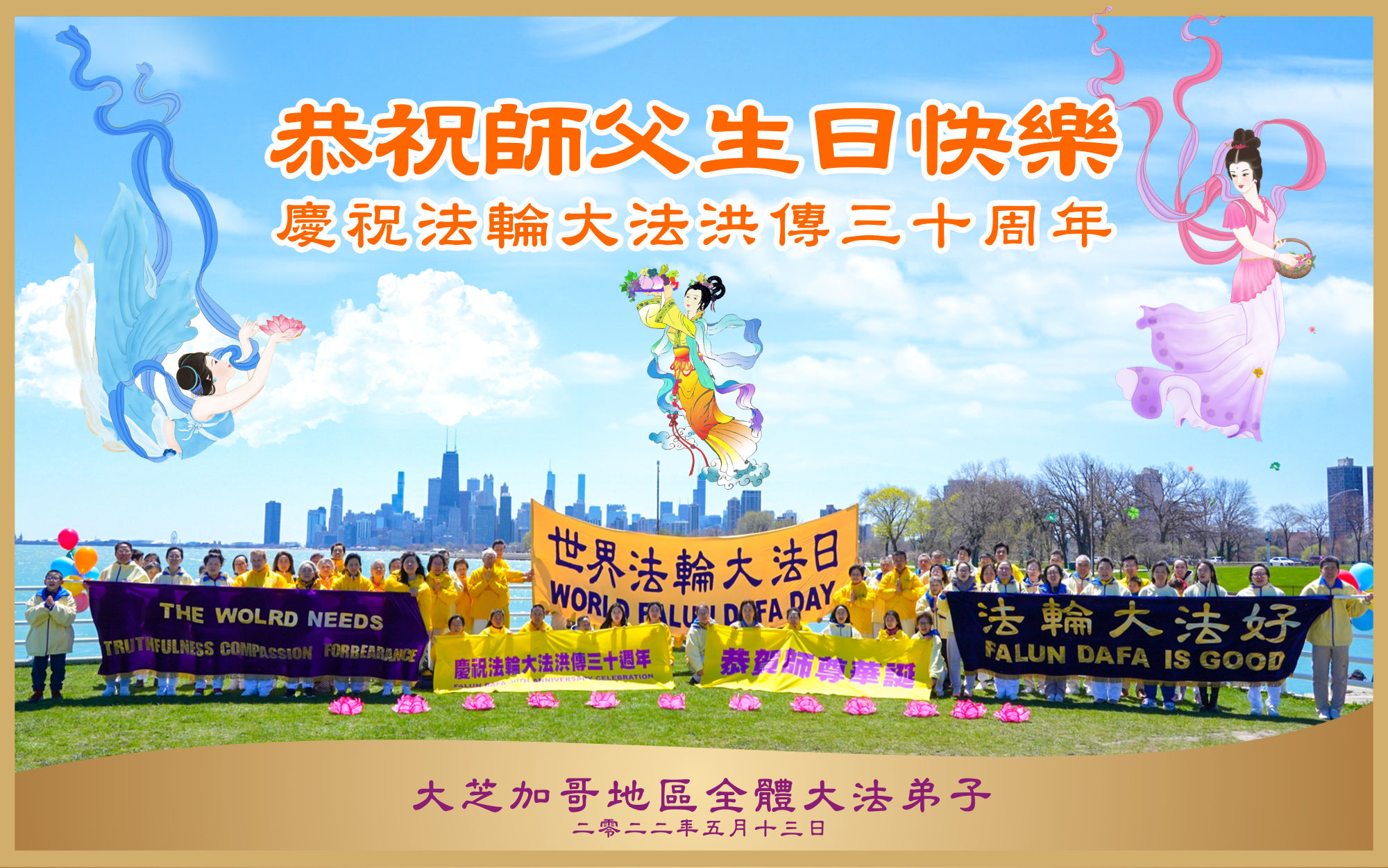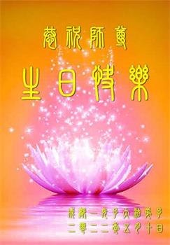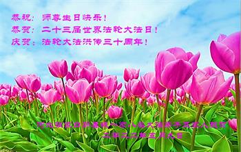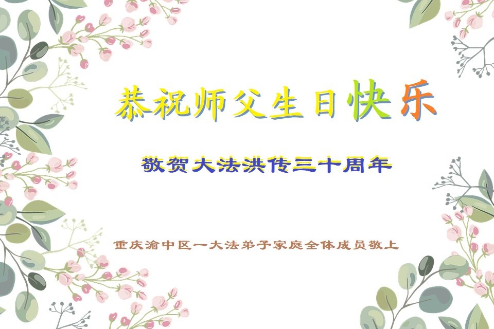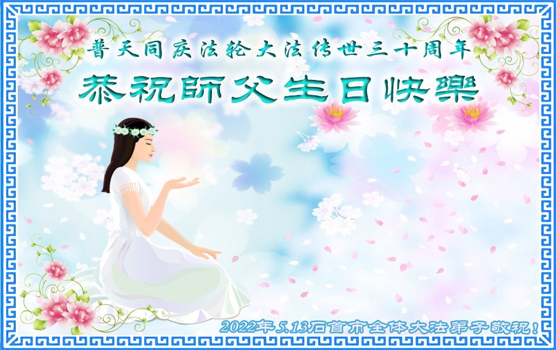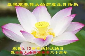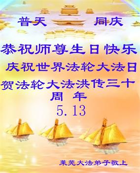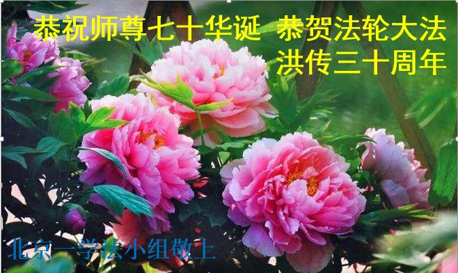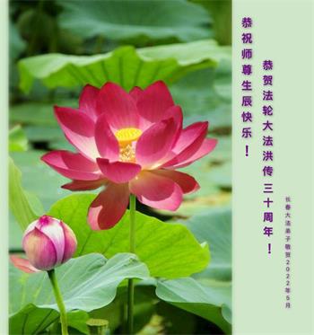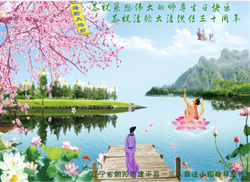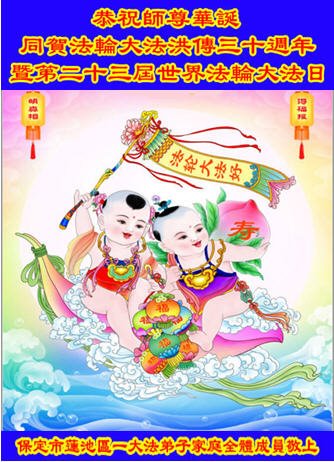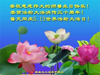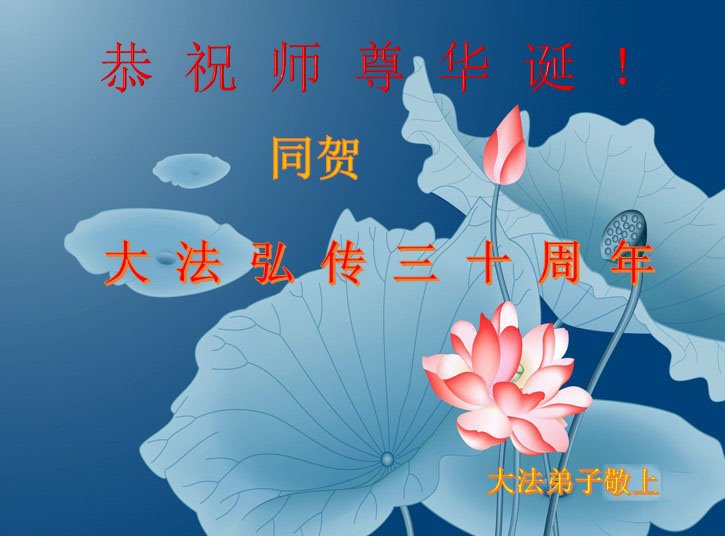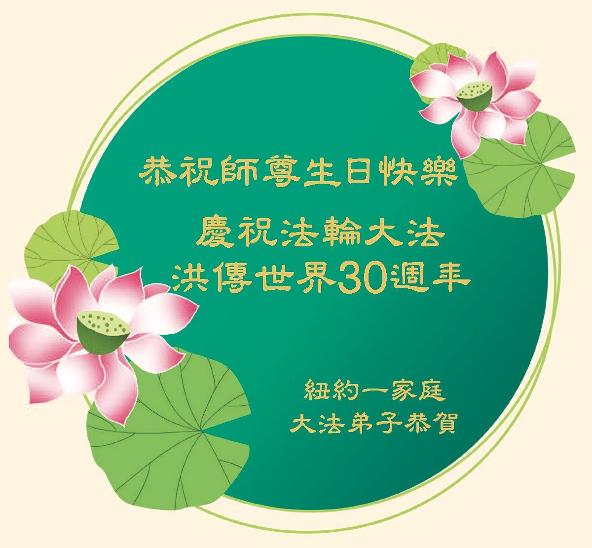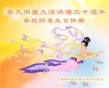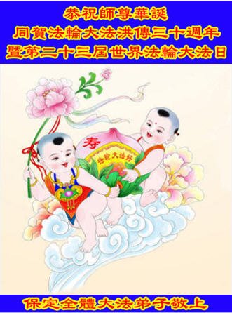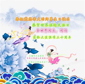 恭祝法轮大法洪传三十周年!恭祝慈悲伟大师尊生日快乐!