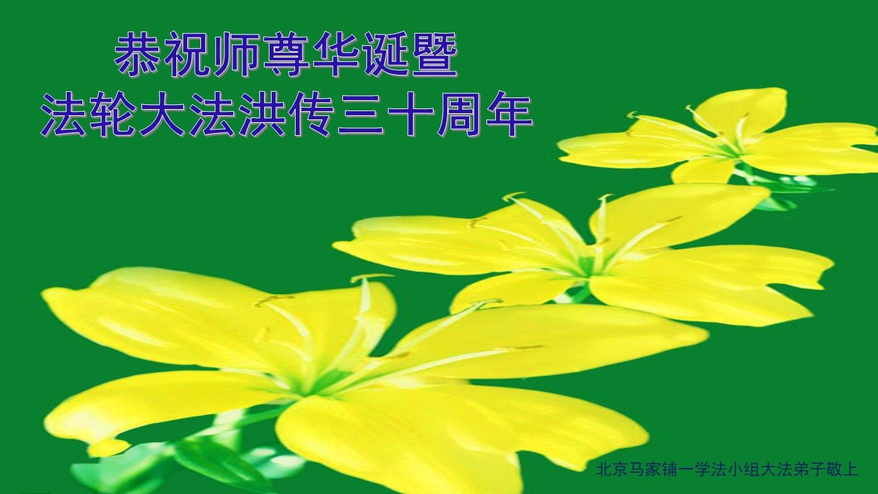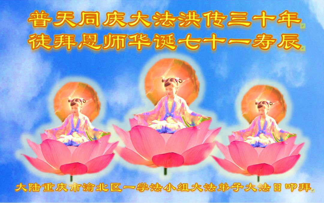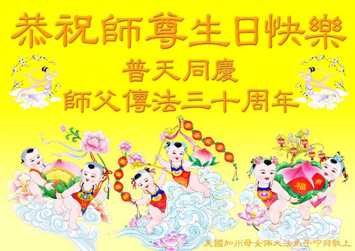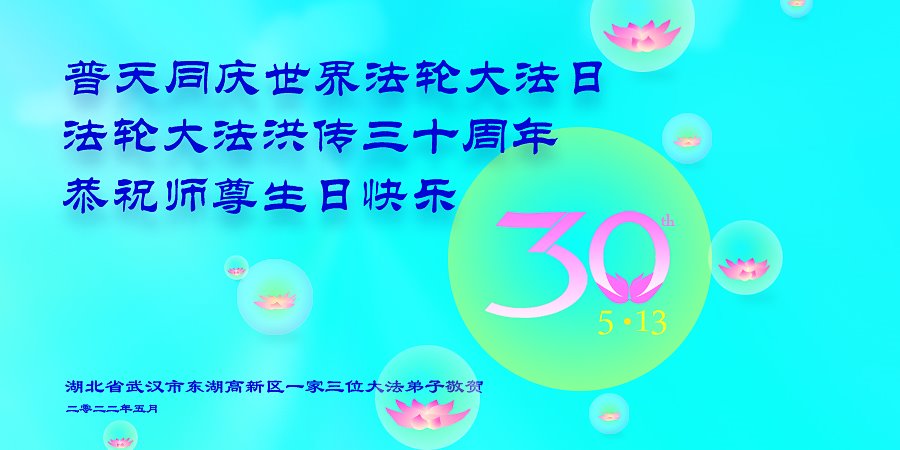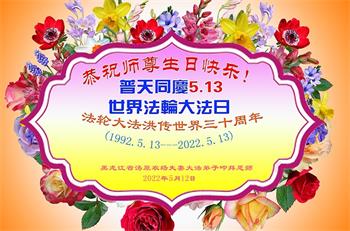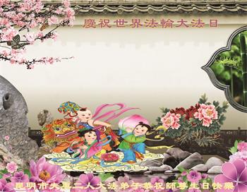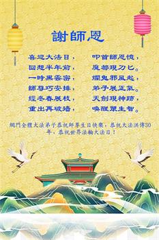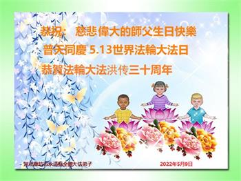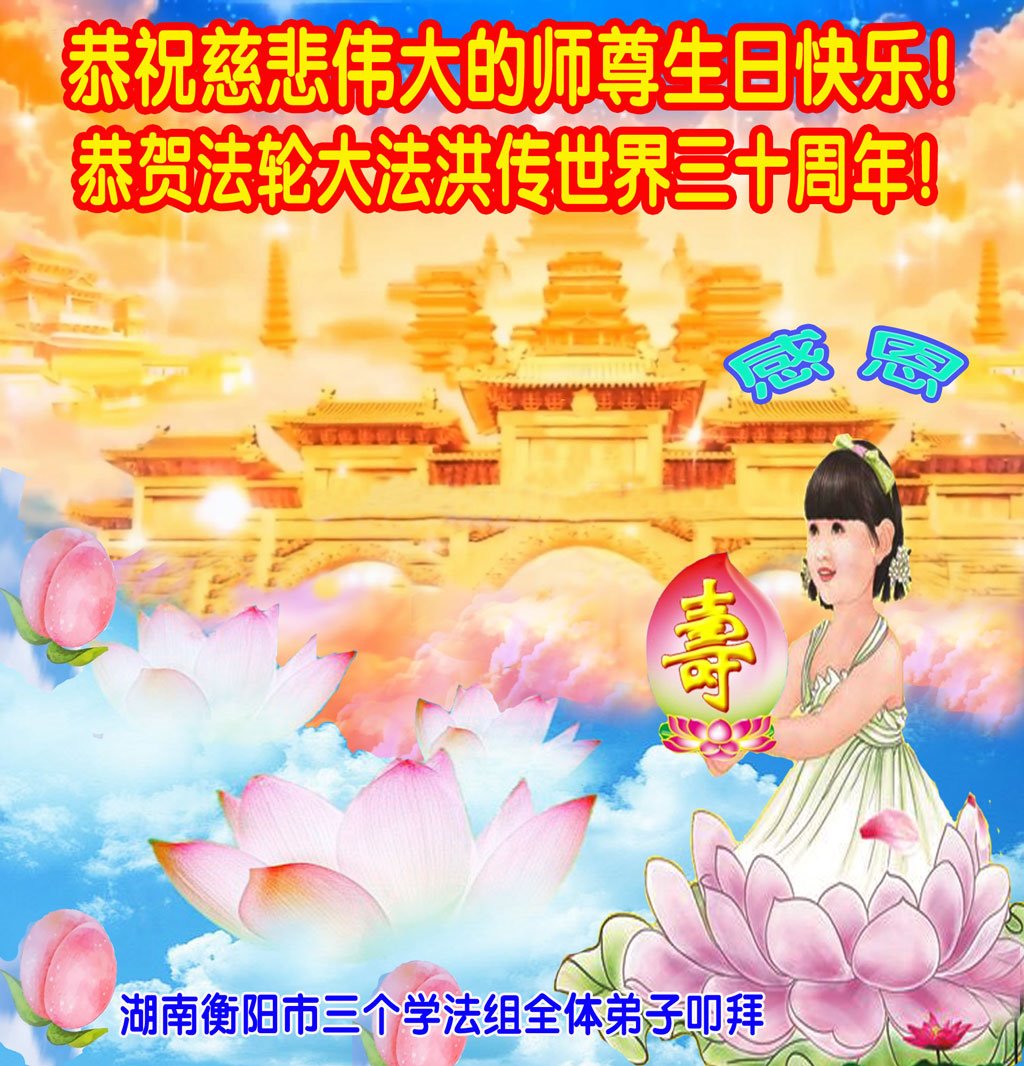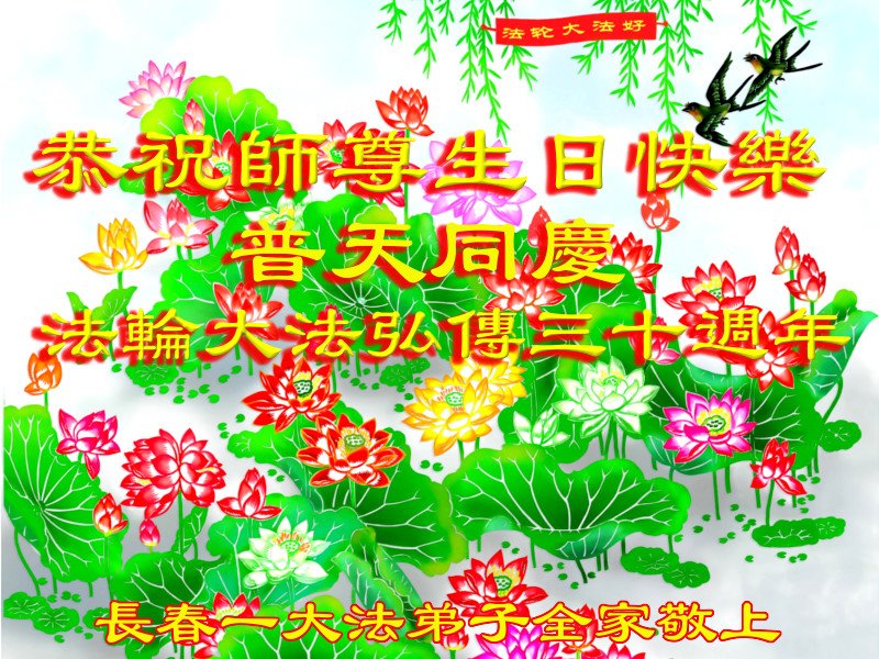 恭祝法轮大法洪传三十周年!恭祝慈悲伟大师尊生日快乐!