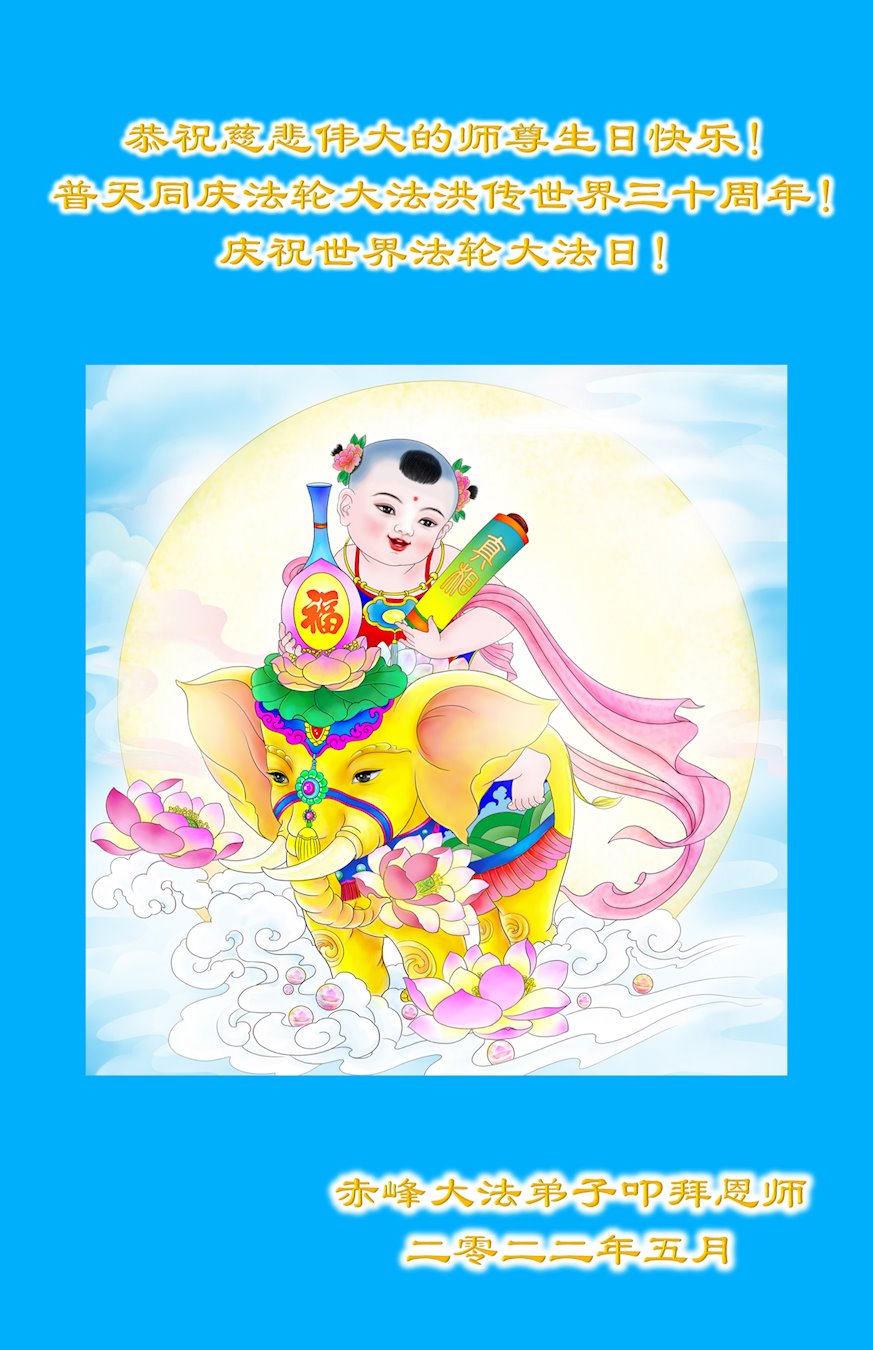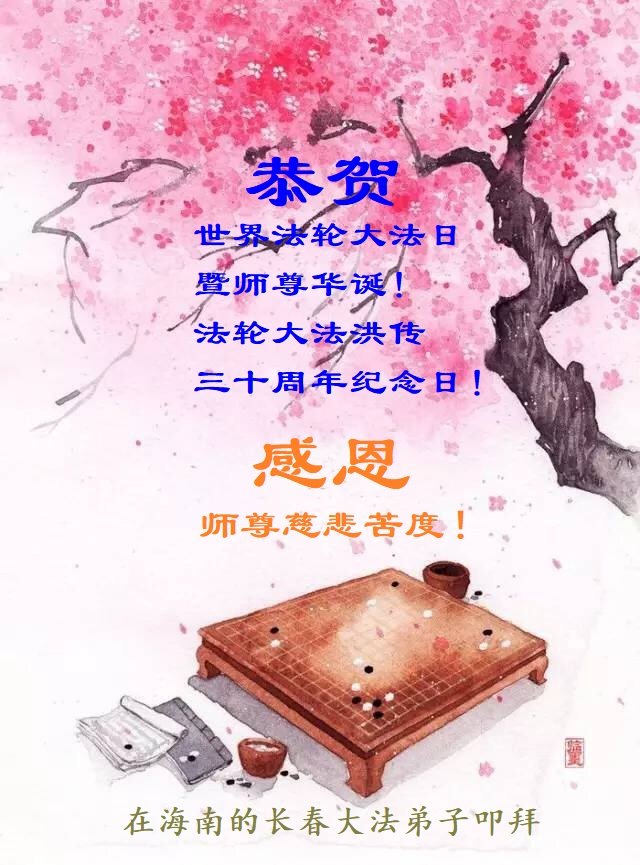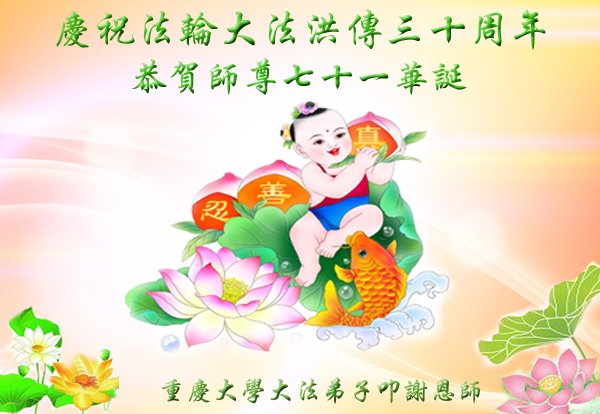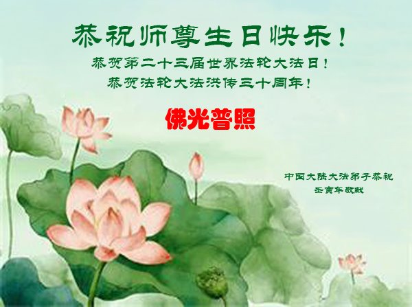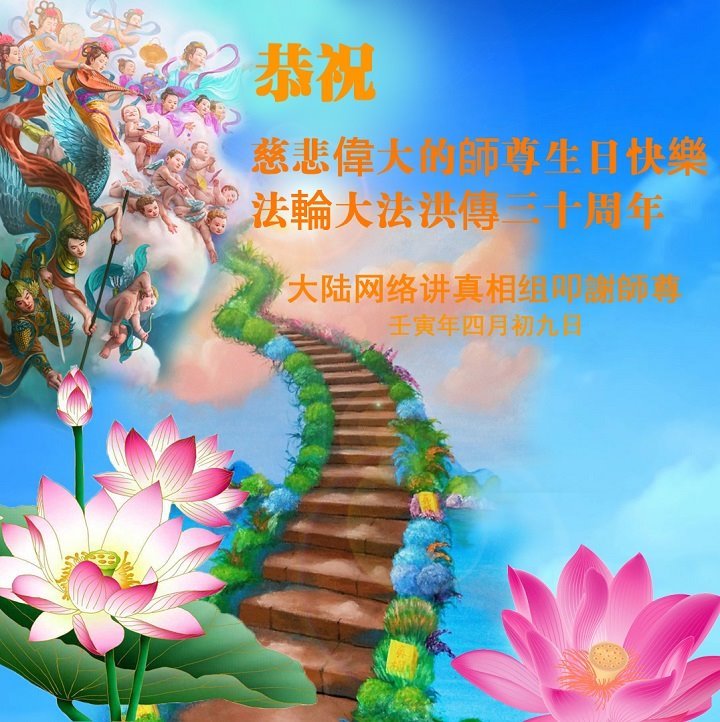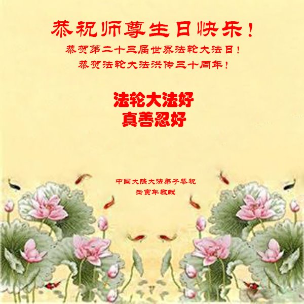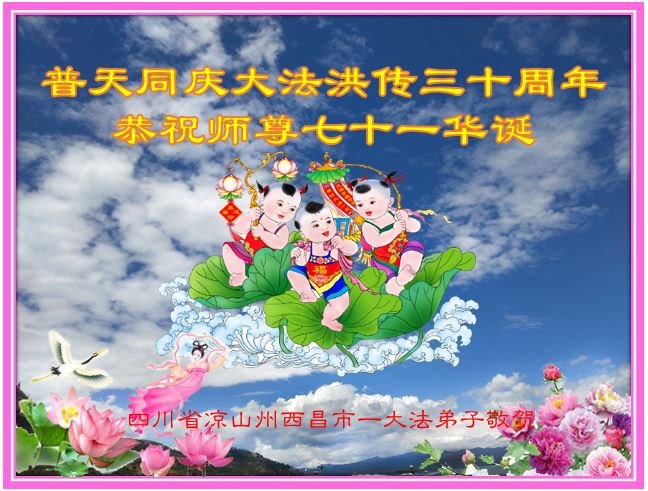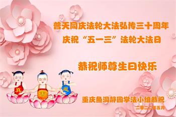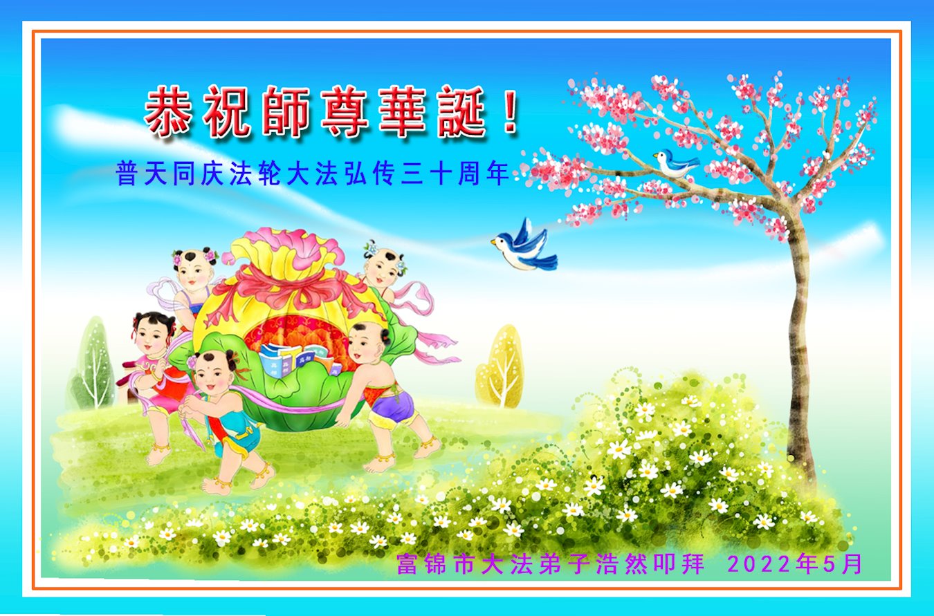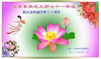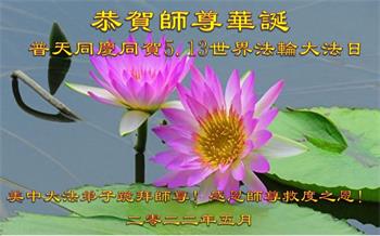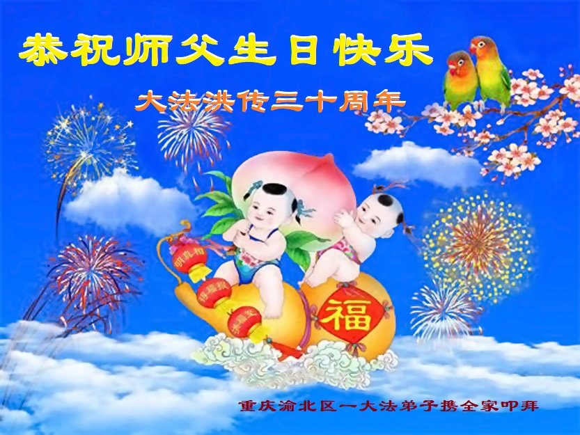 恭祝法轮大法洪传三十周年!恭祝慈悲伟大师尊生日快乐!