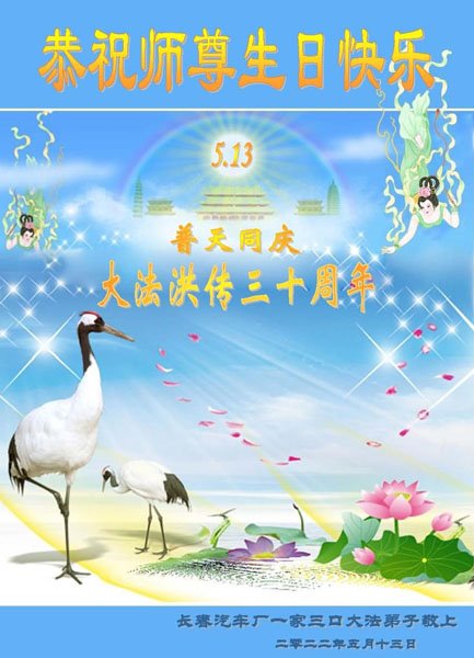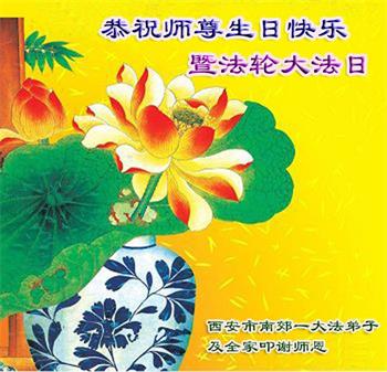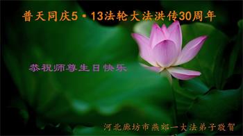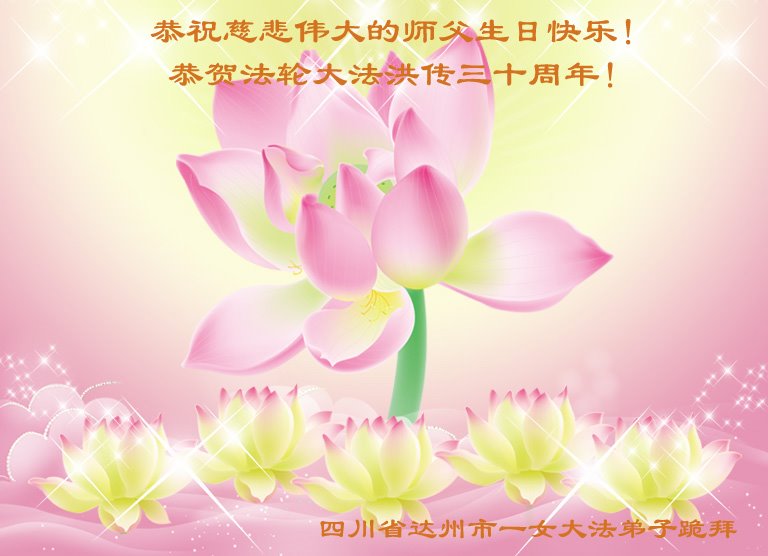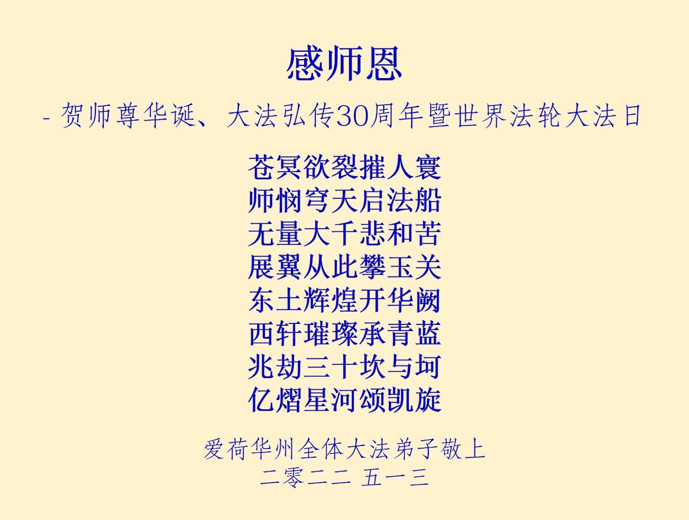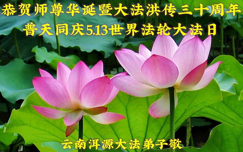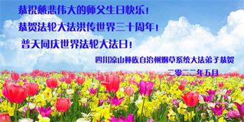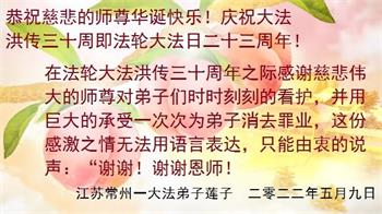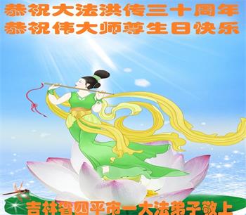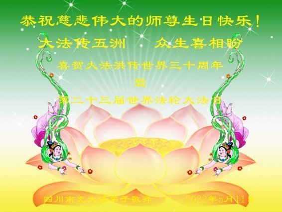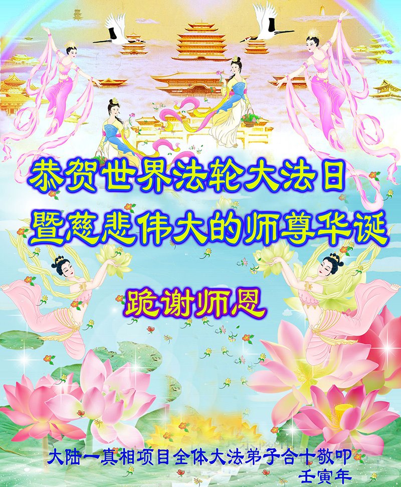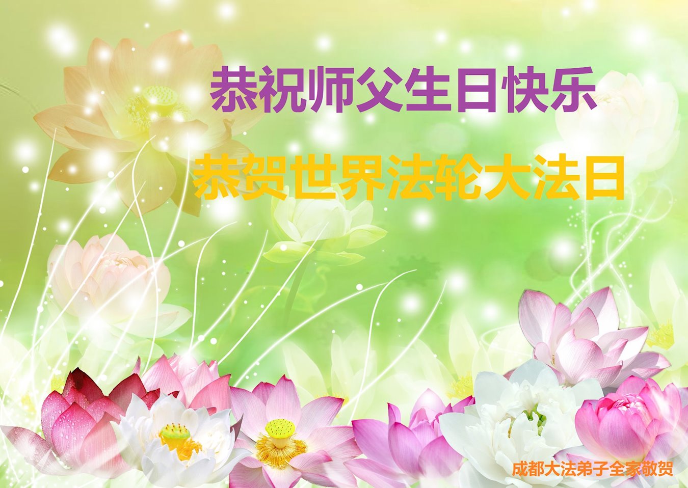 恭祝法轮大法洪传三十周年!恭祝慈悲伟大师尊生日快乐!