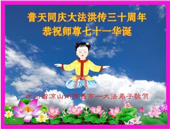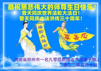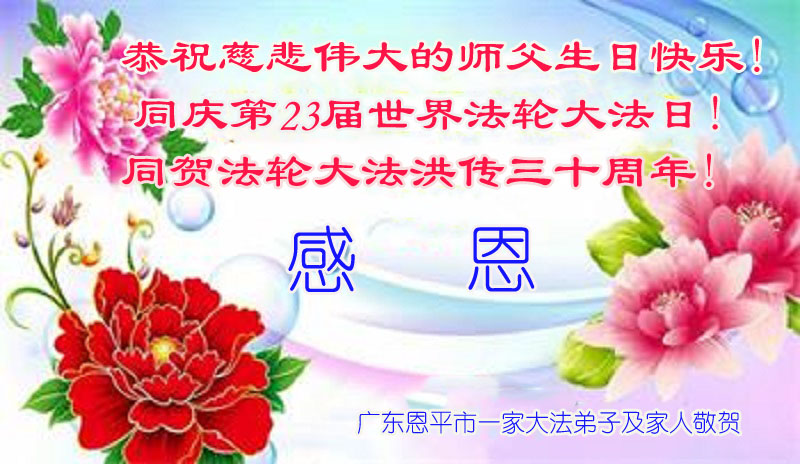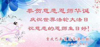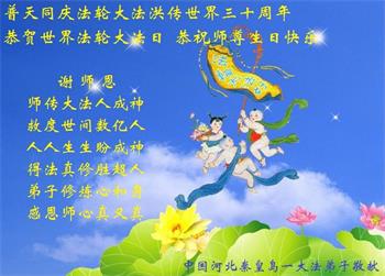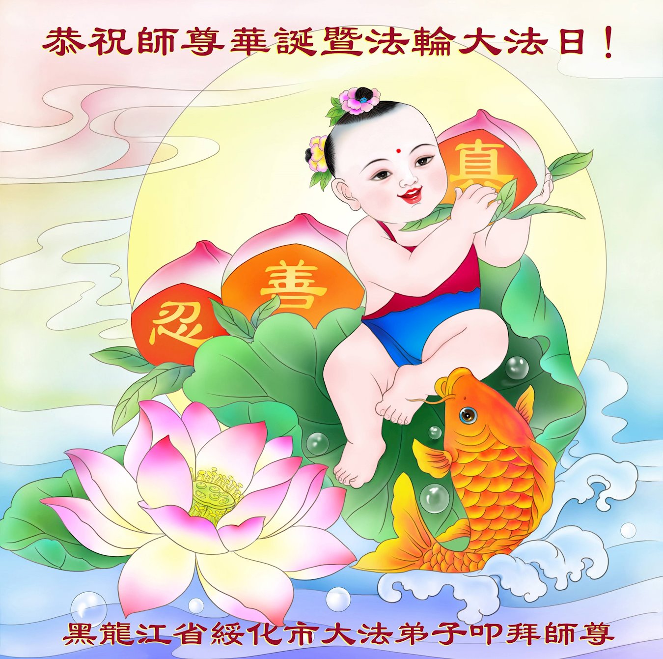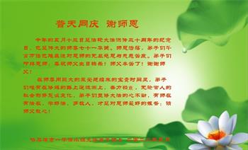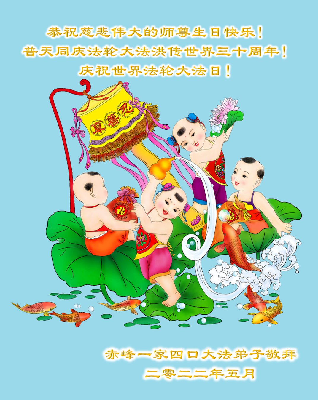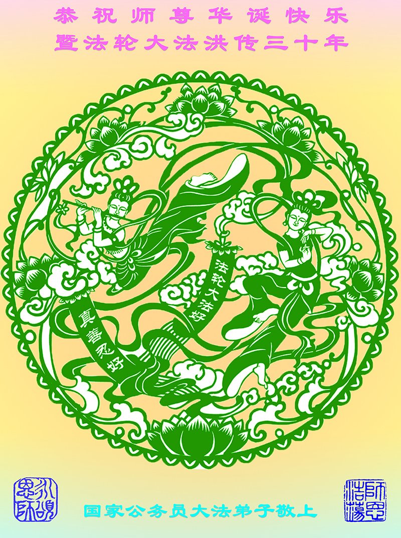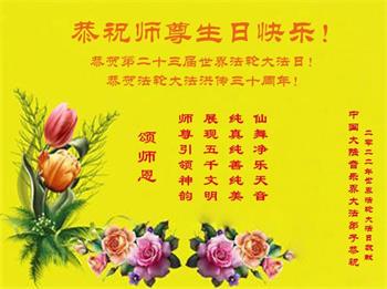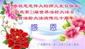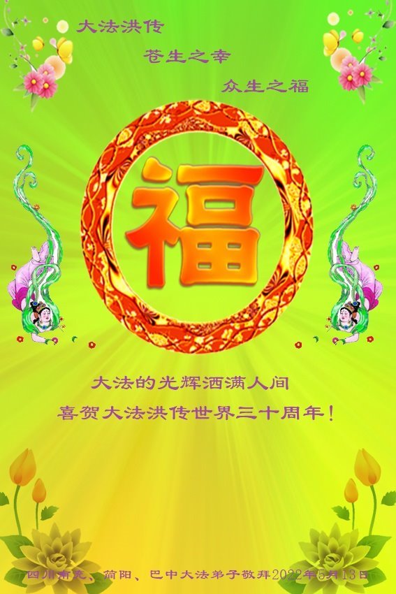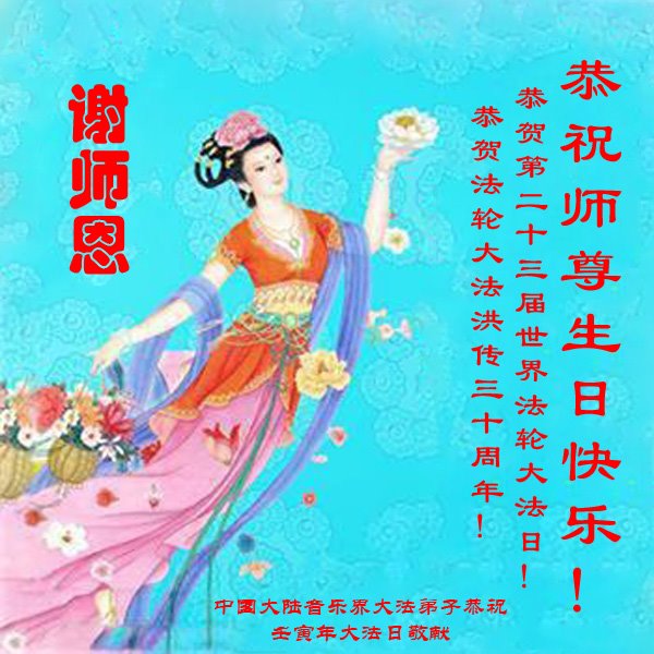 恭祝法轮大法洪传三十周年!恭祝慈悲伟大师尊生日快乐!