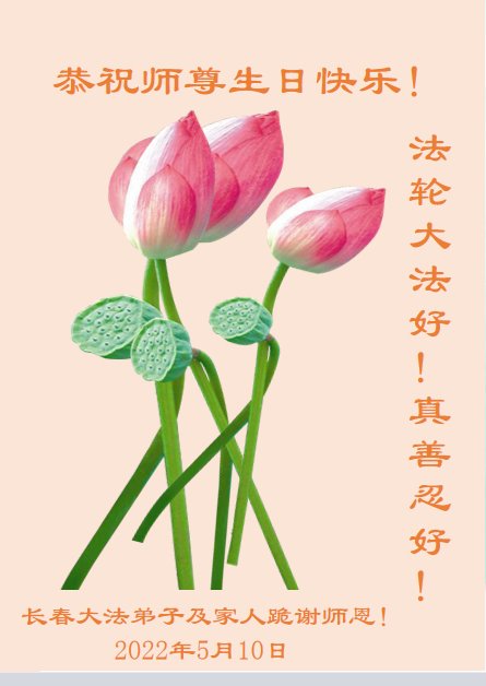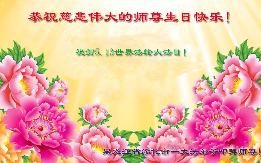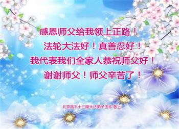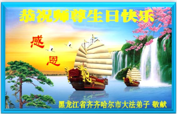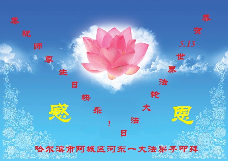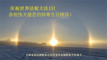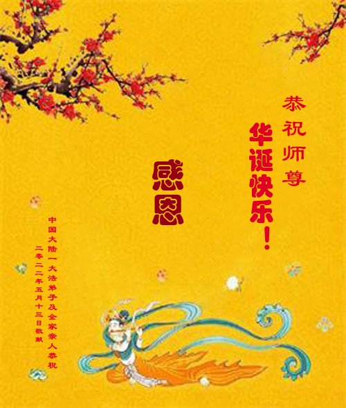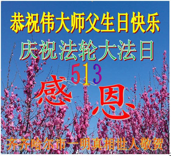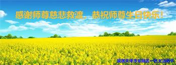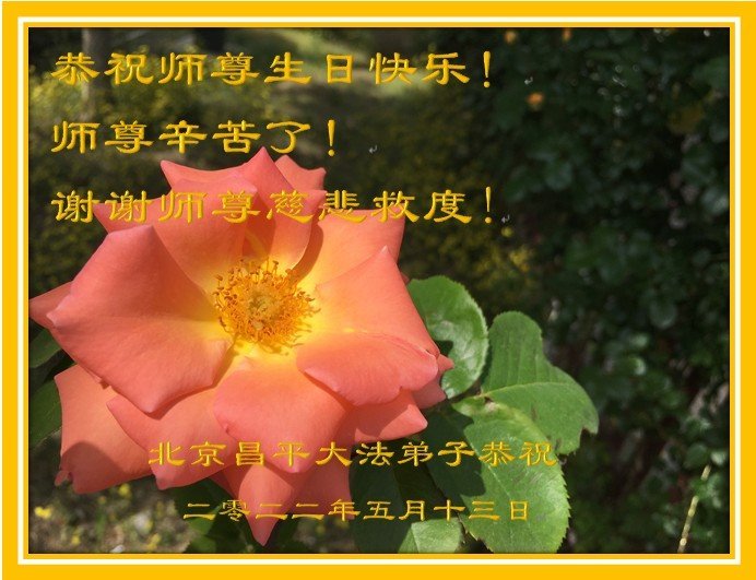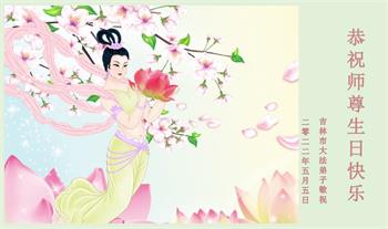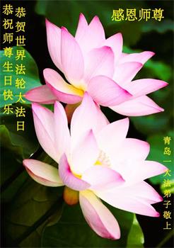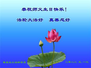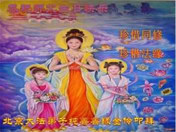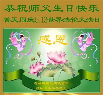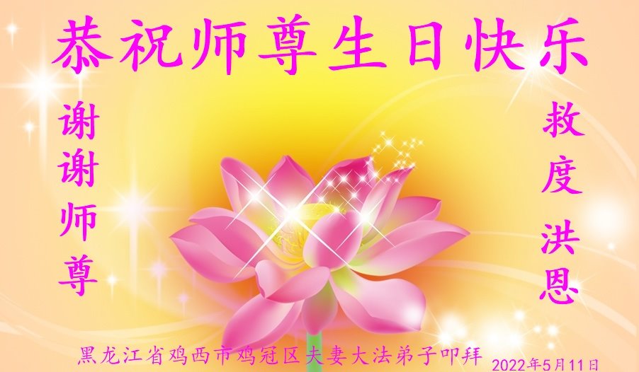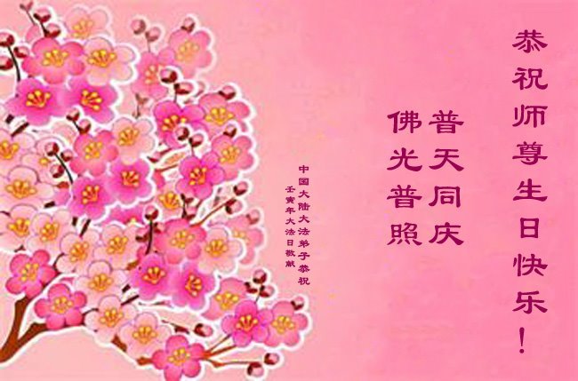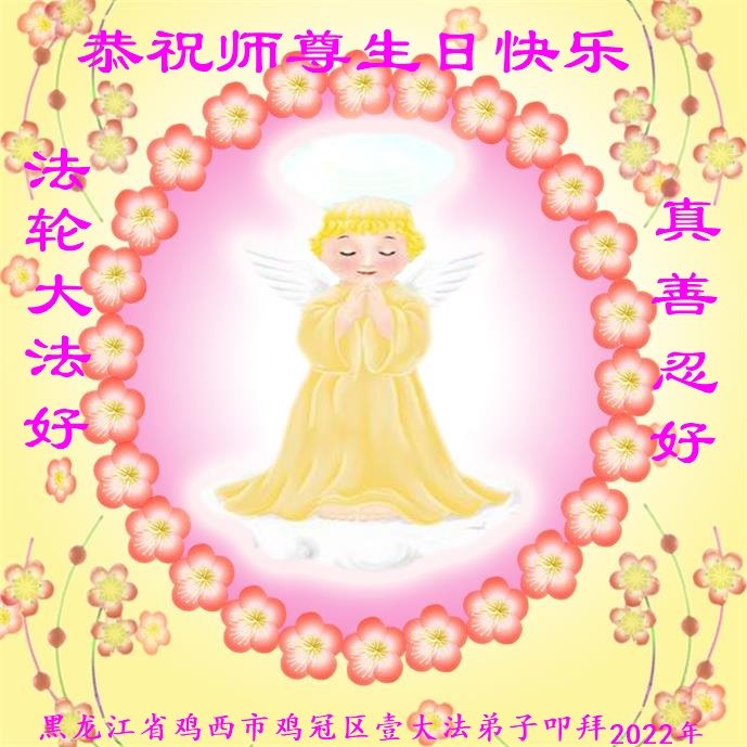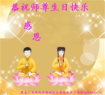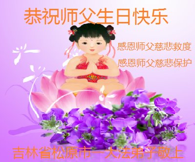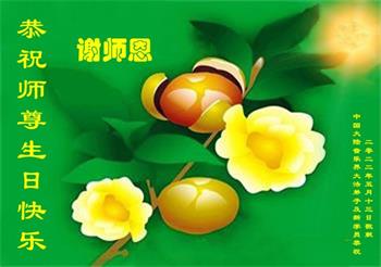 在这里借明慧网恭祝大法师父生日快乐!感恩大法师父救命之恩!是大法师父把我这个危重病人从死亡线上救了回来,给了我第二次生命。我虔诚的敬念:法轮大法好!真、善、忍好九字真言获得新生,我对大法师父感恩不尽。再一次谢谢大法师父救命之恩!双手合十谢大法师父!