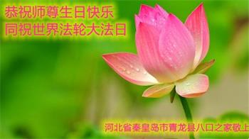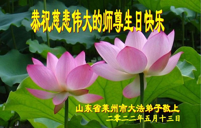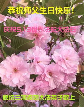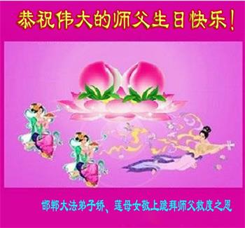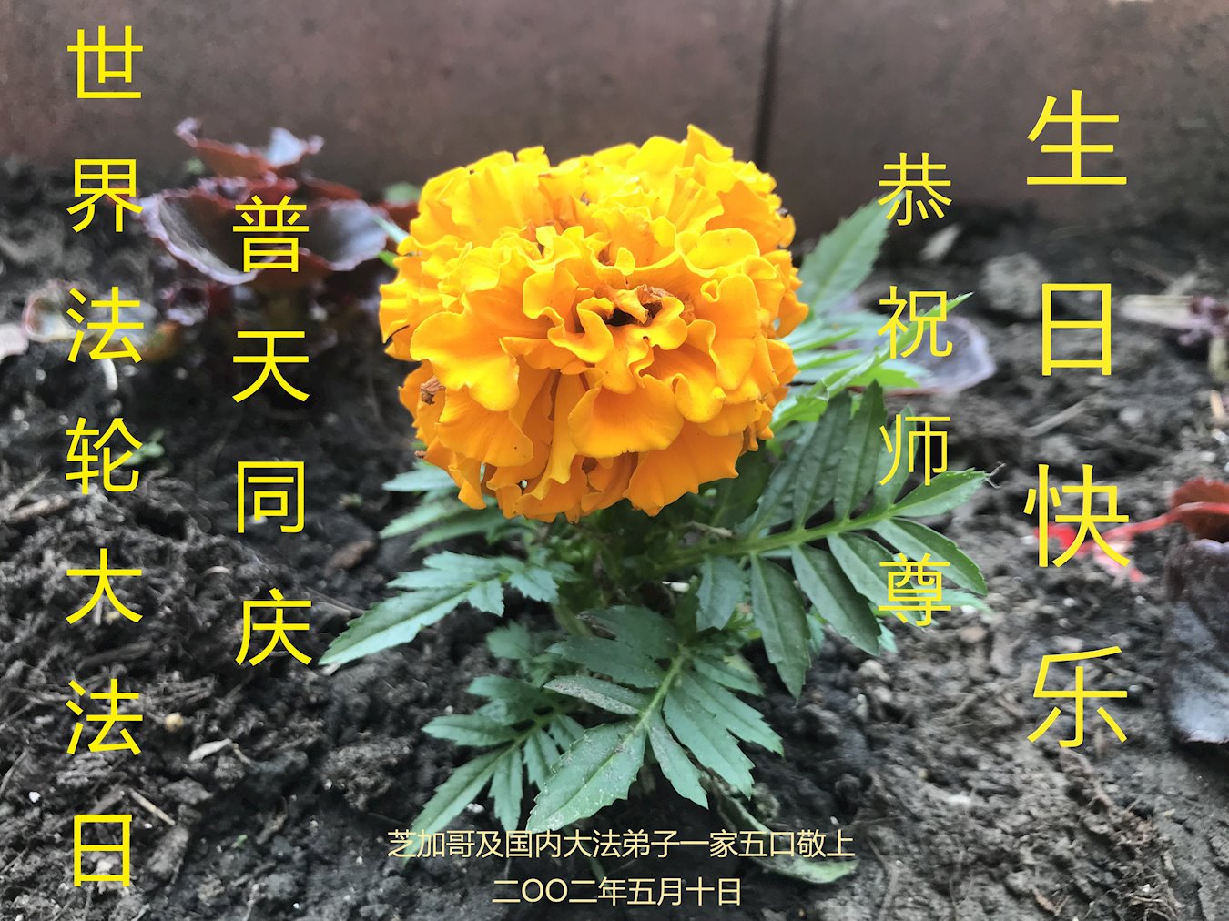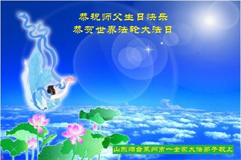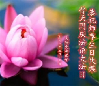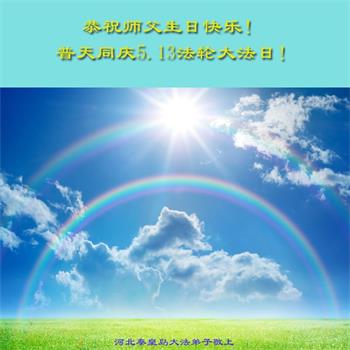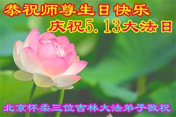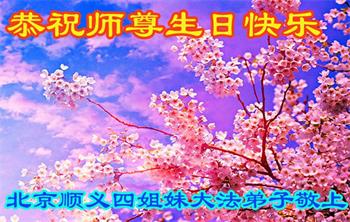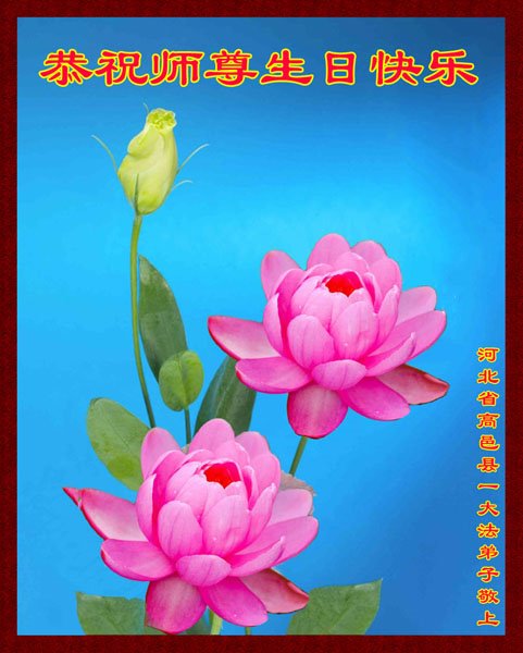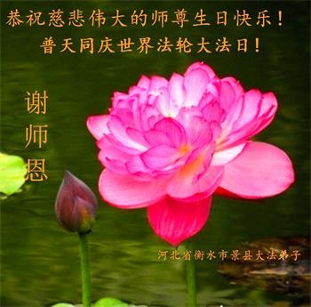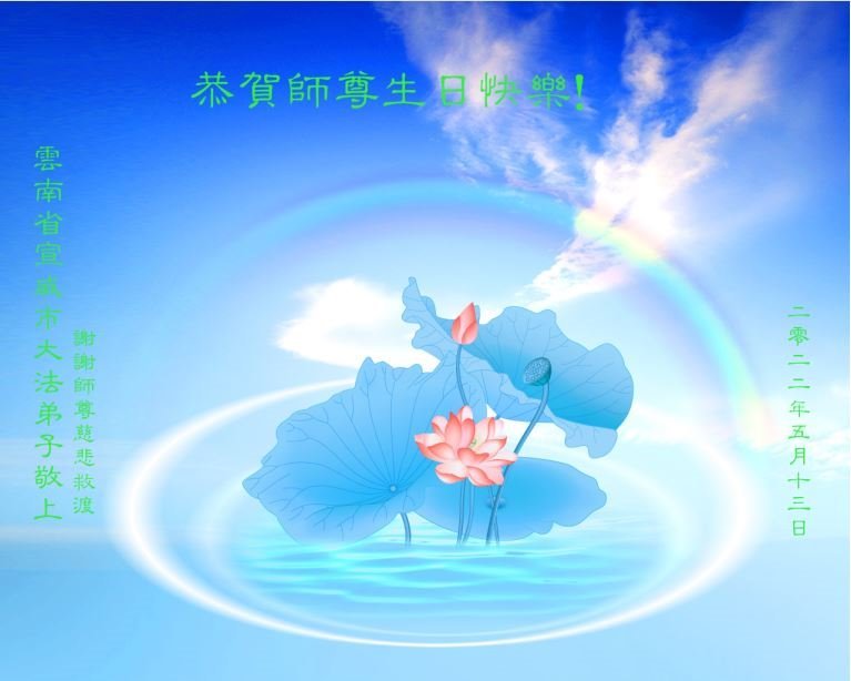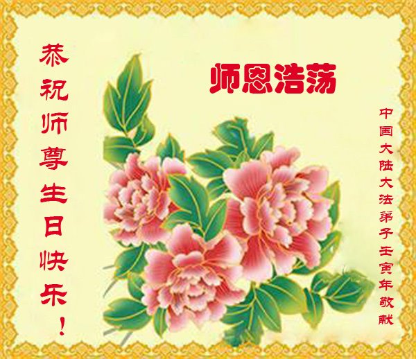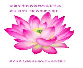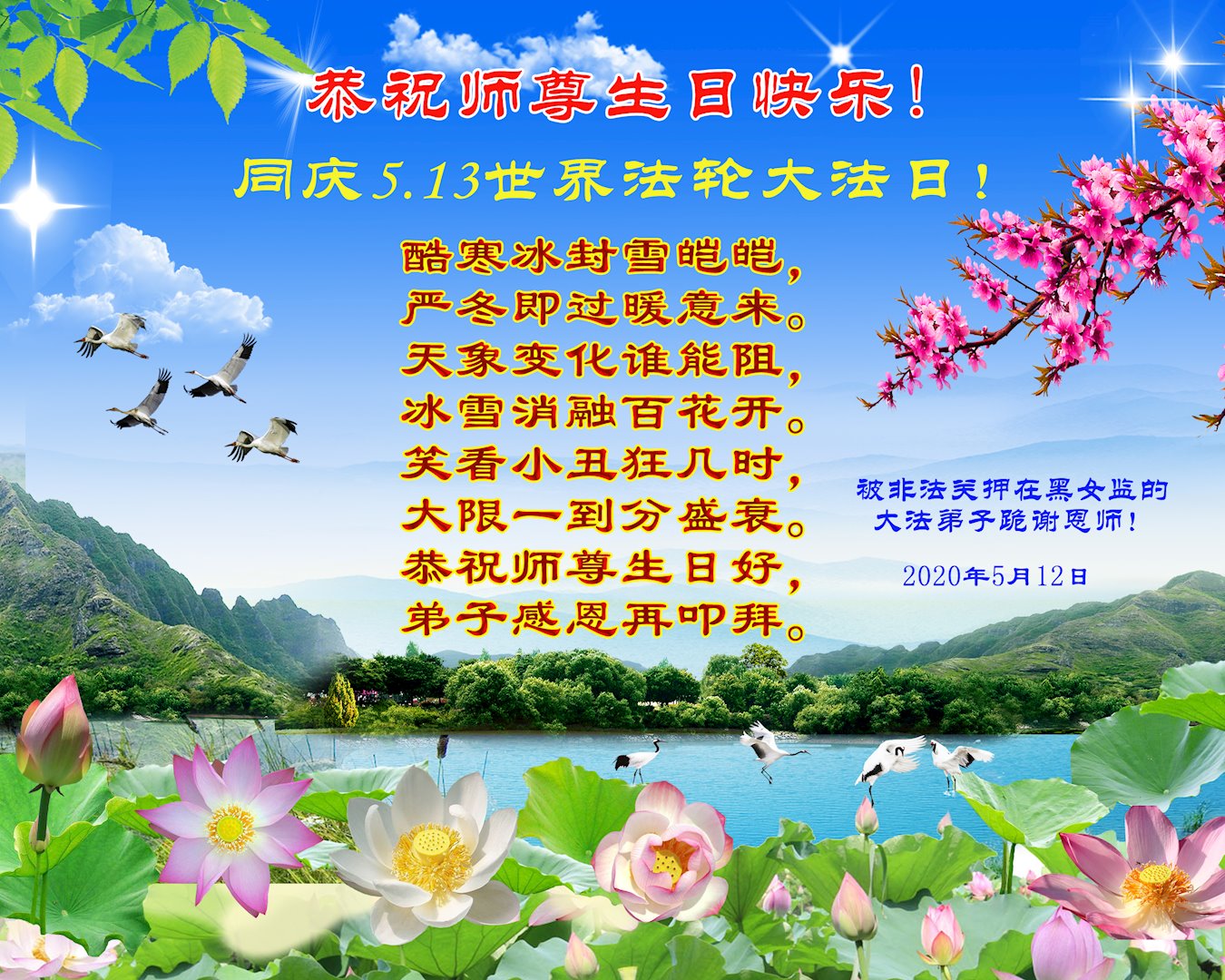 在这里借明慧网恭祝大法师父生日快乐!感恩大法师父救命之恩!是大法师父把我这个危重病人从死亡线上救了回来,给了我第二次生命。我虔诚的敬念:法轮大法好!真、善、忍好九字真言获得新生,我对大法师父感恩不尽。再一次谢谢大法师父救命之恩!双手合十谢大法师父!