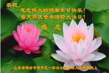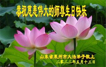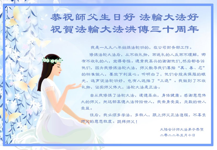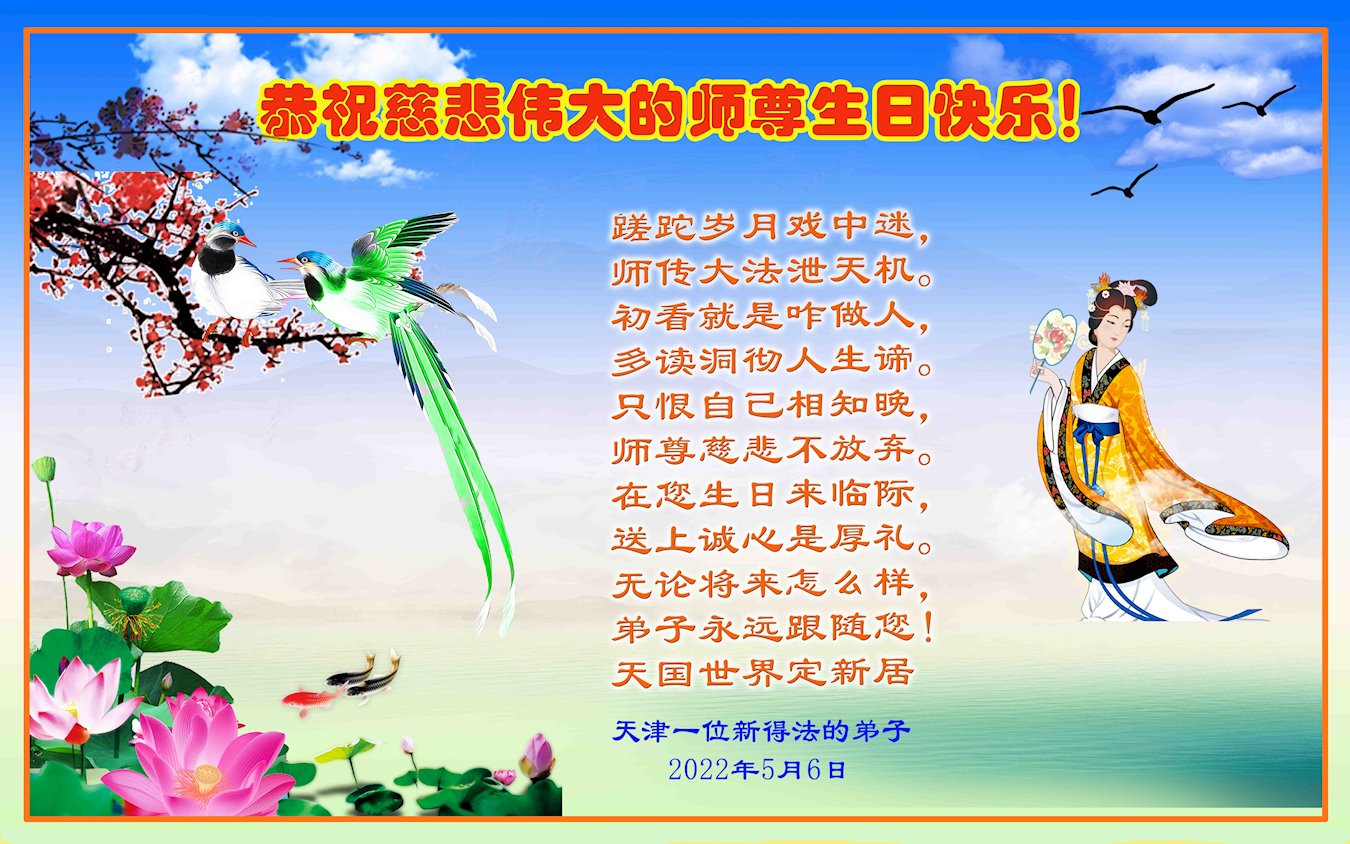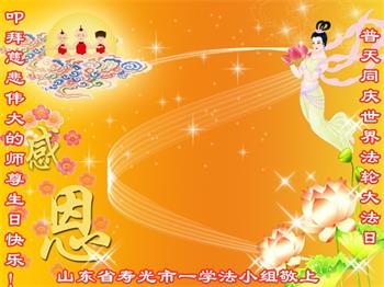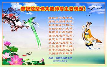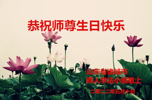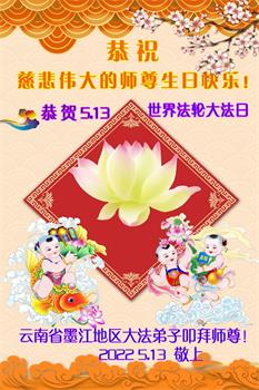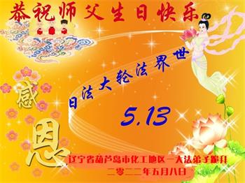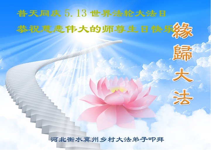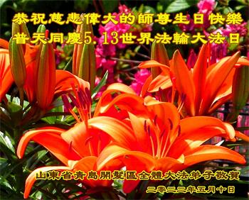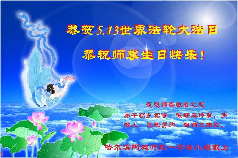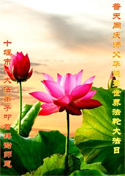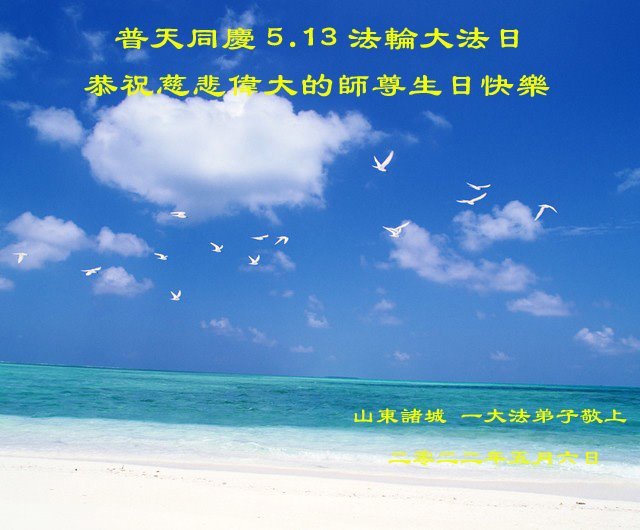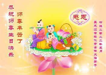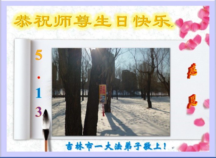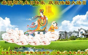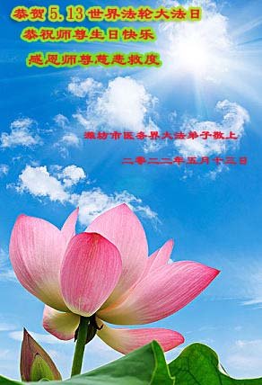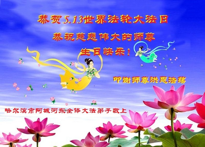 在这里借明慧网恭祝大法师父生日快乐!感恩大法师父救命之恩!是大法师父把我这个危重病人从死亡线上救了回来,给了我第二次生命。我虔诚的敬念:法轮大法好!真、善、忍好九字真言获得新生,我对大法师父感恩不尽。再一次谢谢大法师父救命之恩!双手合十谢大法师父!