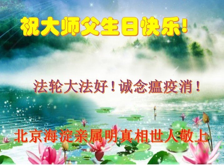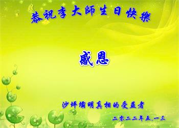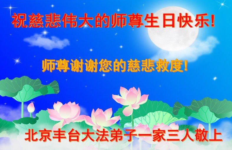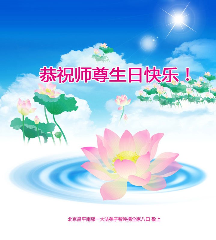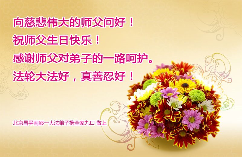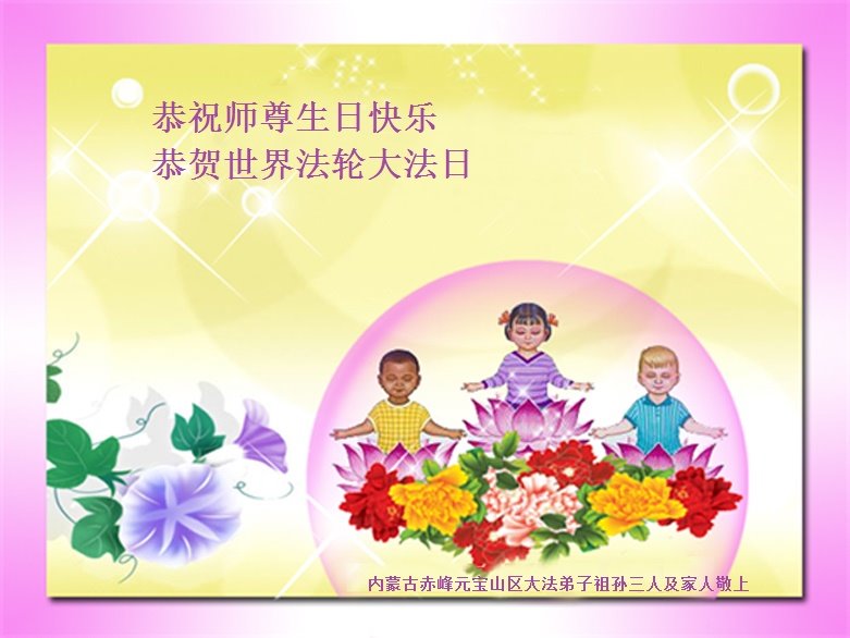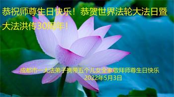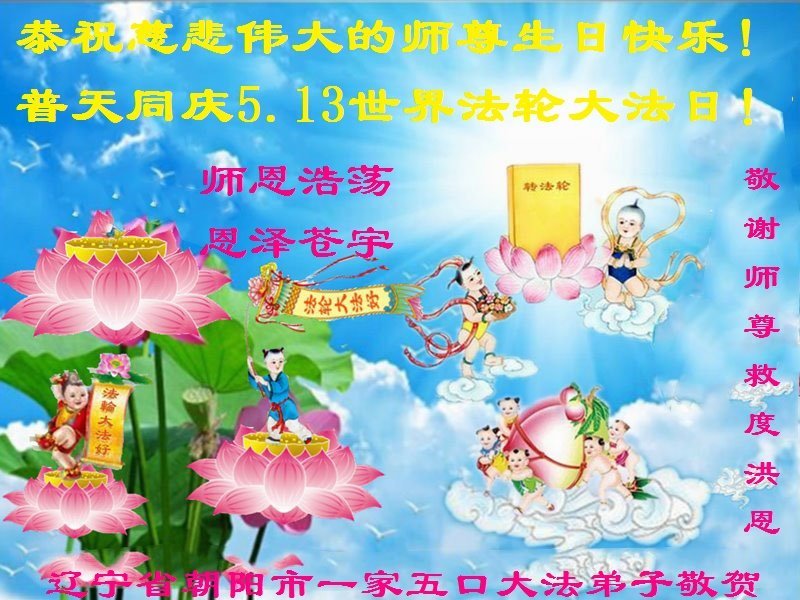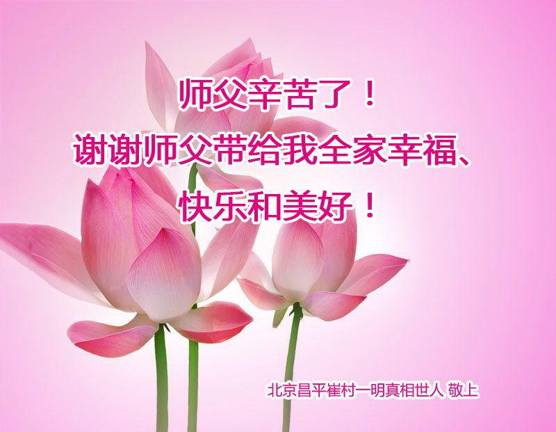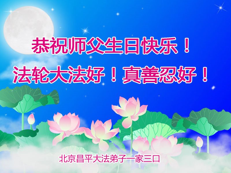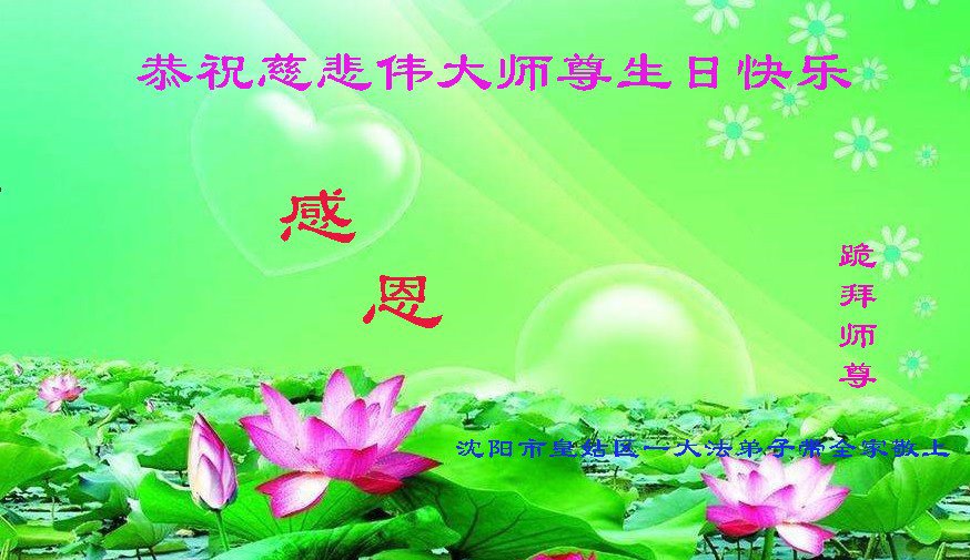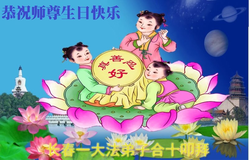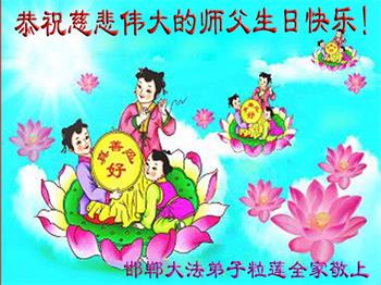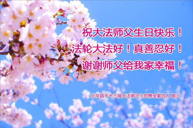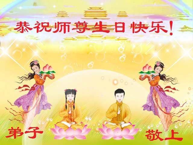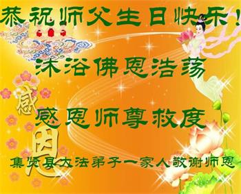 全家叩拜!谢谢伟大的大法师父,祝您生日快乐!