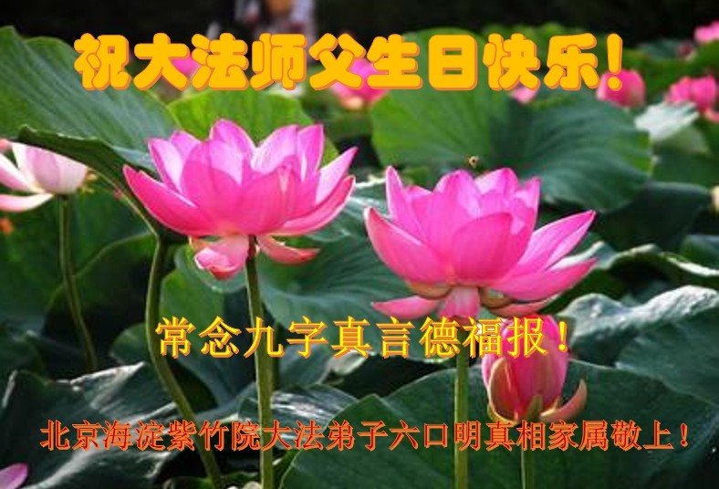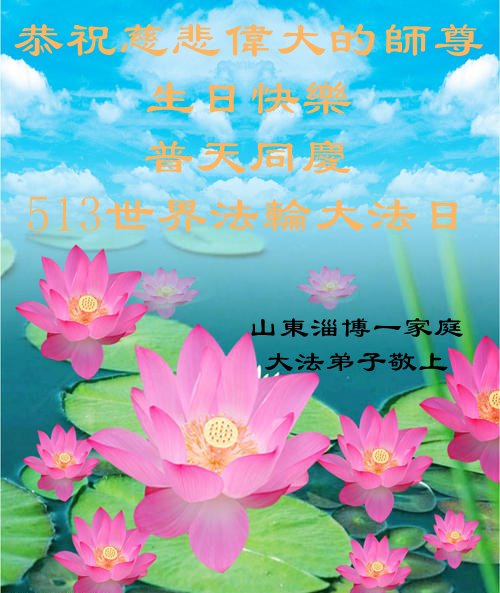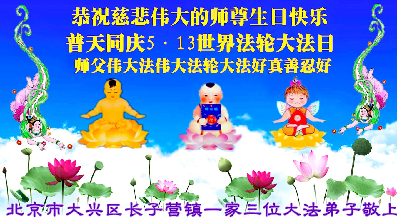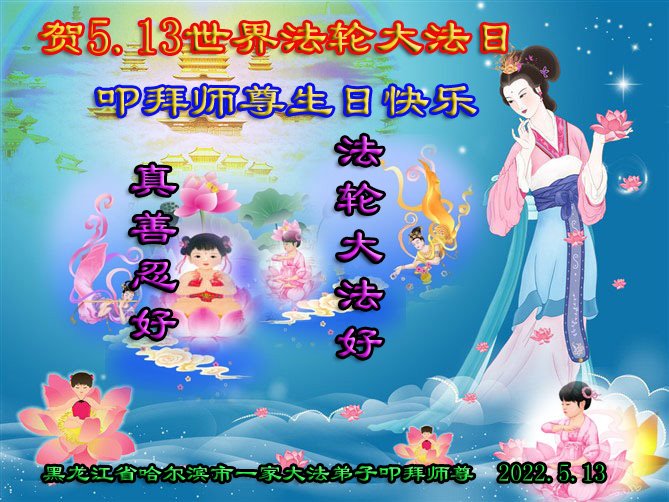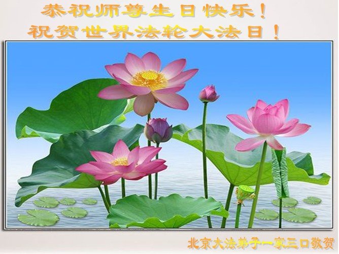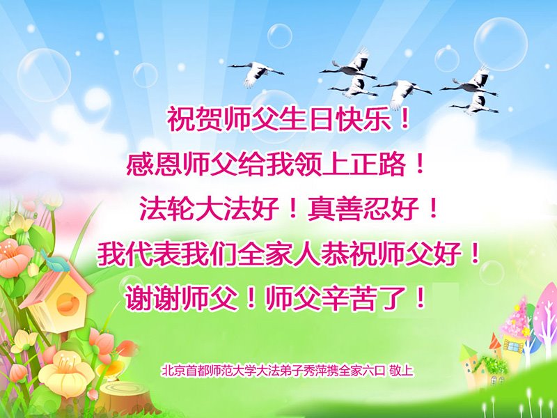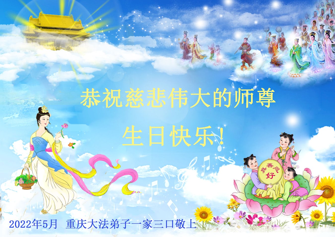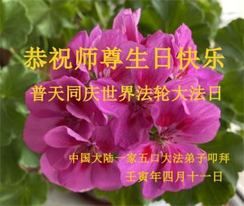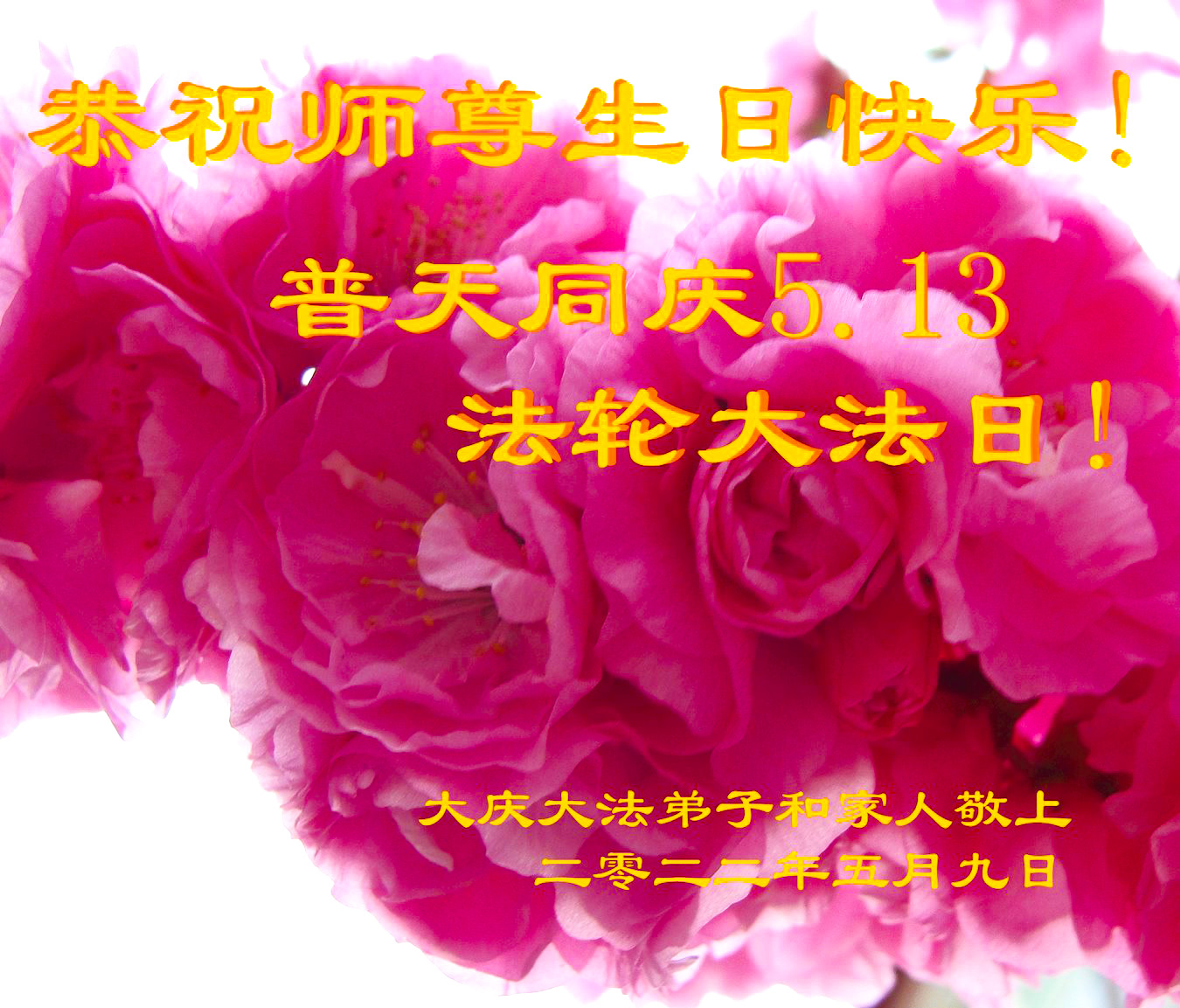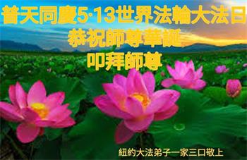 全家叩拜!谢谢伟大的大法师父,祝您生日快乐!