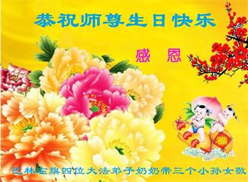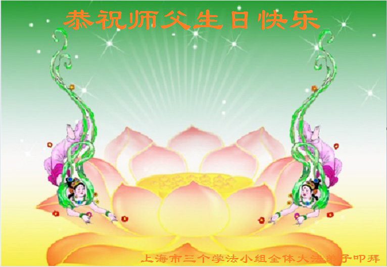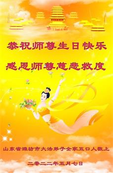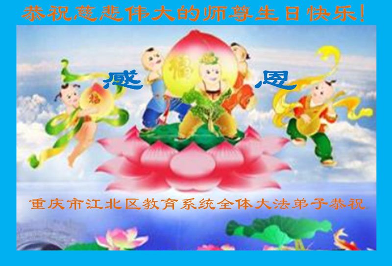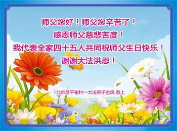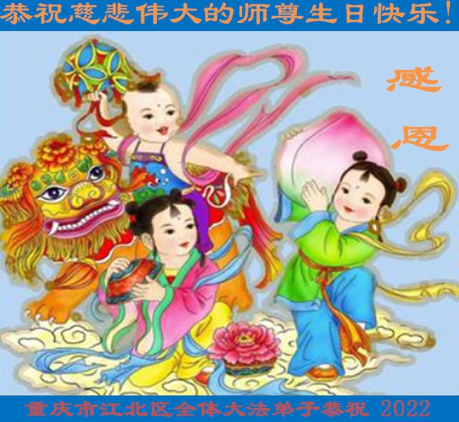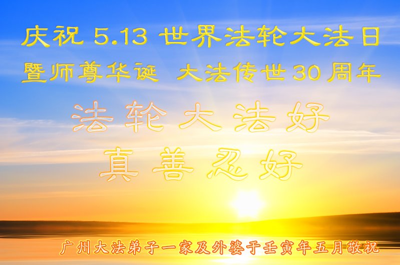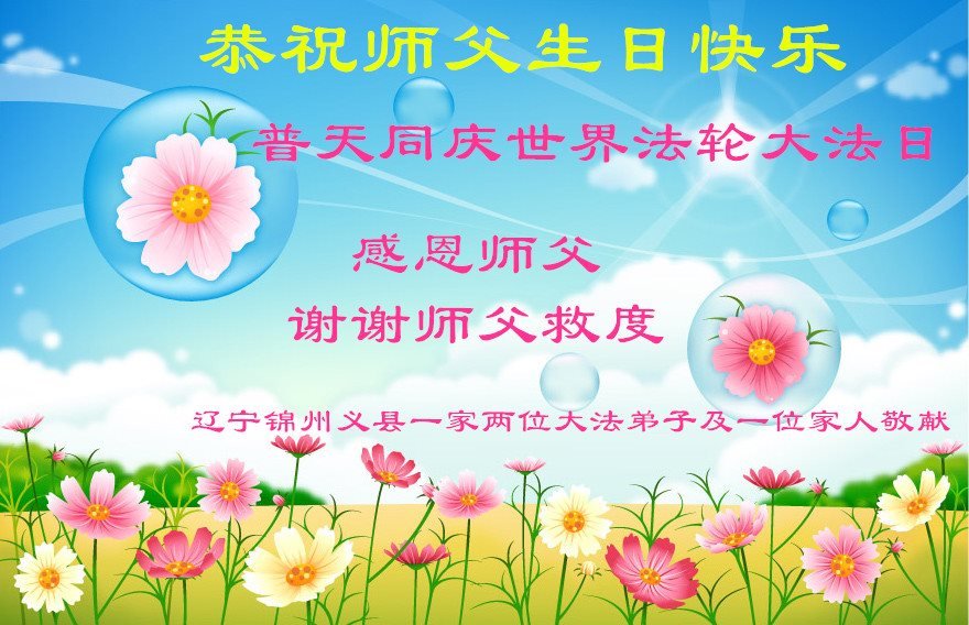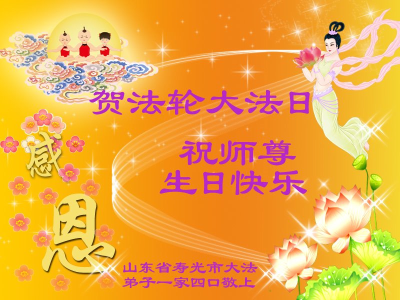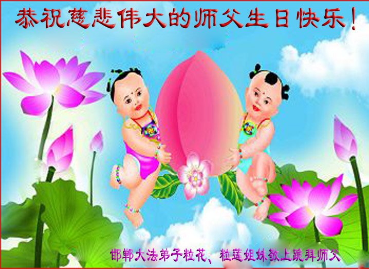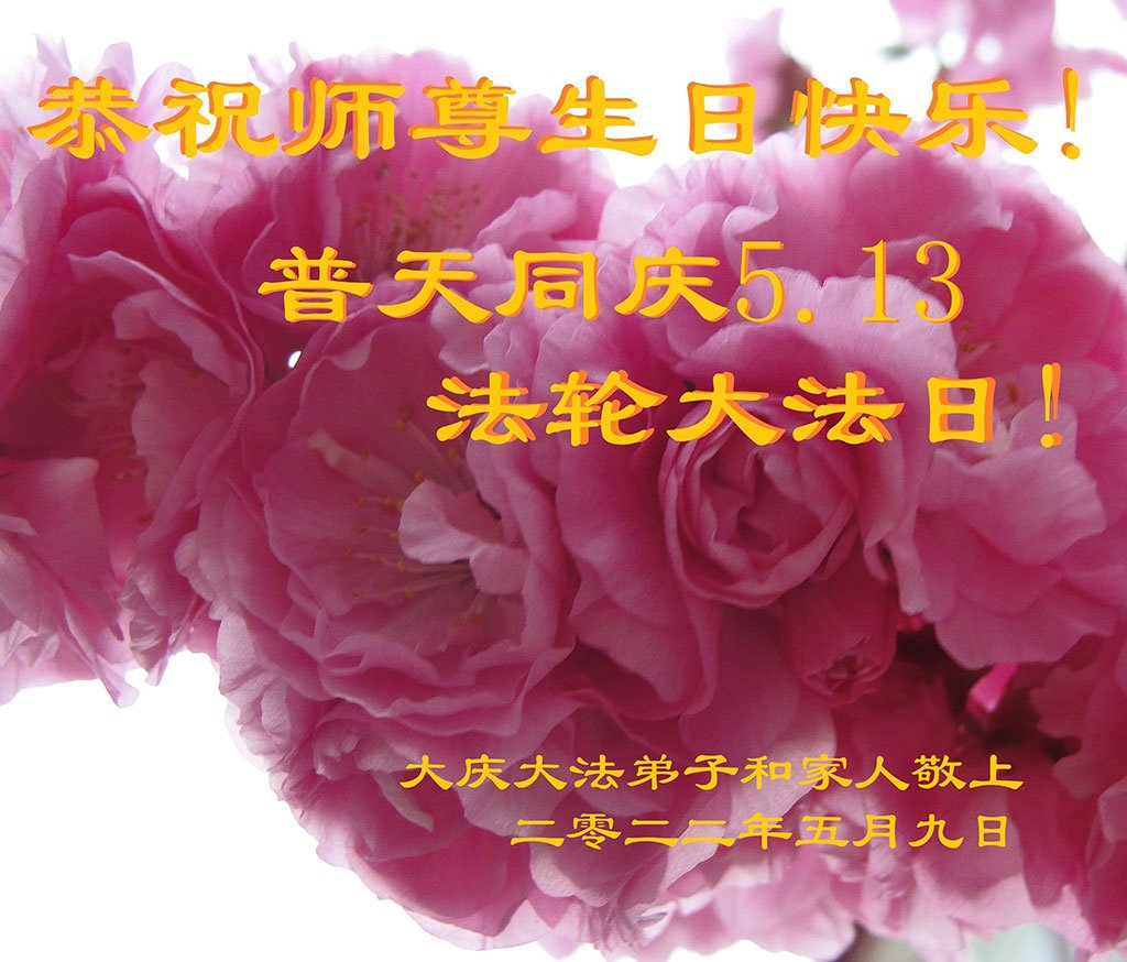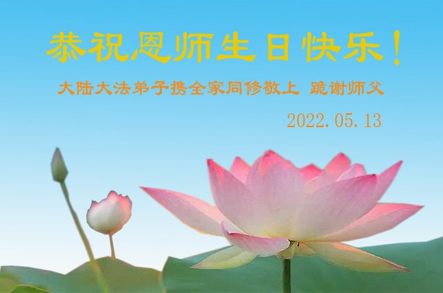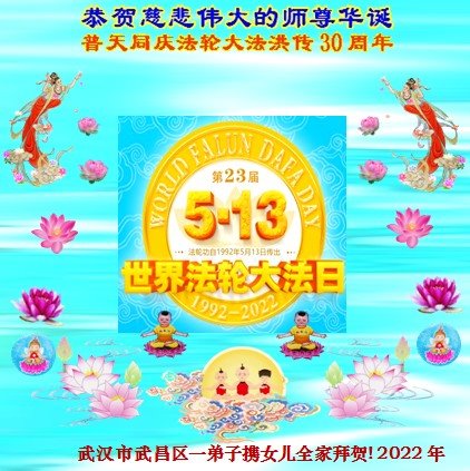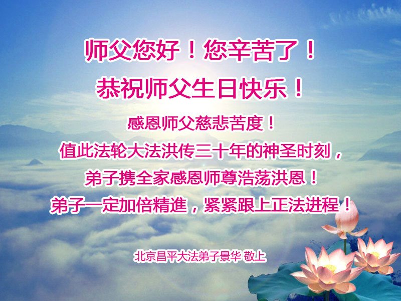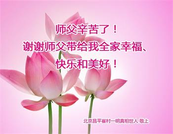 全家叩拜!谢谢伟大的大法师父,祝您生日快乐!