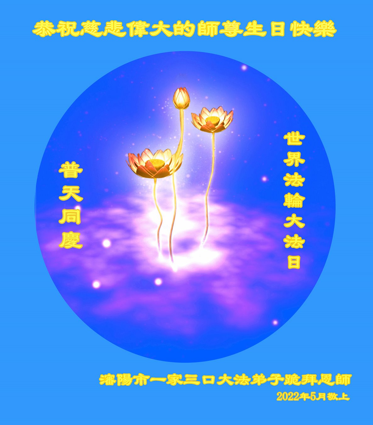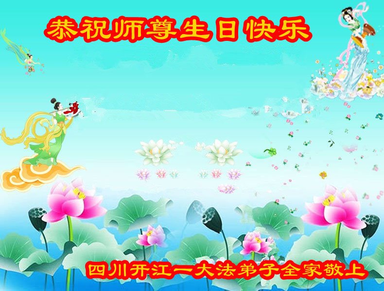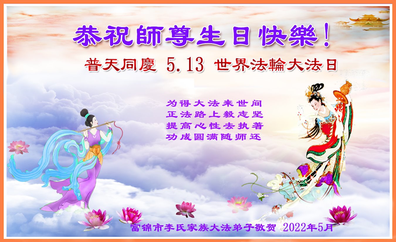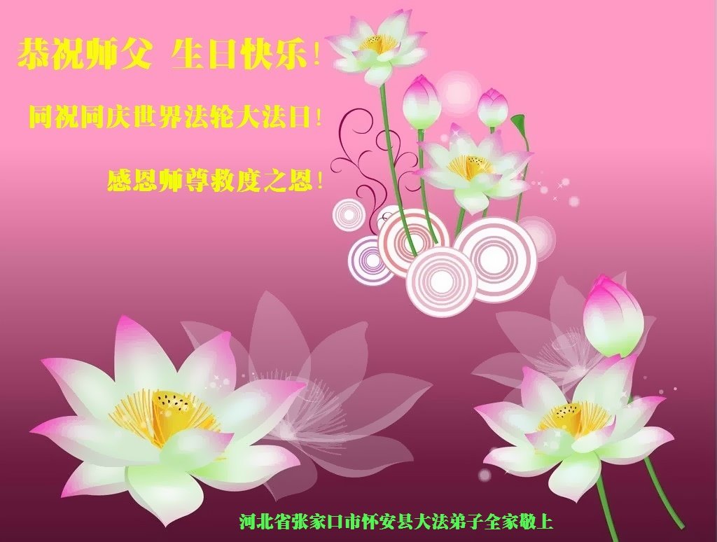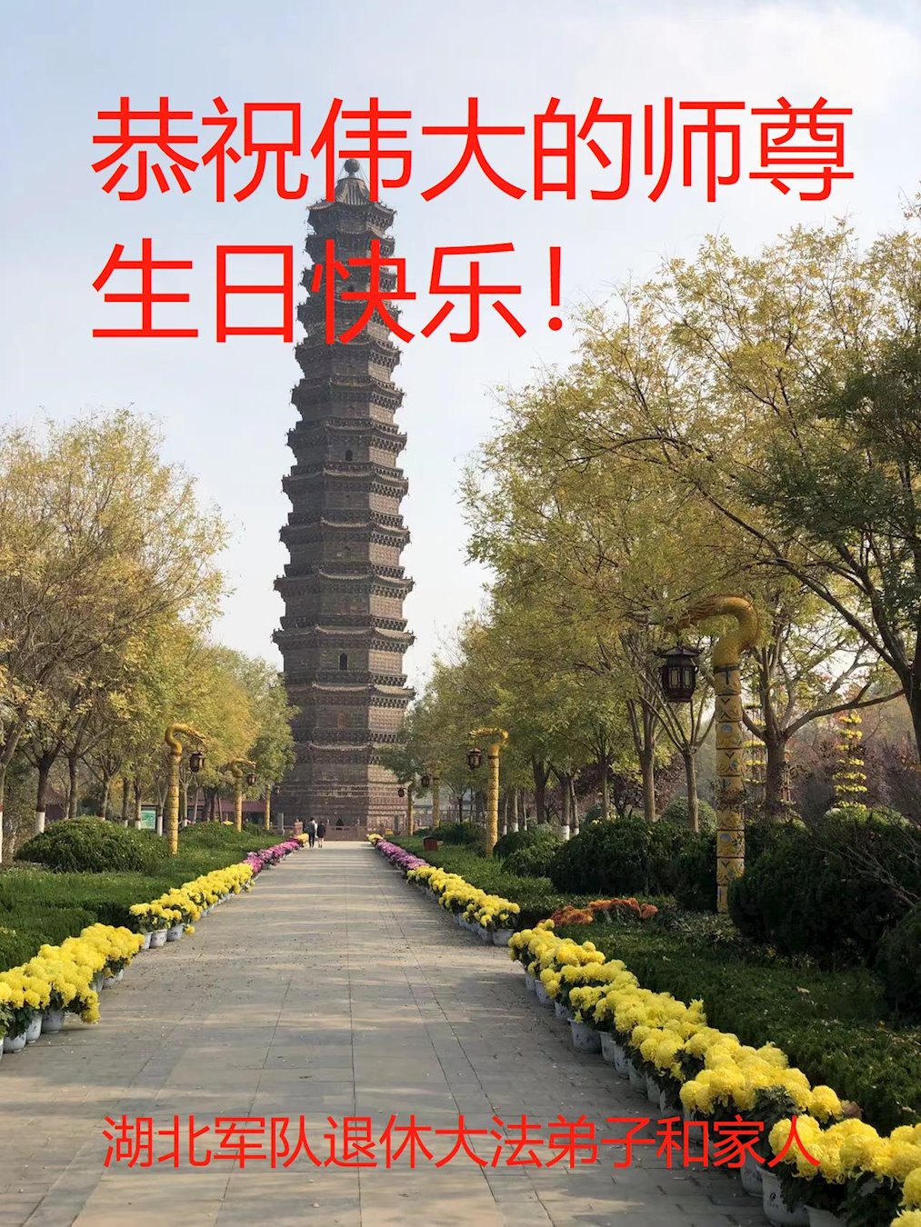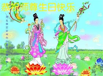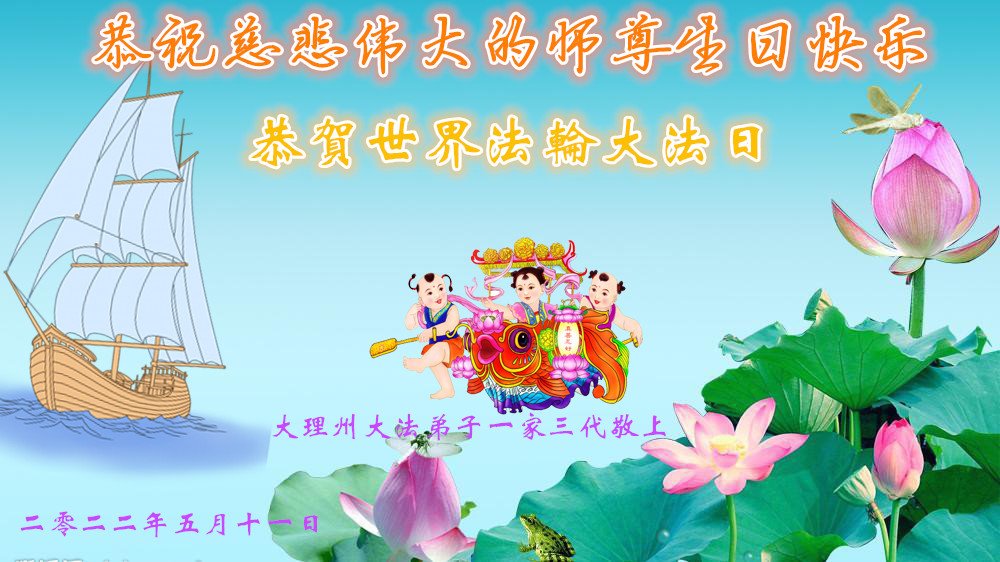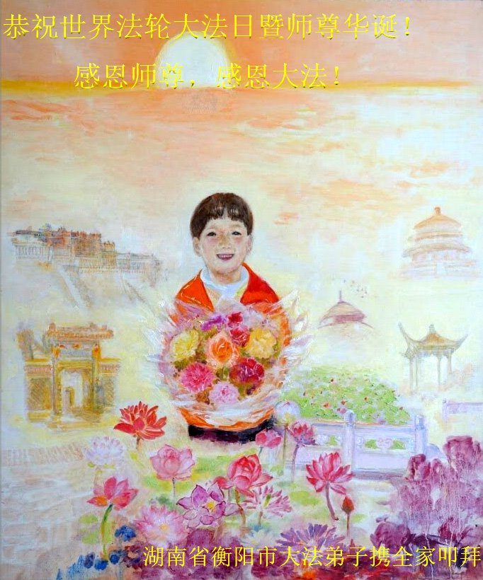 全家叩拜!谢谢伟大的大法师父,祝您生日快乐!