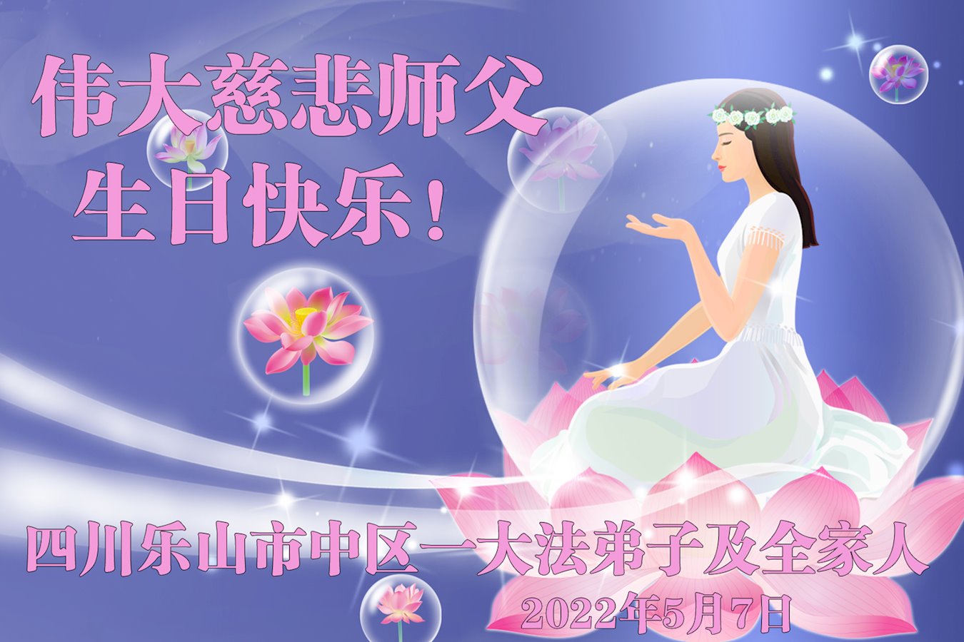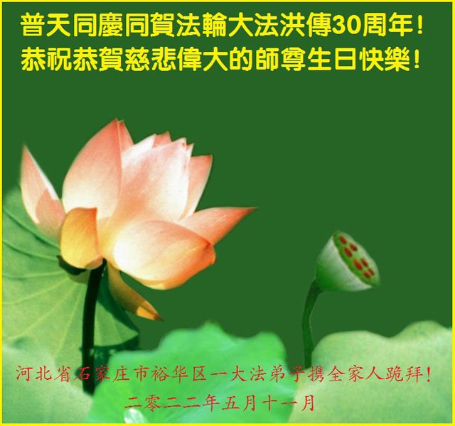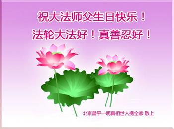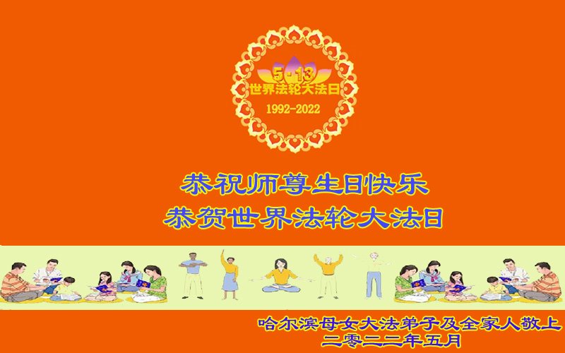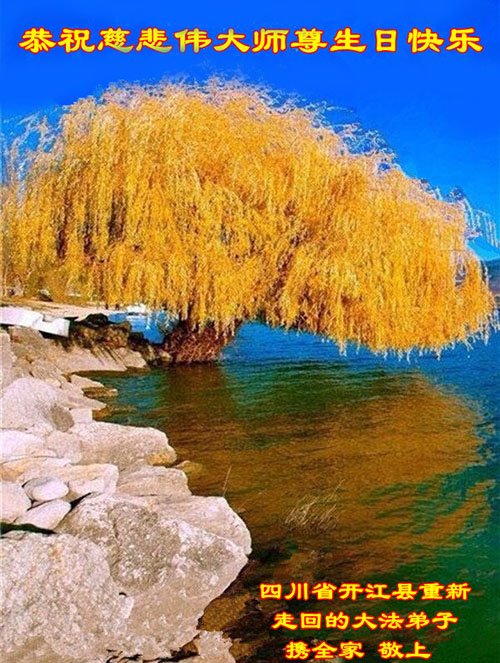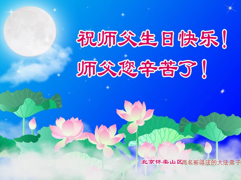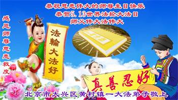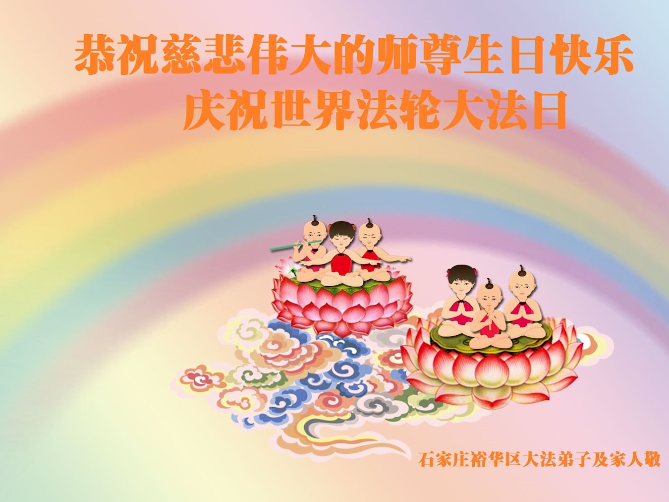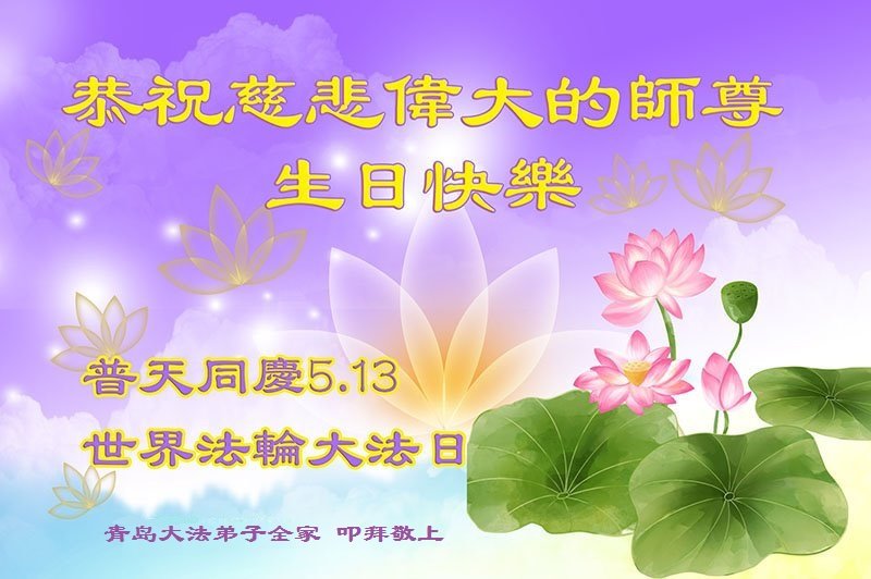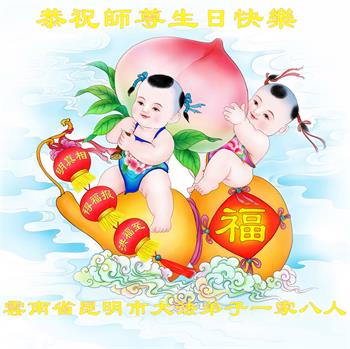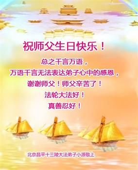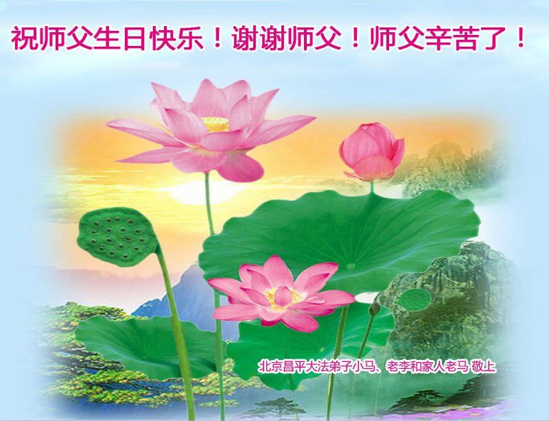 全家叩拜!谢谢伟大的大法师父,祝您生日快乐!