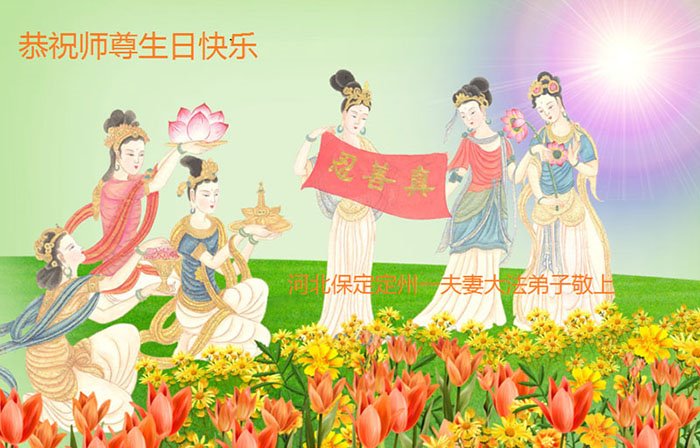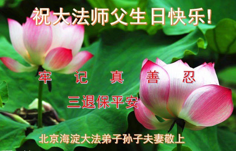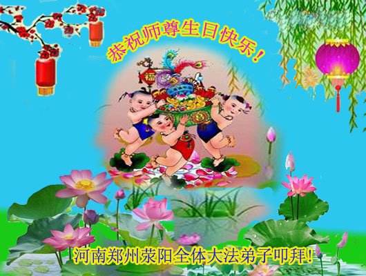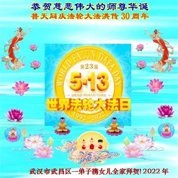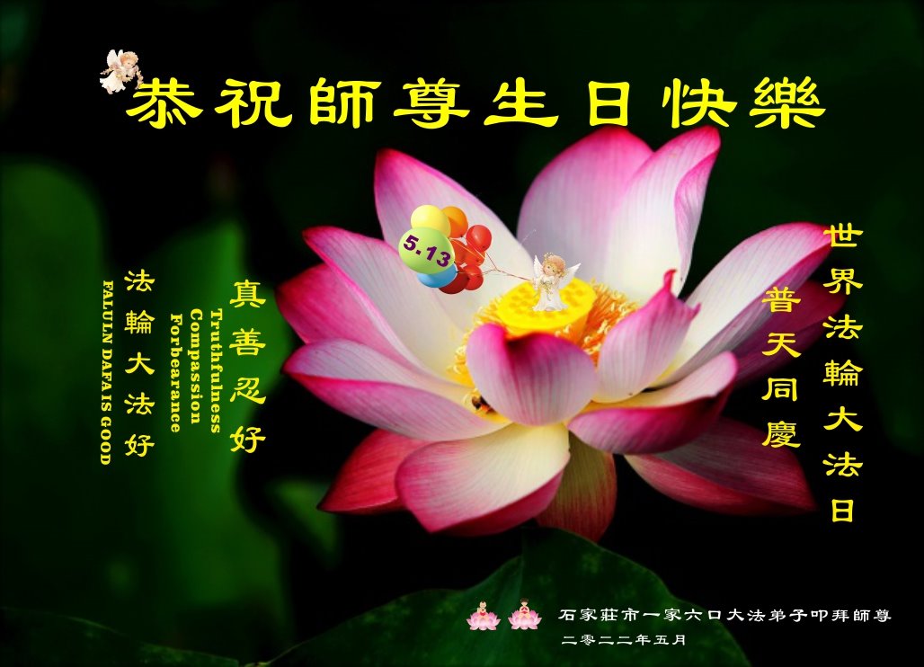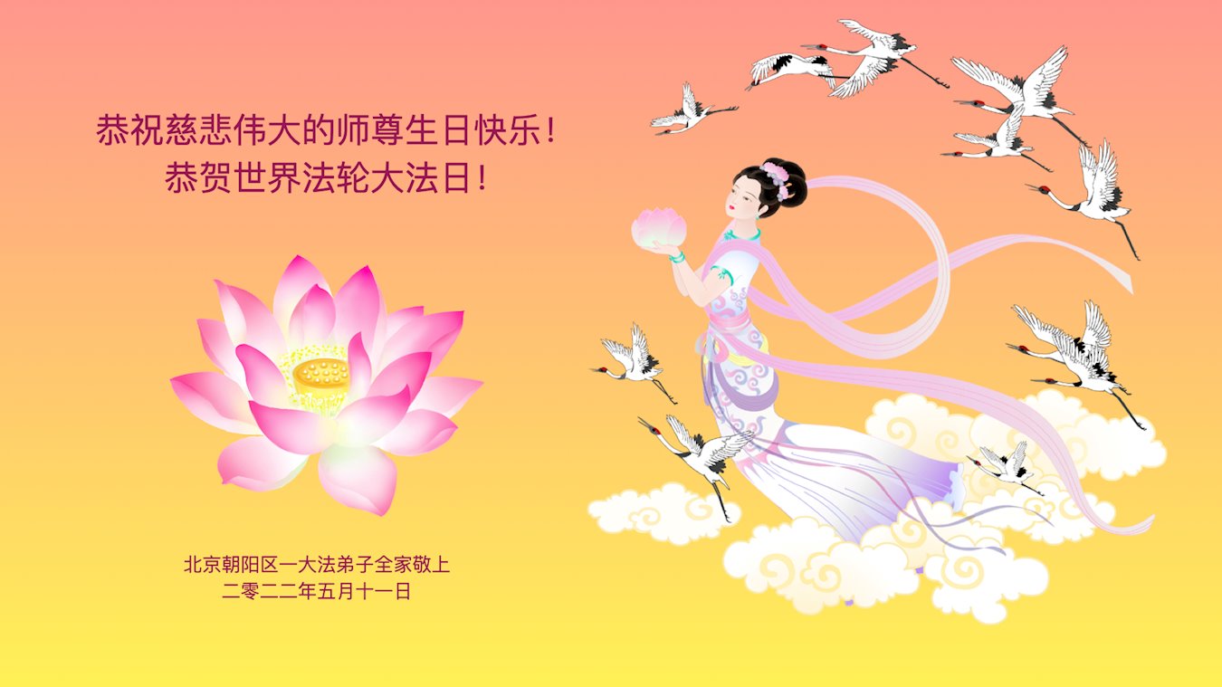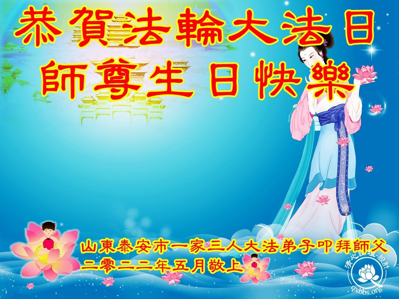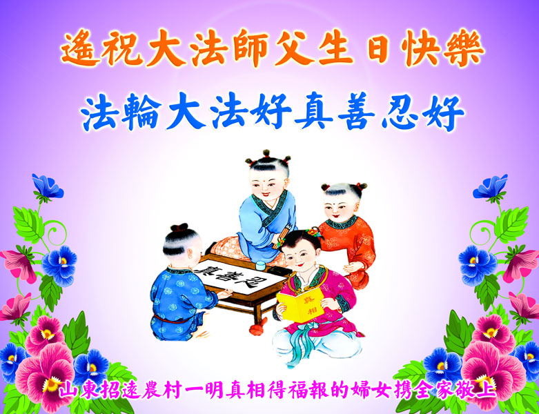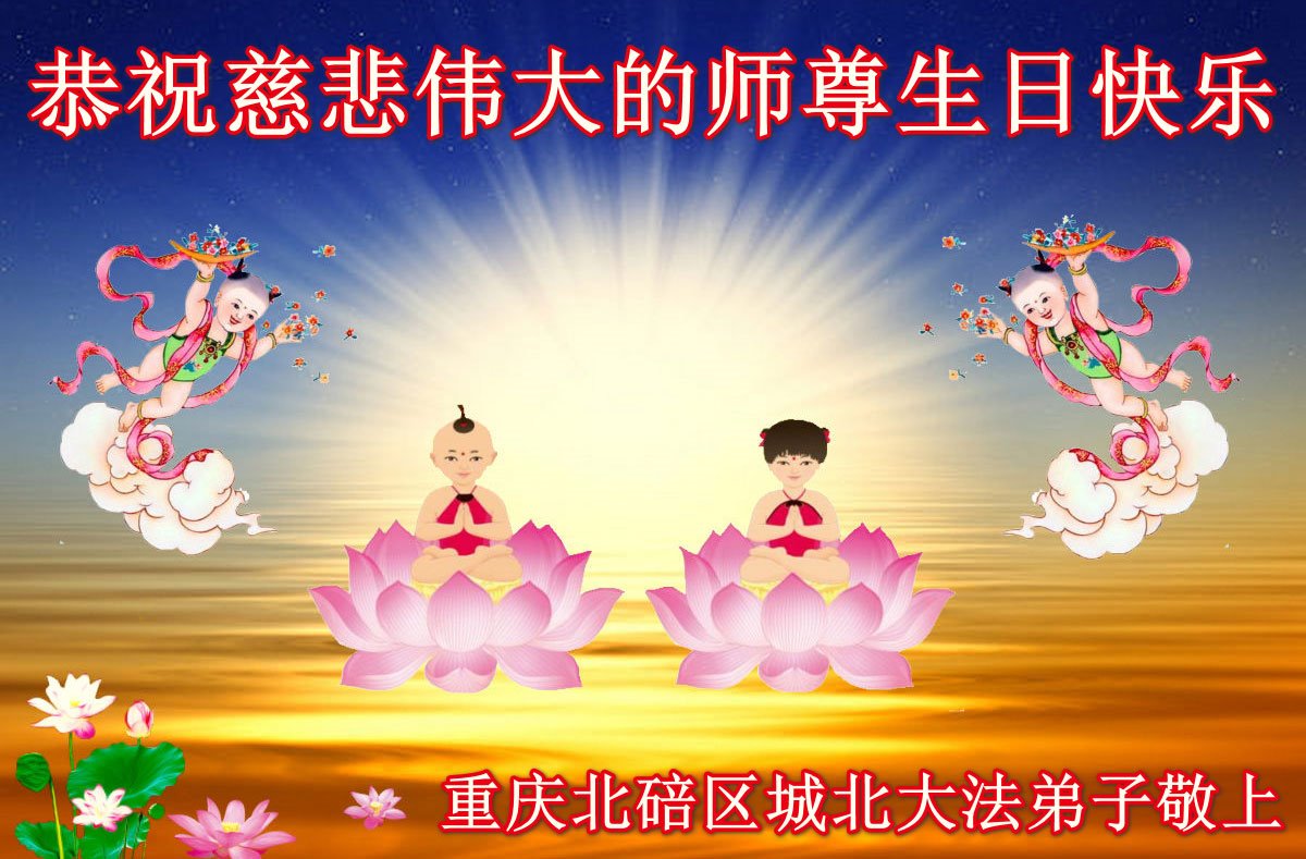 全家叩拜!谢谢伟大的大法师父,祝您生日快乐!