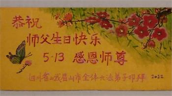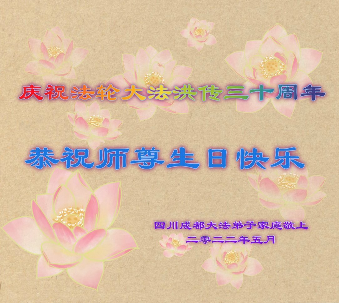 成都市一位市民在危难中得到了大法弟子教给的九字真言——“我就天天念,有空就念,念得我心情舒畅极了。现在,我脸色红润,神清气爽,而且生意也特别兴旺。我衷心的感谢李大师的救命之恩!我带着我的家人叩头,敬祝李大师生日快乐!”