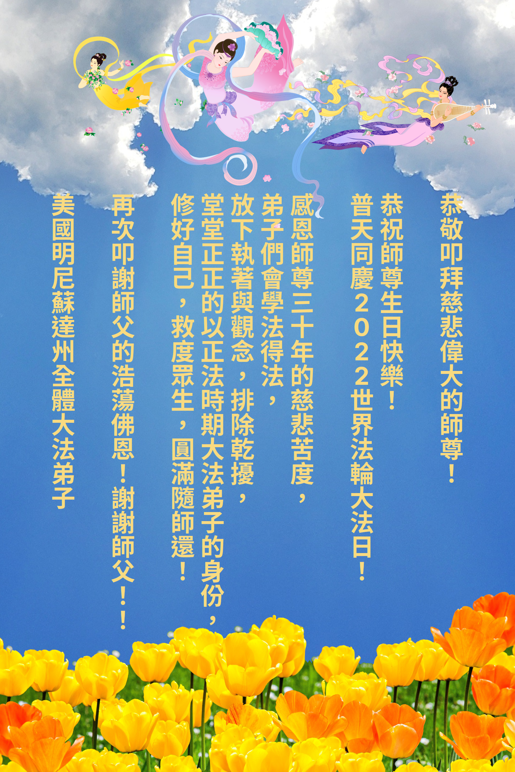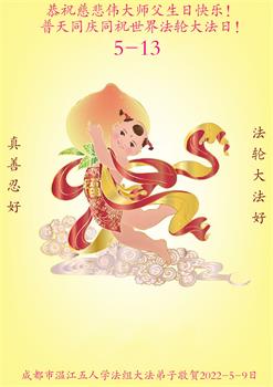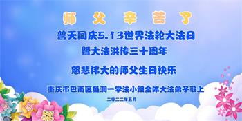 <英文版: http://en.d2s3ombhnov3zf.cloudfront.net/html/articles/2022/5/15/201222.html>韩国各地大法弟子恭贺世界法轮大法日暨师尊华诞(19条)