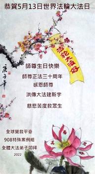 庆祝513世界法轮大法日!恭贺法轮大法洪传全世界三十周年!