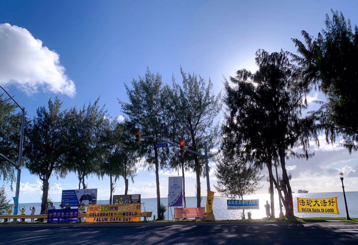五月八日,在当地警署和交通部门的协助下,由警车开道,从美国公园出发,途经海滨路、基督教堂、机场、马里亚纳大学、泡泡海滩等重要路段,历时一个半小时左右,场面平和,每一辆车上写有“法轮大法洪传世界30周年”、“立即停止迫害法轮功”、“中共不是中国”、“法轮大法好,真善忍好”、“制止中共活摘器官”等中英文真相标语向市民传递真相,揭露中共迫害法轮大法的罪恶,唤醒世人良知,不少来往车辆向游行车队鸣笛示意,表示支持和感谢。