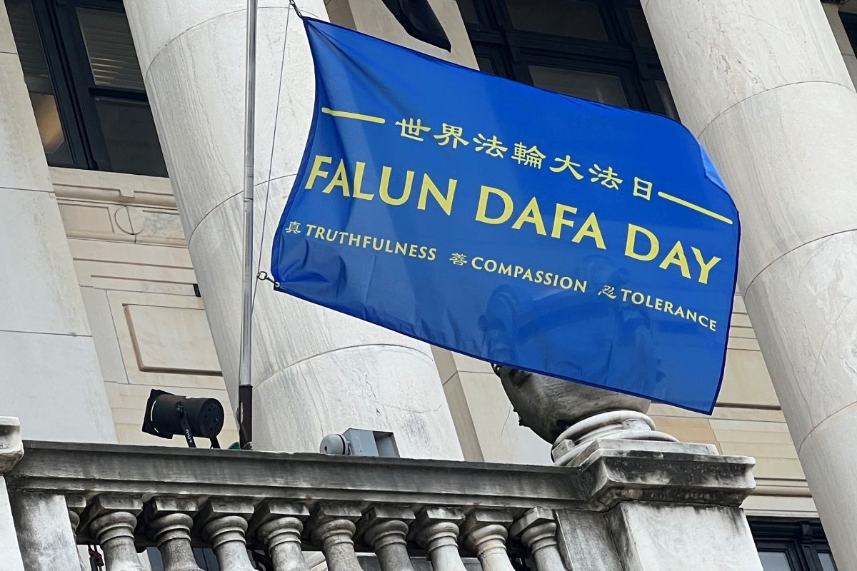 “真是一个美好的庆祝活动”,大法洪传已经30周年了,她感到非常感动,“这是一个令人兴奋的殊胜时刻。”为了参加升起仪式,她特地驱车一路从费城赶来,“我很开心能看到,写著“法轮大法日”的旗子在风中飘扬。”