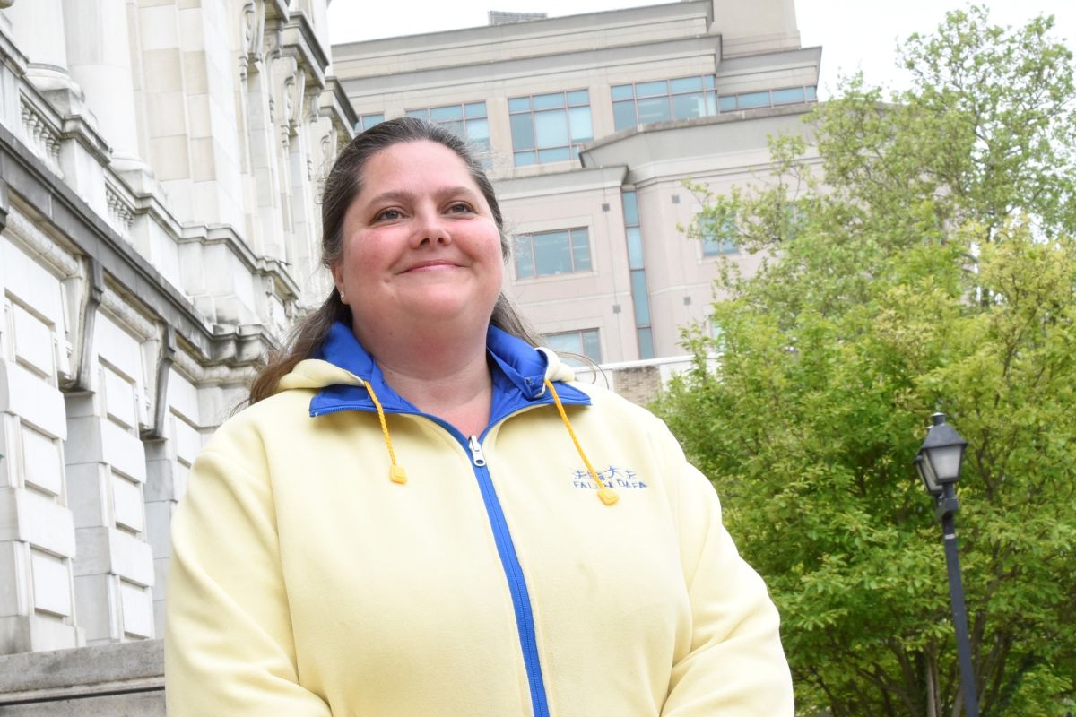 克里斯塔尔·康威(Krystal Conway)此前在梅西百货工作,她在十年前就从法轮大法学员手中收到过传单,对法轮大法有一定了解,“但是这是我第一次看到这么多人一起炼功。这看起来很美好。”她驻足观察著学员们的炼功动作,“非常平和。”