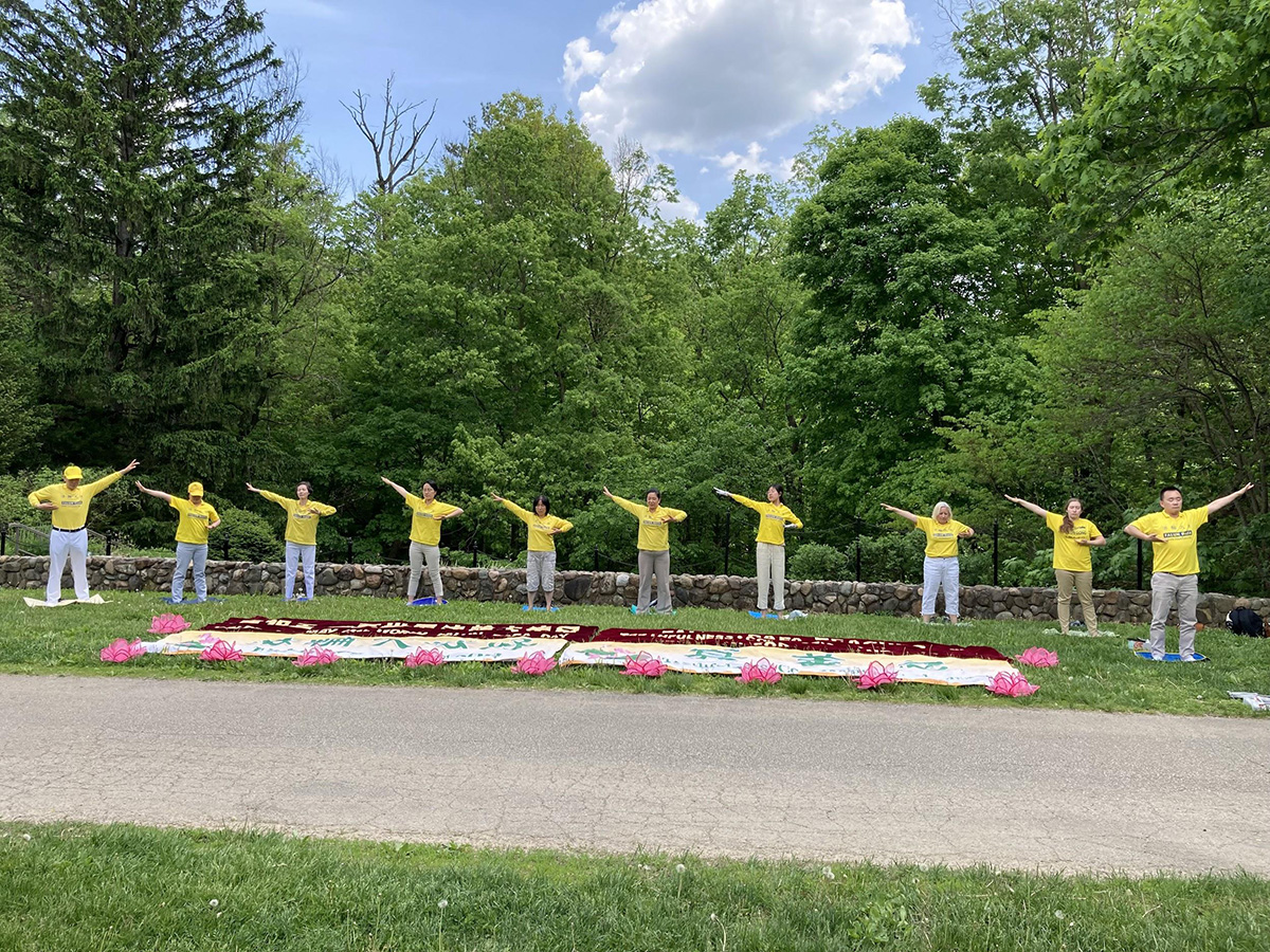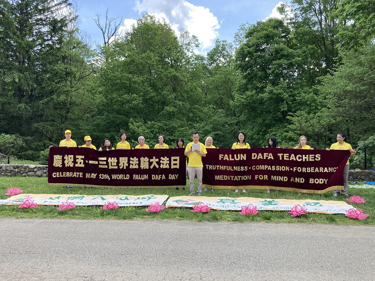 活动期间,印州青年法轮功学员还宣读了印第安那州州长,埃瑞克·霍科姆(Eric Holcombe),特此颁发的褒奖,即宣布二零二二年五月十三日为法轮大法日。