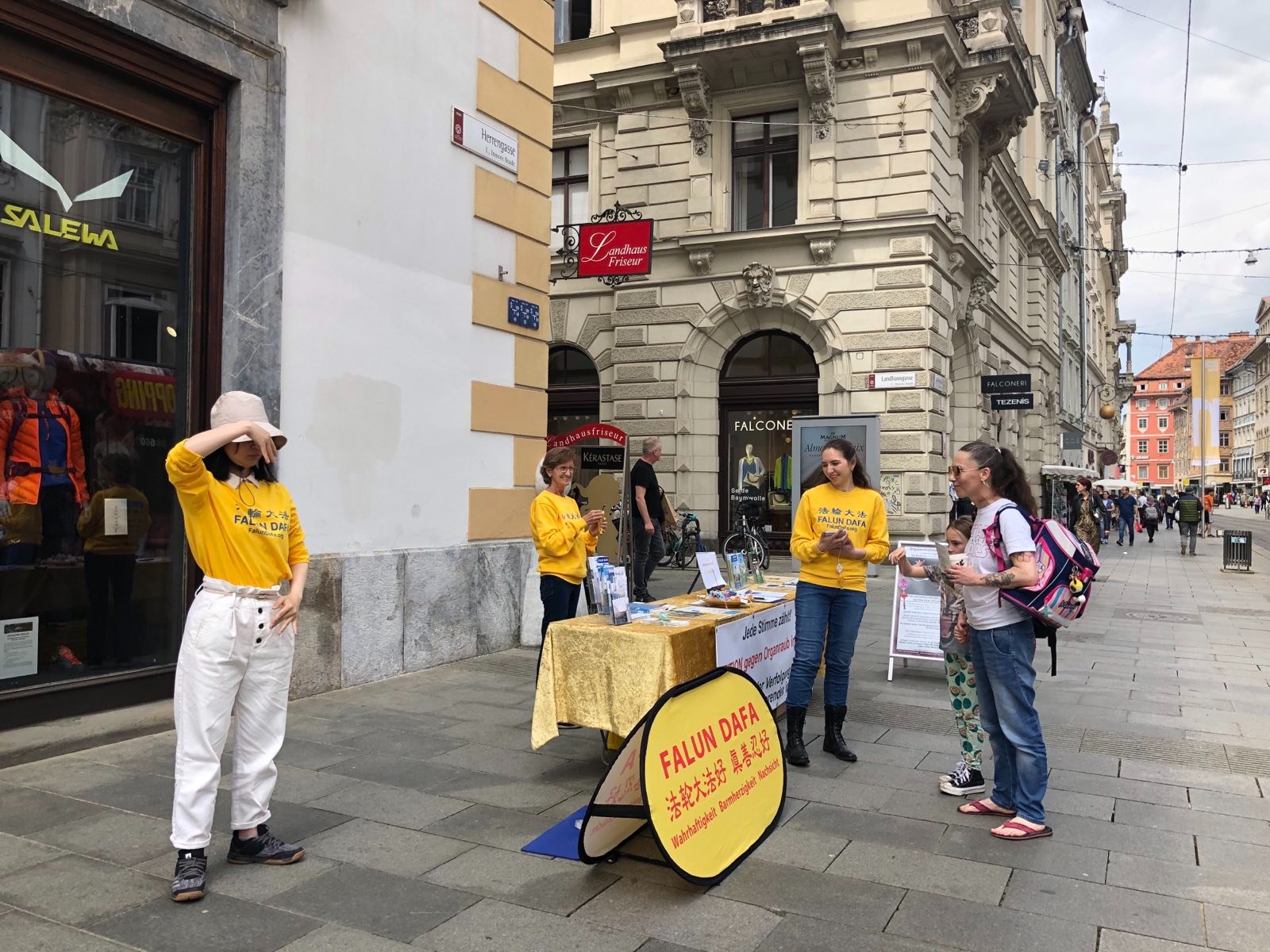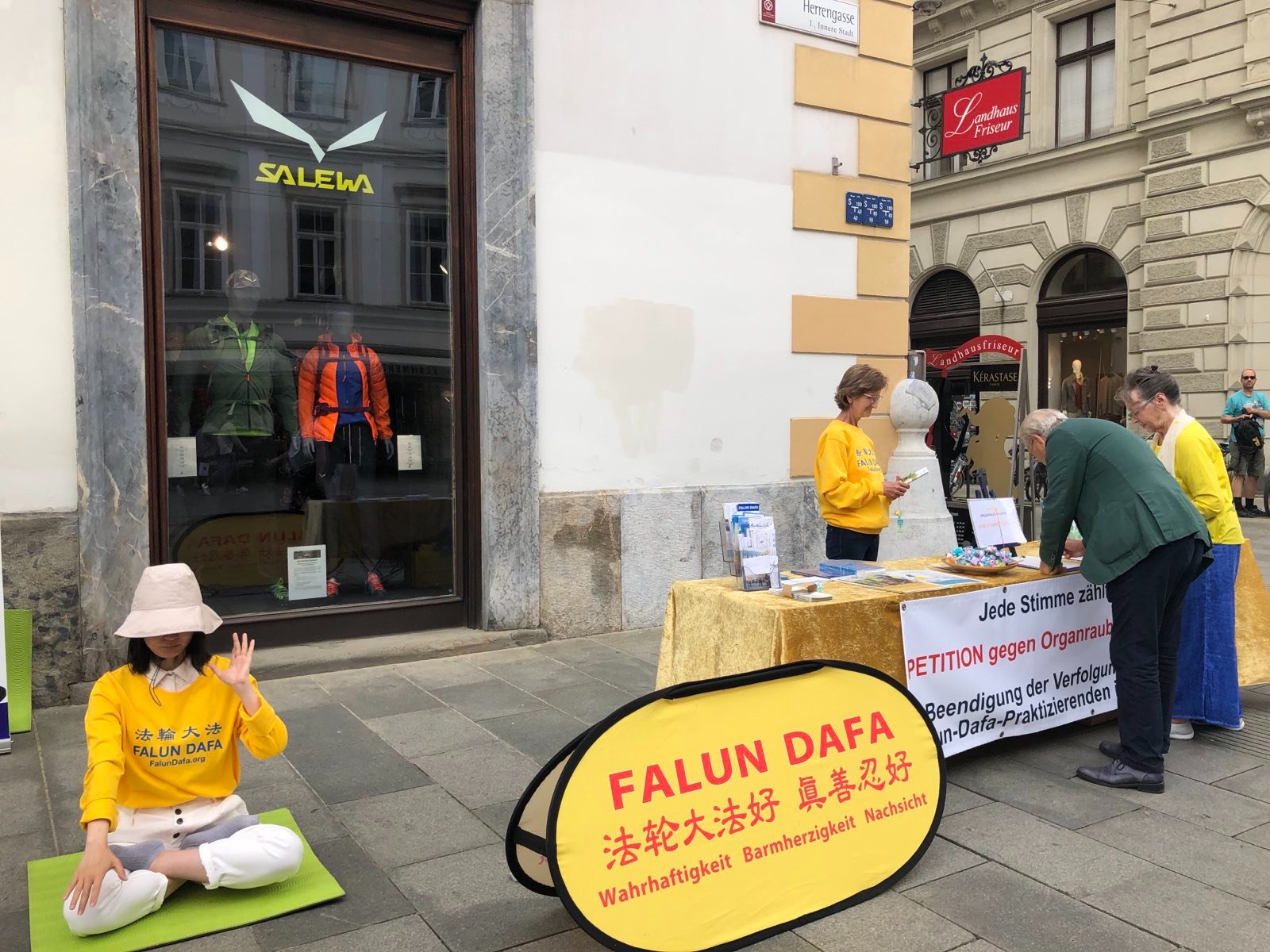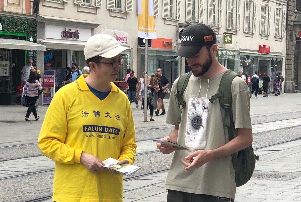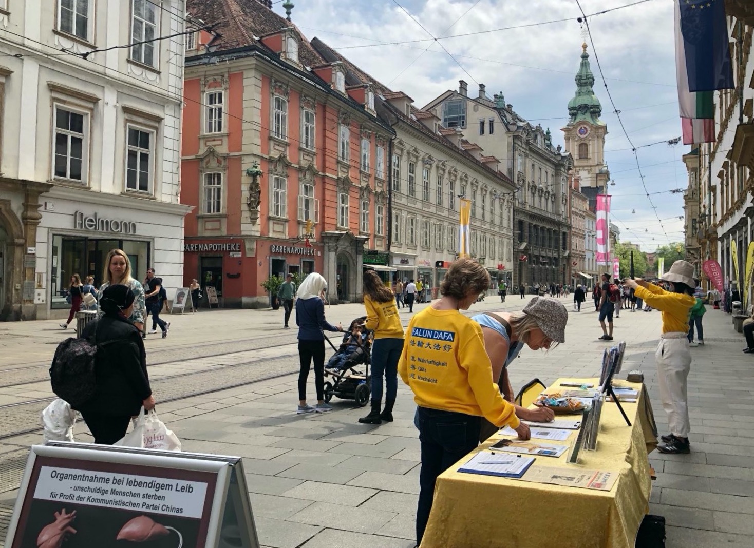 ![]() 图1~2:二零二二年五月十三日,奥地利法轮功学员在格拉茨的州政府前的绅士街上传播法轮功的真相。了解真相的人们签名反对中共活摘法轮功学员器官。 |