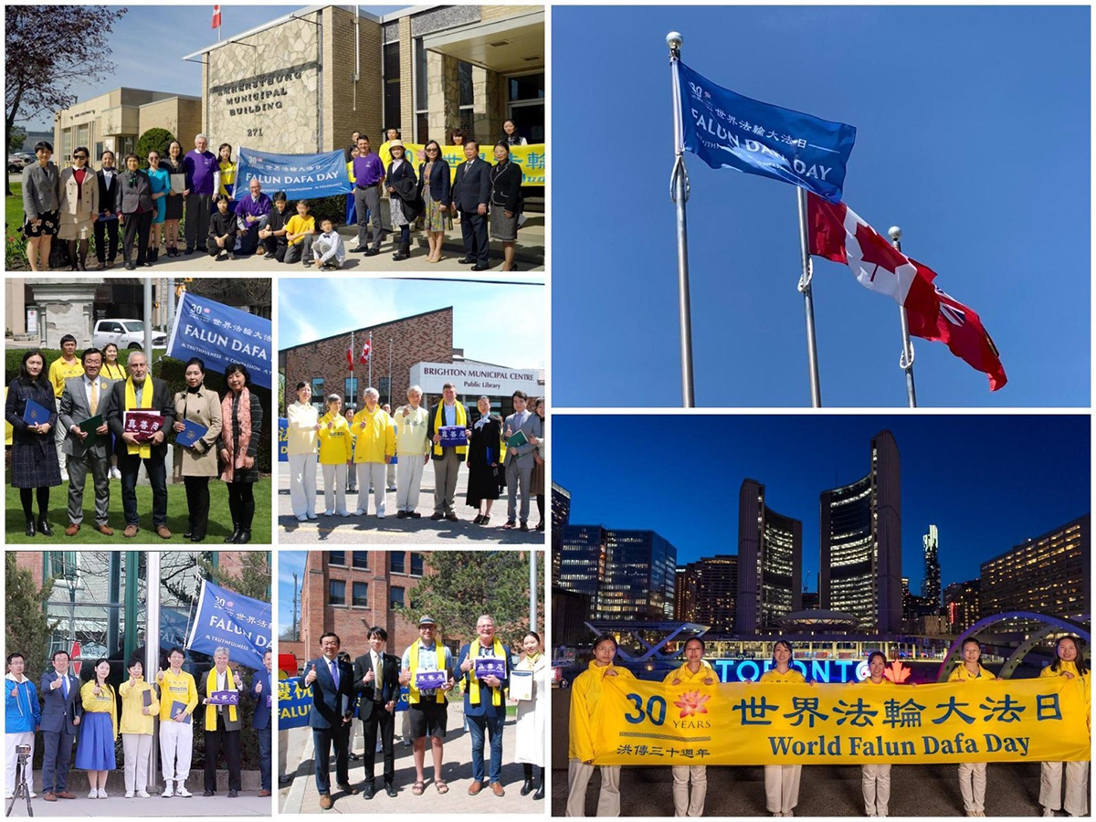 ![]() 图1~2:庆法轮大法洪传世界三十周年,加拿大二十三个城市举行升旗仪式,图为部分城市升旗仪式活动现场。 |