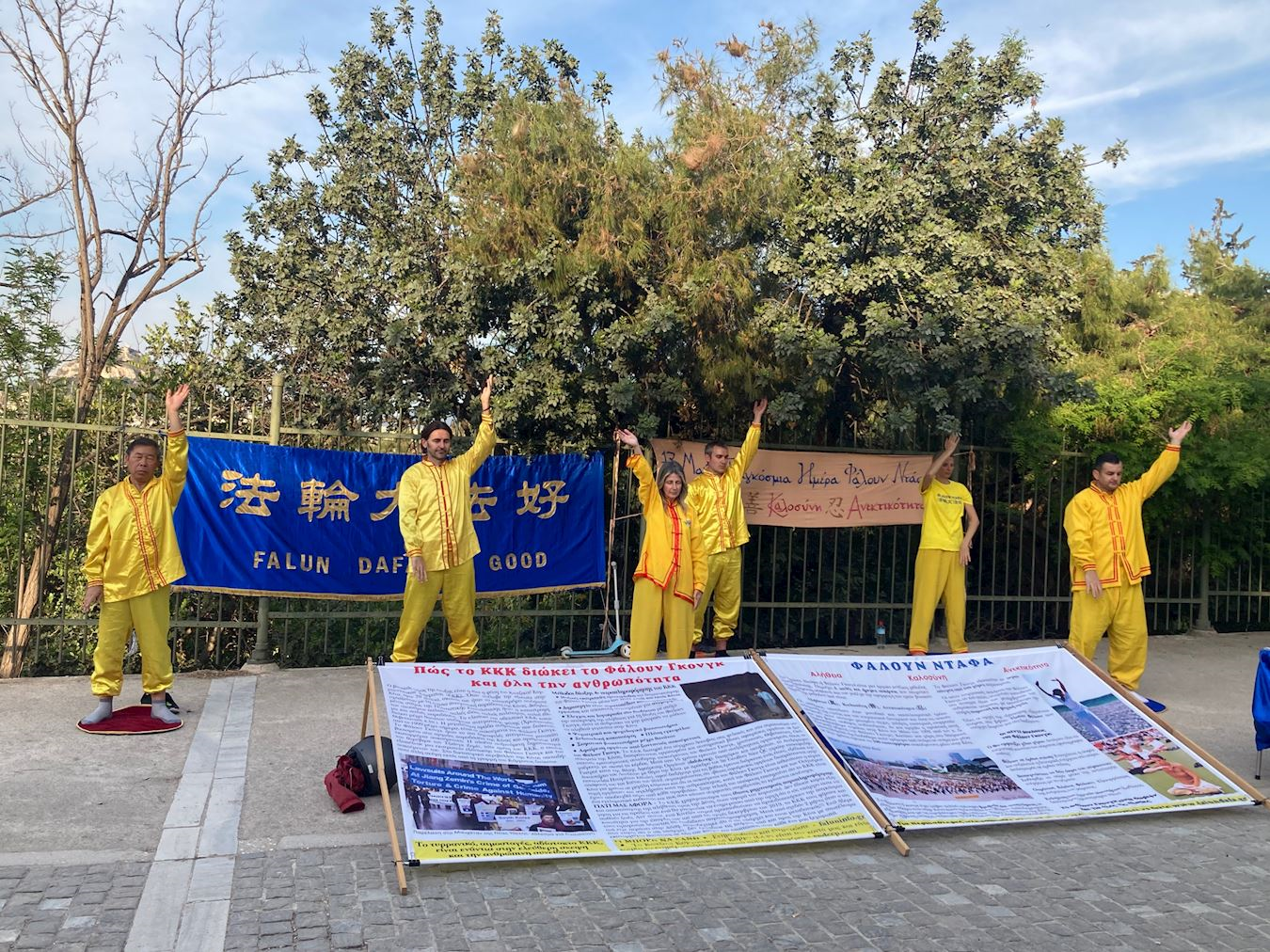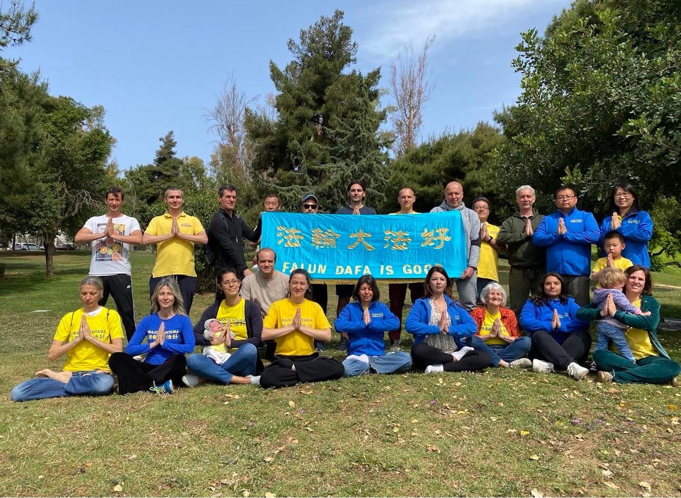 ![]() 图1:希腊法轮功学员恭贺李洪志师父五月十三日华诞,感恩大法弘传三十周年 |
