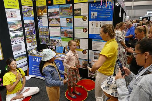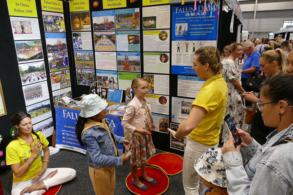 ![]() 图1:二零二二年四月二十二日至二十四日,昆士兰学员应邀在澳洲最大的健康博览会——“身、心、灵”健康博览会(MindBodySpirit Festival)上设立展位,许多人前来了解法轮功。 |