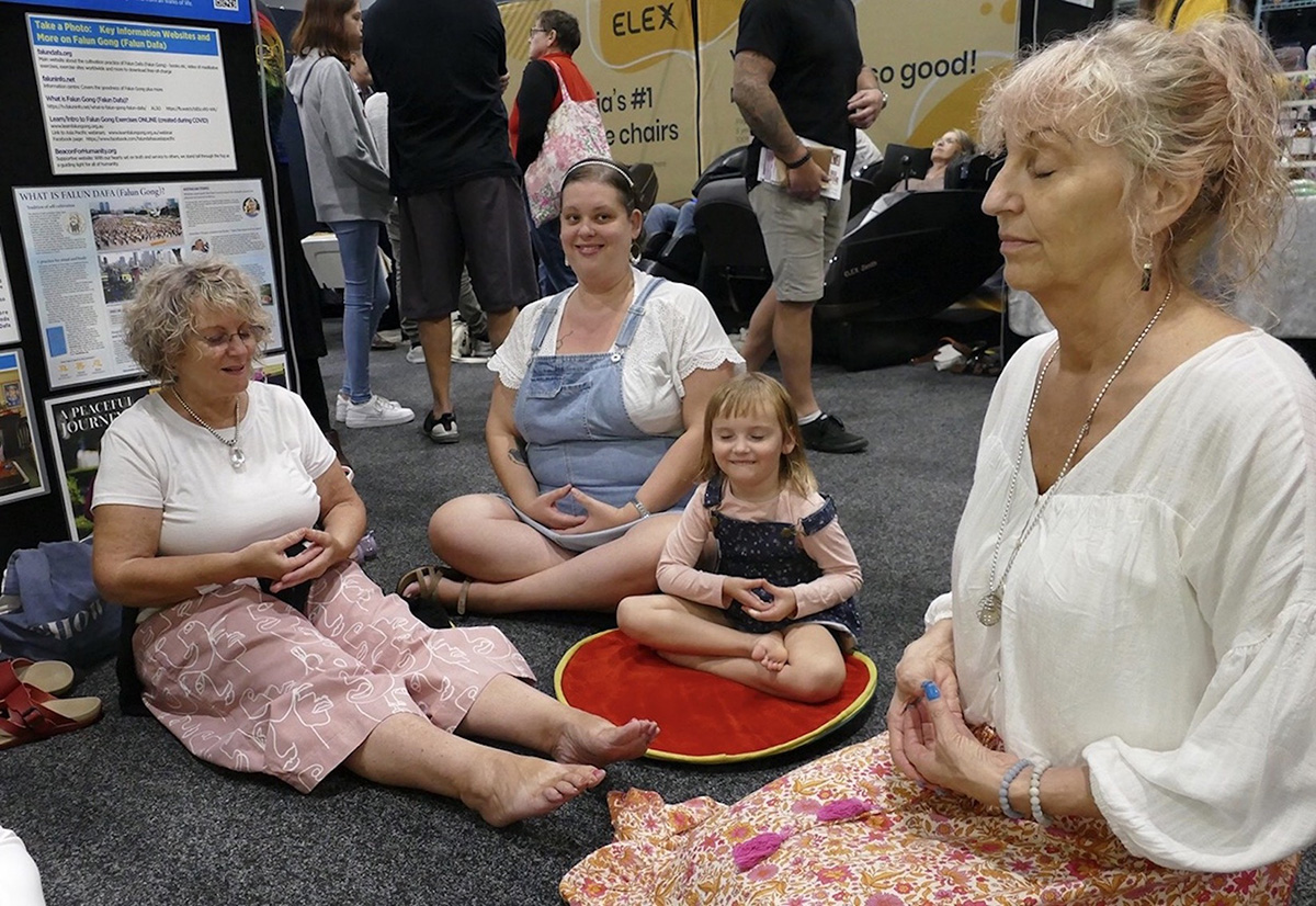 罗斯(Rose)女士带着她的小女儿西莉亚(Celia)来参加健康博览会的一个讲座,当看到法轮功的展位,西莉亚的眼睛亮了起来,她高兴地来到了法轮功展位前,并叫罗斯:“妈妈,来坐这儿!”当他们开始学习第五套功法时,罗斯很容易就学会了。西莉亚一直微笑着,享受着现场祥和的能量。她们待了一段时间,罗斯问了法轮功学员很多问题,得到解答后她说:“我的小女儿西莉亚真的需要这个(法轮功)!”她们离开不久之后又都回来了,罗斯说因为女儿西莉亚坚持要来法轮功的展位多打坐。