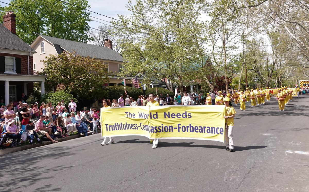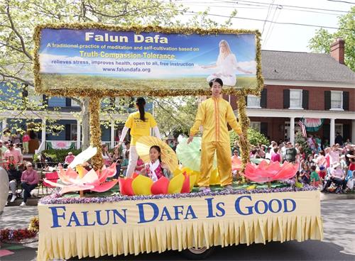 ![]() 图1~4:二零二二年四月三十日,法轮功学员应邀参加美国弗吉尼亚州温彻斯特市一年一度的苹果花节(The Shenandoah Apple Blossom Festival)游行。 |