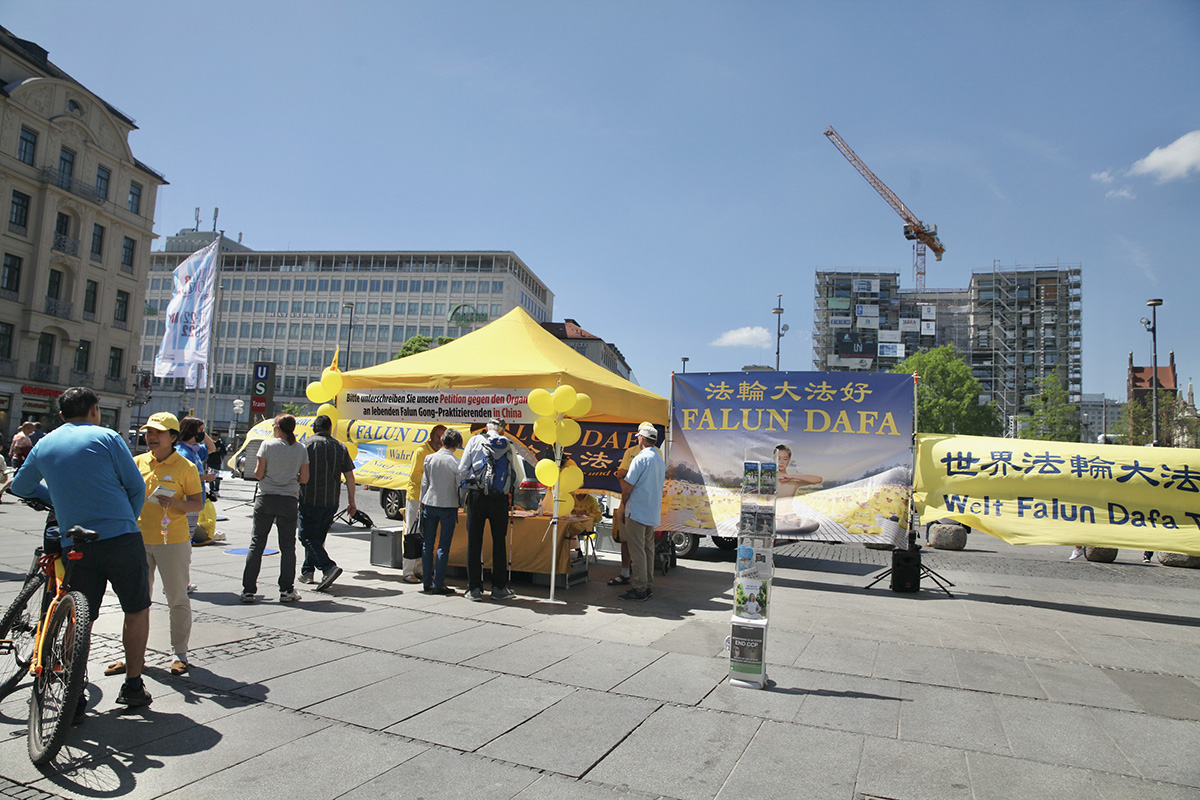 ![]() 图5: 法轮功学员在慕尼黑卡尔斯广场举办活动。 |