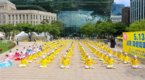 ![]() 图2~4:韩国学员五月十三日在首尔广场集体炼功,举办庆祝二十三届世界法轮大法日暨法轮大法弘传世界三十周年庆祝活动。 |