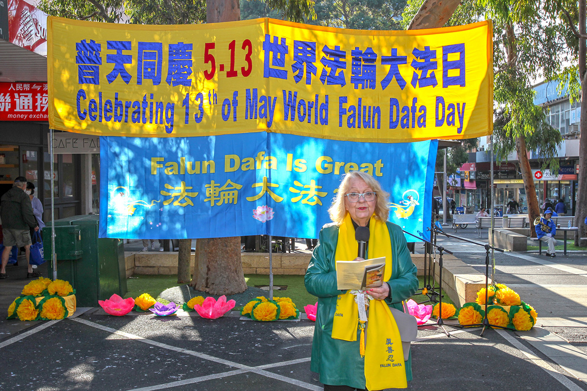 白马市市长刘昱婷女士专门为世界法轮大法日庆典发来了贺信,由白马市副市长马苏德(Cr Denise Massoud)女士在集会上宣读。
