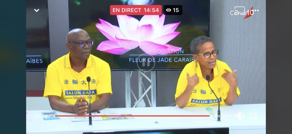 ![]() 图:二零二二年四月十四日,法轮功学员应邀在法国海外省瓜德罗普电视台 Canal 10介绍法轮功 |