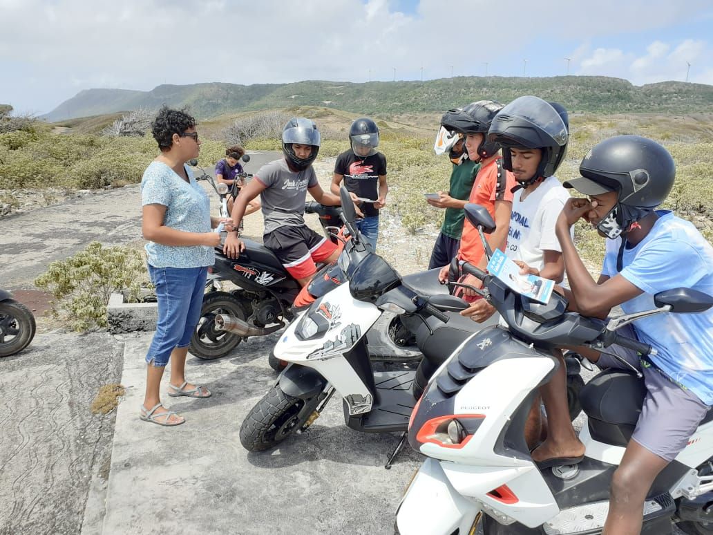 ![]() 图:二零二一年三月二十八日,在瓜德罗普南部小岛德斯拉德(la Désirade),法轮功学员(左一)向一群骑摩托车的人讲法轮功真相。 |