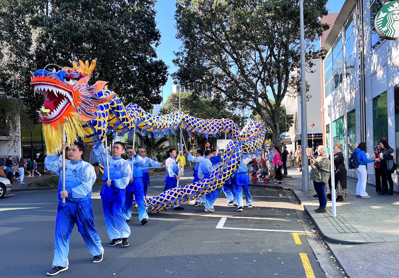 亨特·奥斯本(Hunter Osborne)是一位护士。他和他的儿子一直观看游行前的排练,他说:“(天国乐团)音乐非常酷,我也特别喜欢舞龙队和腰鼓队的表演,每个都很棒,都让我惊艳,中国人就应该像他们这样大声地、自豪地展现自己。”