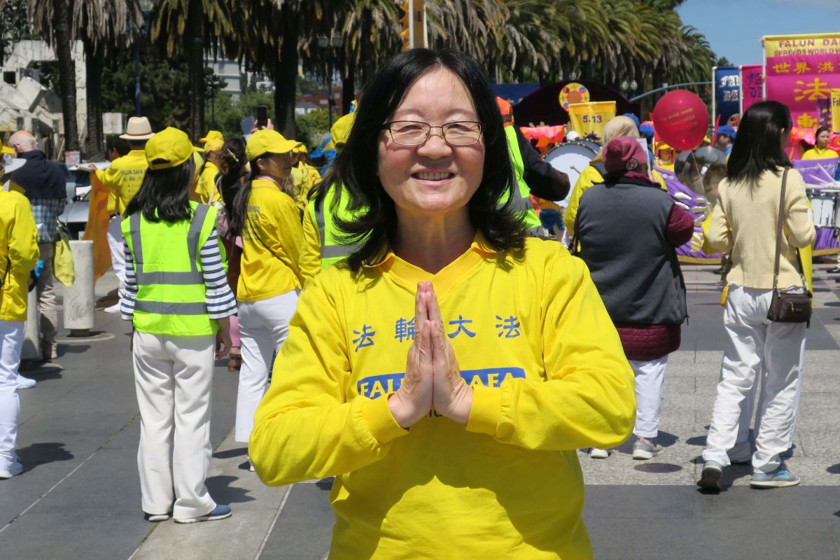 一九九八年开始修炼法轮功的陈萍女士,每逢法轮大法日都会来参加庆祝活动。今年法轮大法弘传三十周年之际,她心存感恩的表示,“今天来参加这个庆祝活动,非常喜悦和感激。回顾自己二十多年的修炼路程和身心的变化,感谢师尊的慈悲与看护,真是无以言表。”