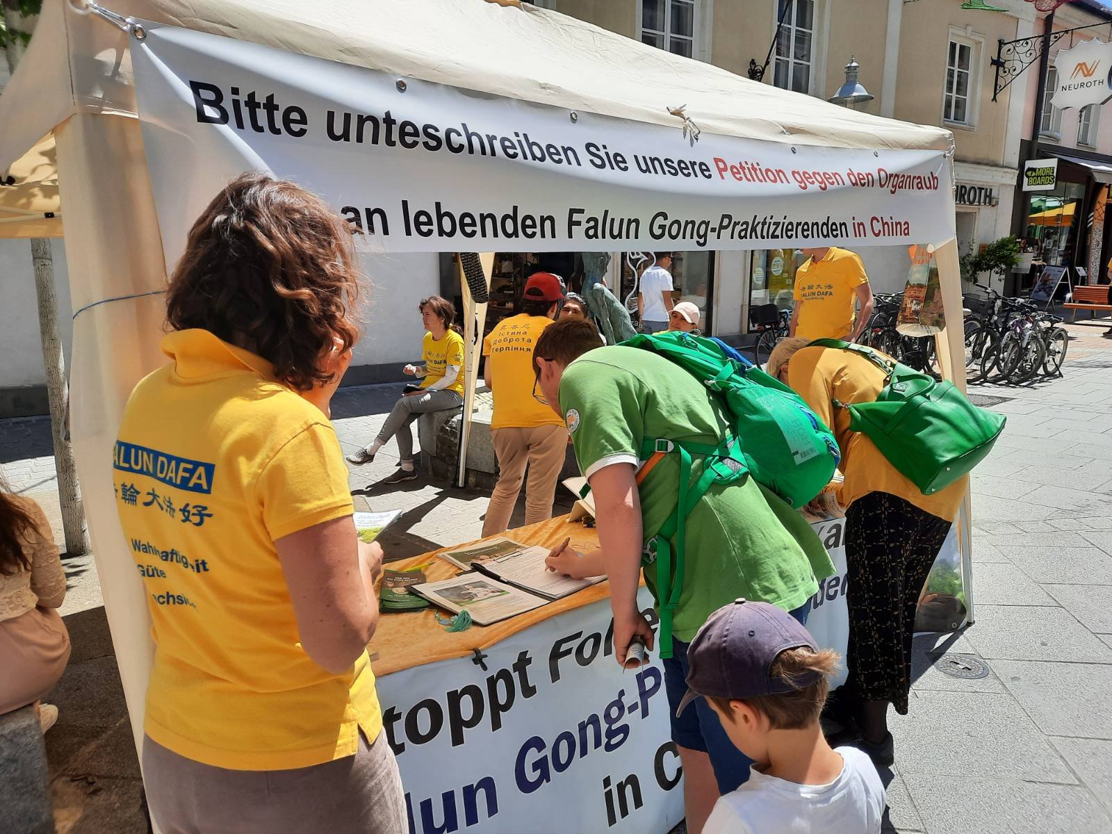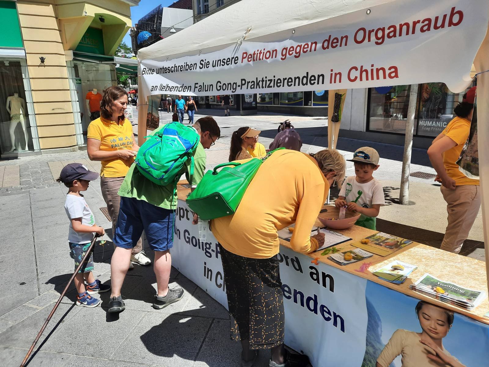 ![]() 图1:二零二二年六月四日,法轮功学员在奥地利东部城市圣珀尔滕 St. Pölten 举办信息日活动,向民众介绍法轮功的真相。 |