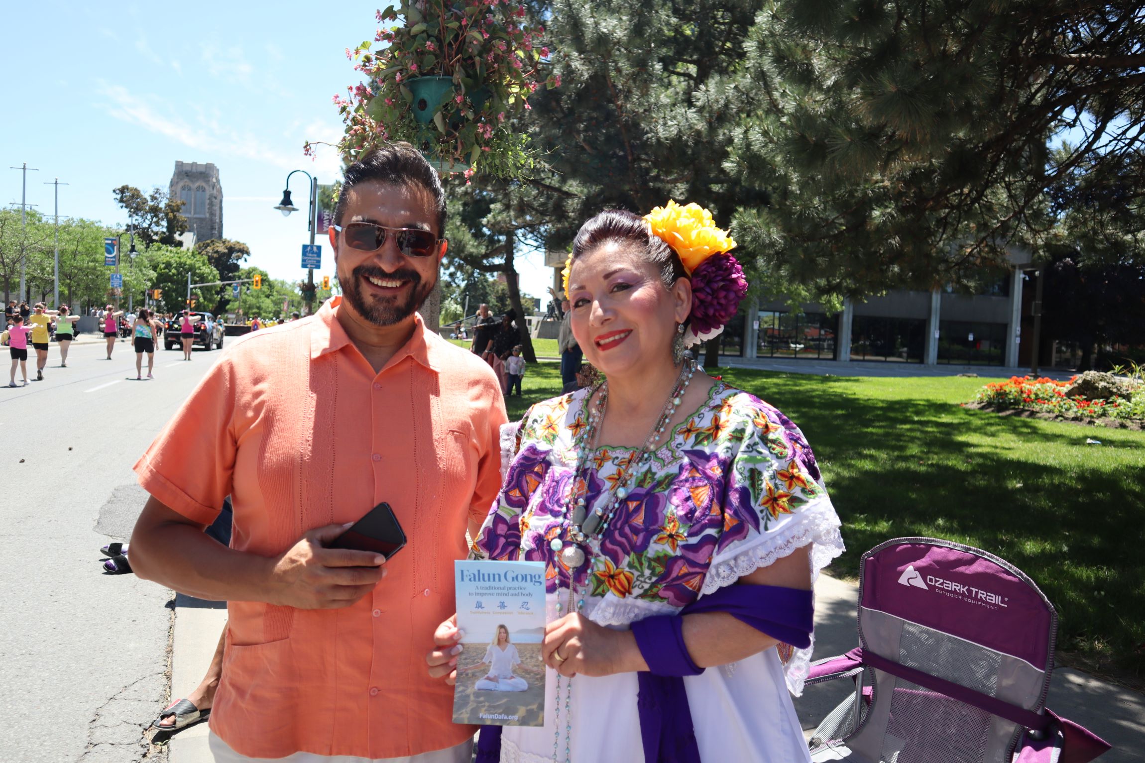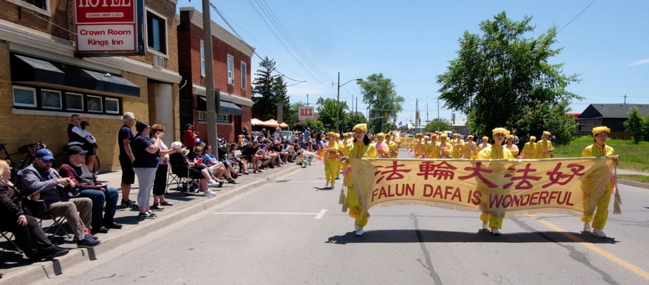 六月十九日,天国乐团和炼功方阵受邀参加了奥沙瓦(Oshawa)的“多元文化节”游行。同时,腰鼓队参加了韦兰(Welland)举行的“玫瑰节”游行。在这两天的游行活动中,法轮大法学员的方阵深受两边观众的喜爱。有很多民众随着天国乐团和腰鼓队的节奏拍手,有些观众学着学员的动作学炼法轮大法的功法。