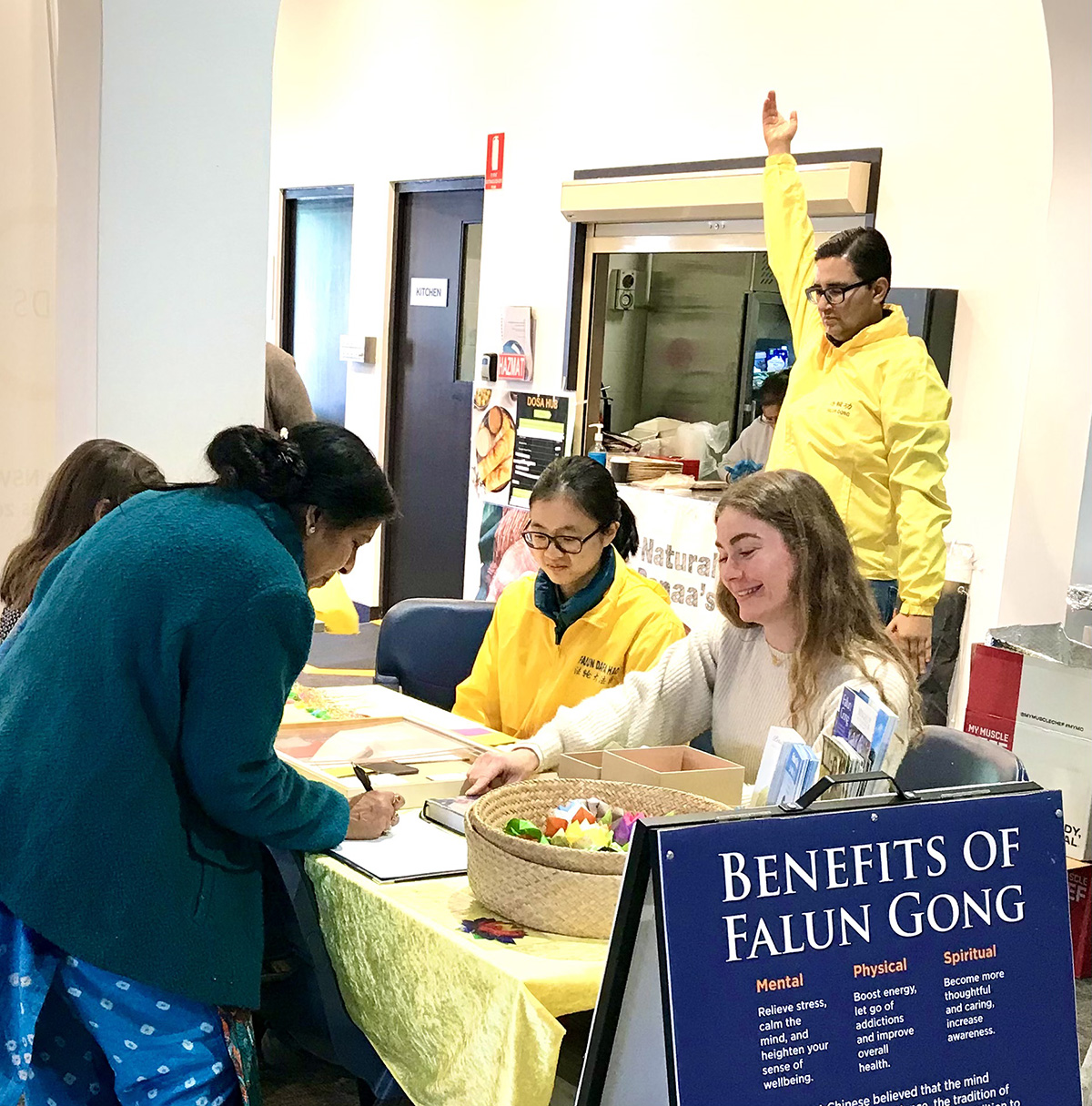 ![]() 图1:二零二二年六月十八日,法轮功学员在澳洲新南威尔士州癌症委员会举办的活动中设立展位,展示功法。人们对修炼法轮功能获得身心受益很感兴趣,立即报名参加当地的免费教功和炼功点。 |