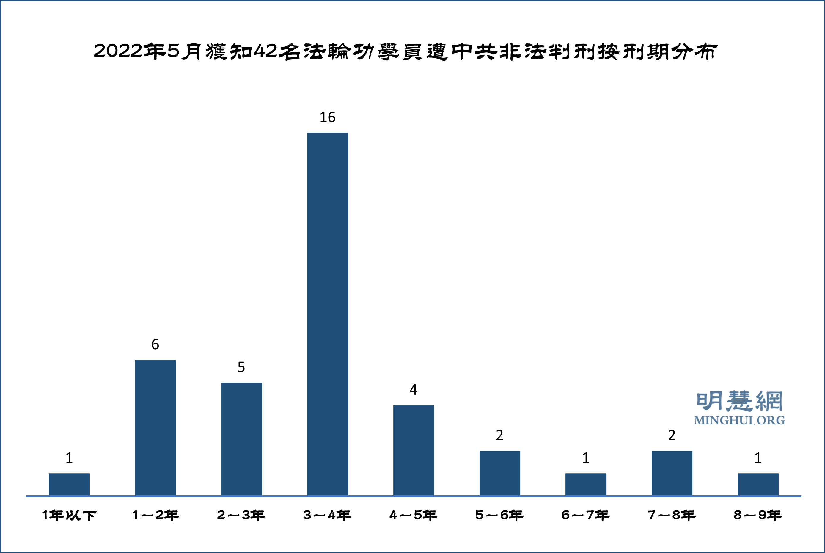 ![]() 图2:2022年5月获知42名法轮功学员遭中共非法判刑按刑期分布 |