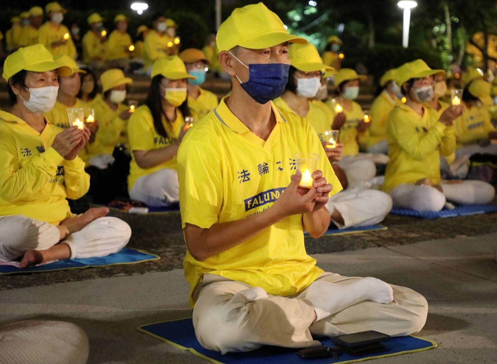 ![]() 图10:夜幕降临时,学员们点亮烛光,默默悼念二十三年来为坚守正信被迫害致死的中国法轮功学员。 |