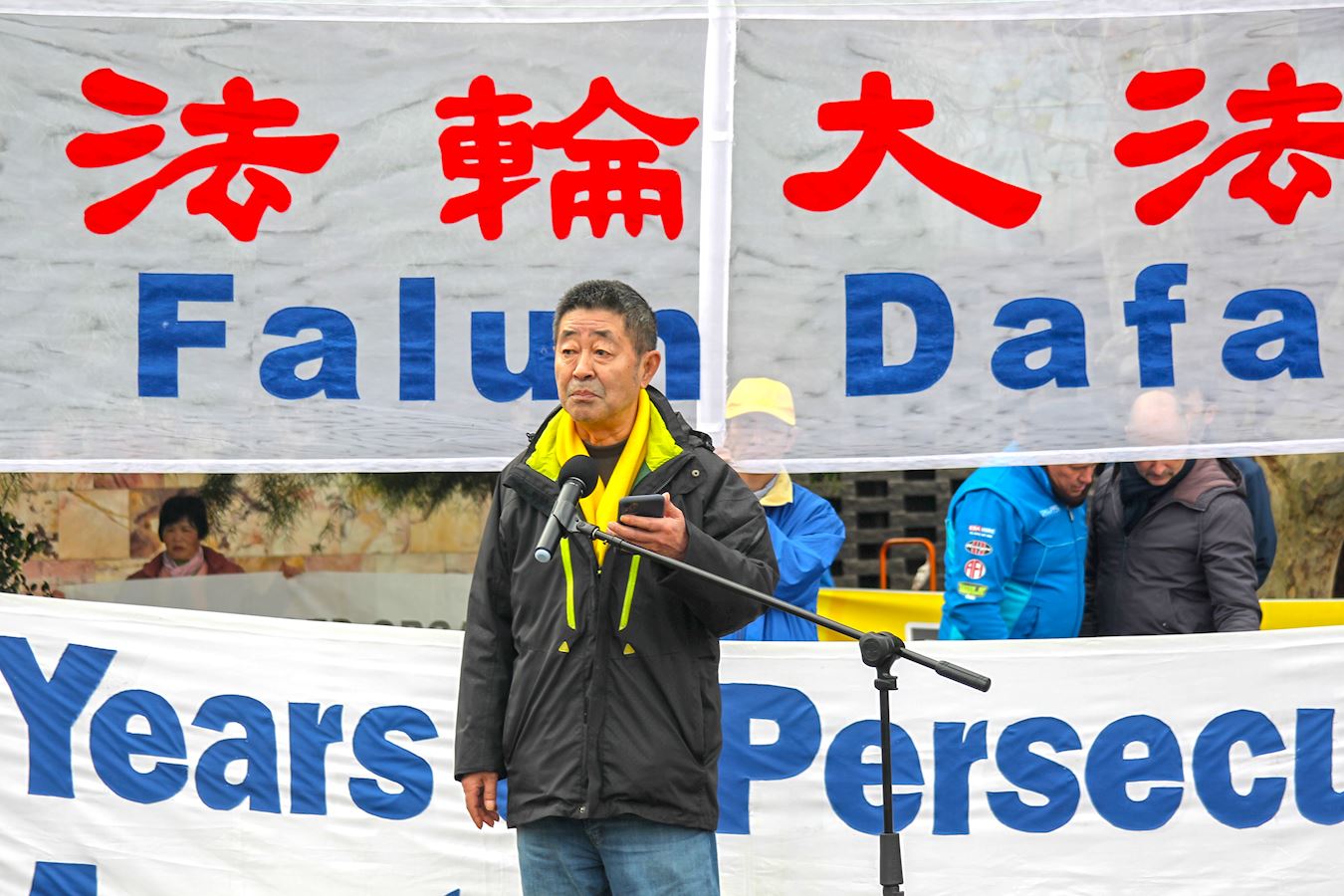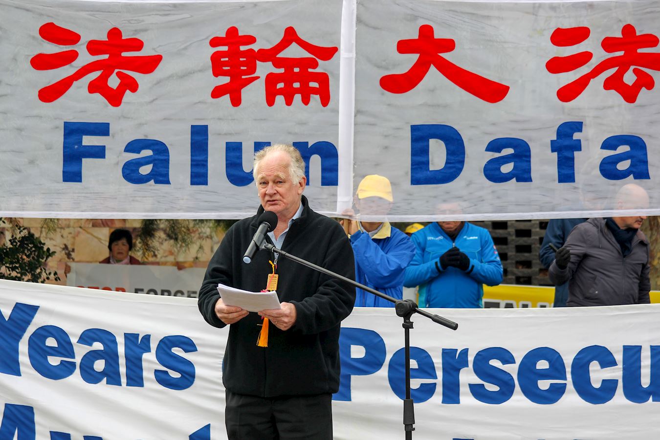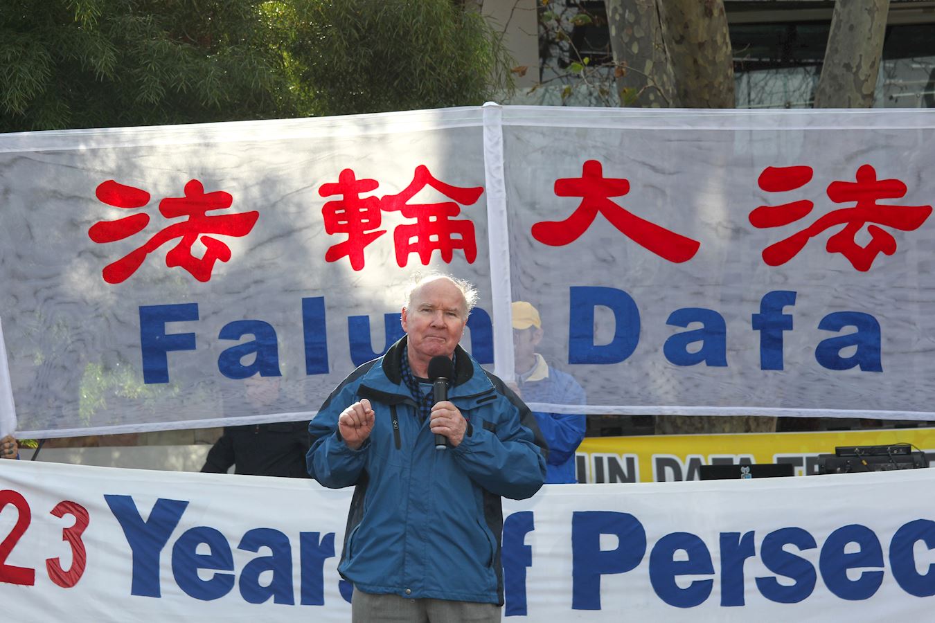 维州法轮大法学会负责人樊惠强在发言中说:“我们今天在这里集会,呼吁结束这场血腥的迫害。”