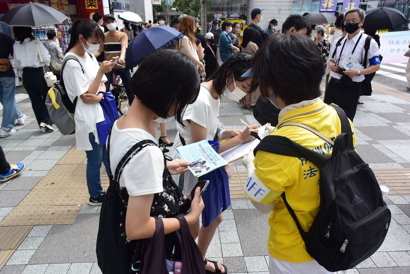 一九九九年七月二十日,中共党魁江泽民出于小人妒嫉,和中共相互利用,对法轮功发起史无前例的残酷迫害,迫害持续至今已有二十三年。法轮功学员坚持和平理性反迫害,日本法轮功学员在每年的七月二十日前后都举行反迫害活动。