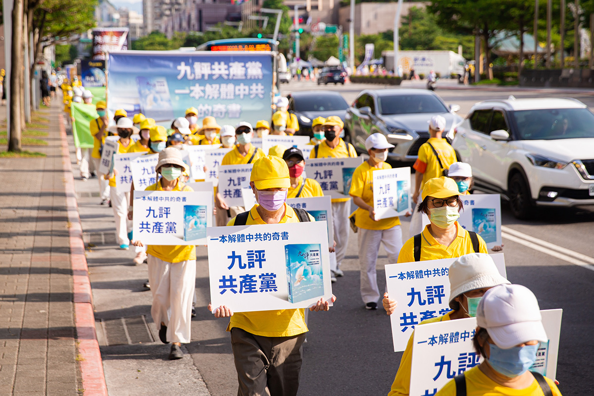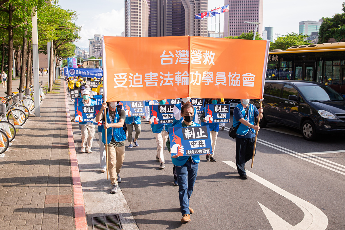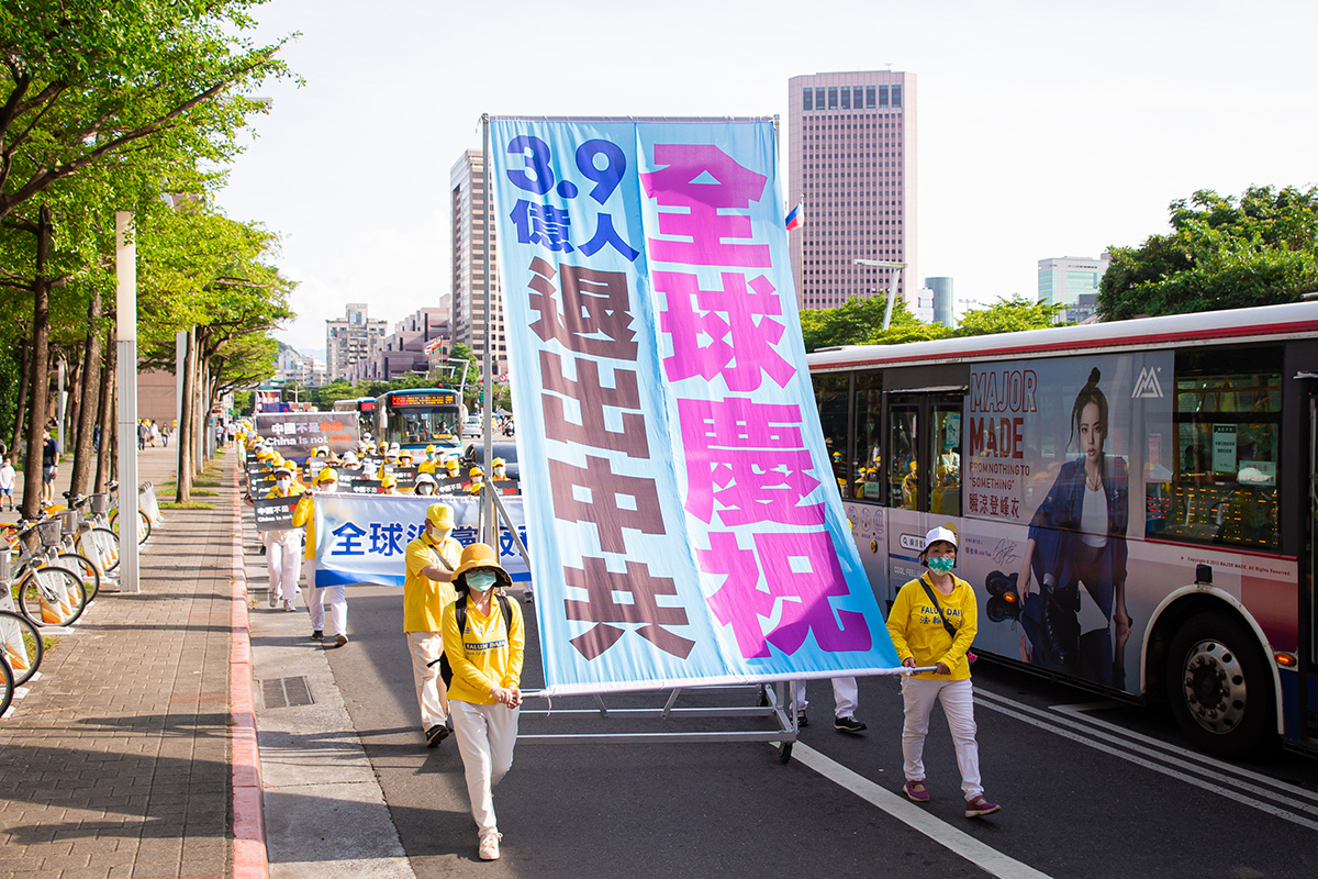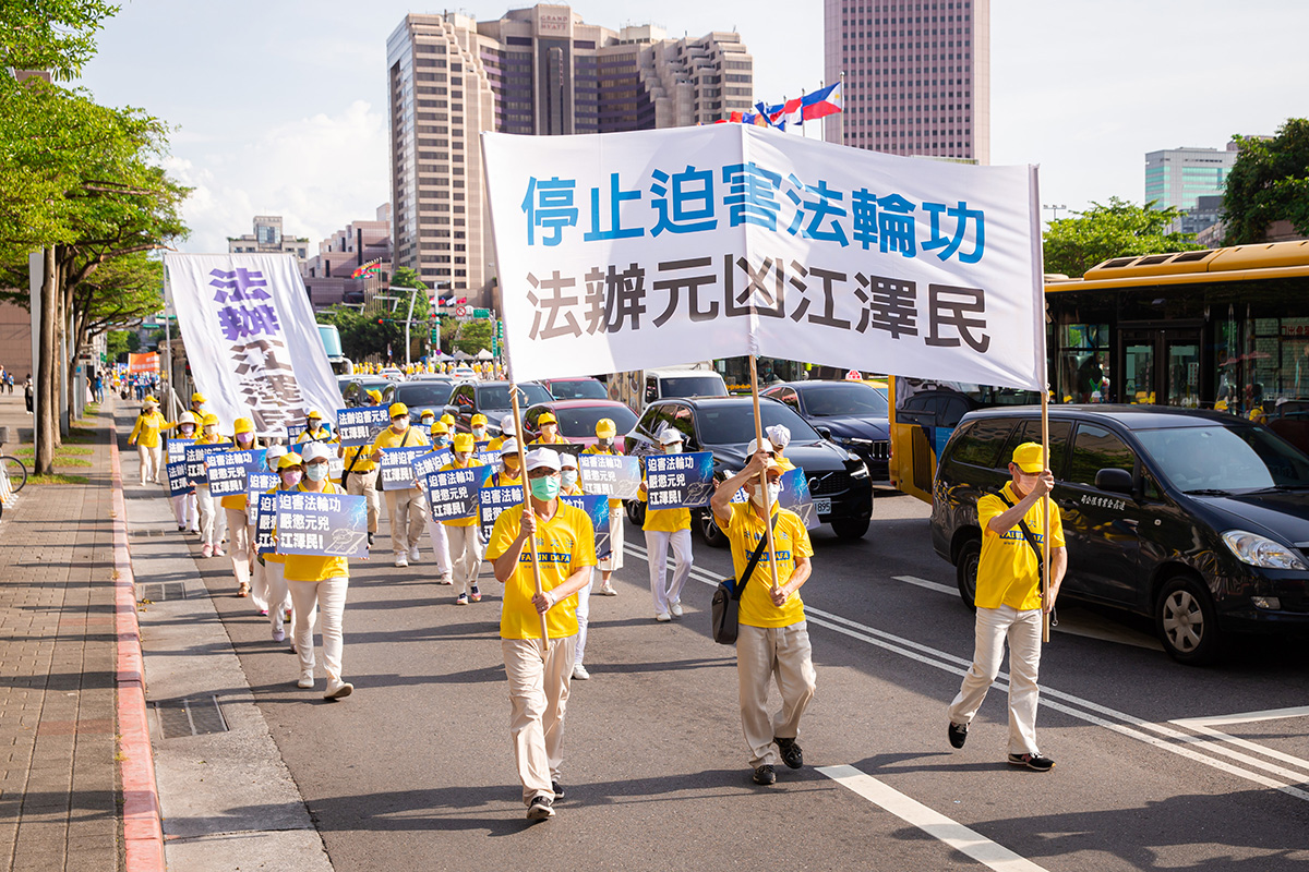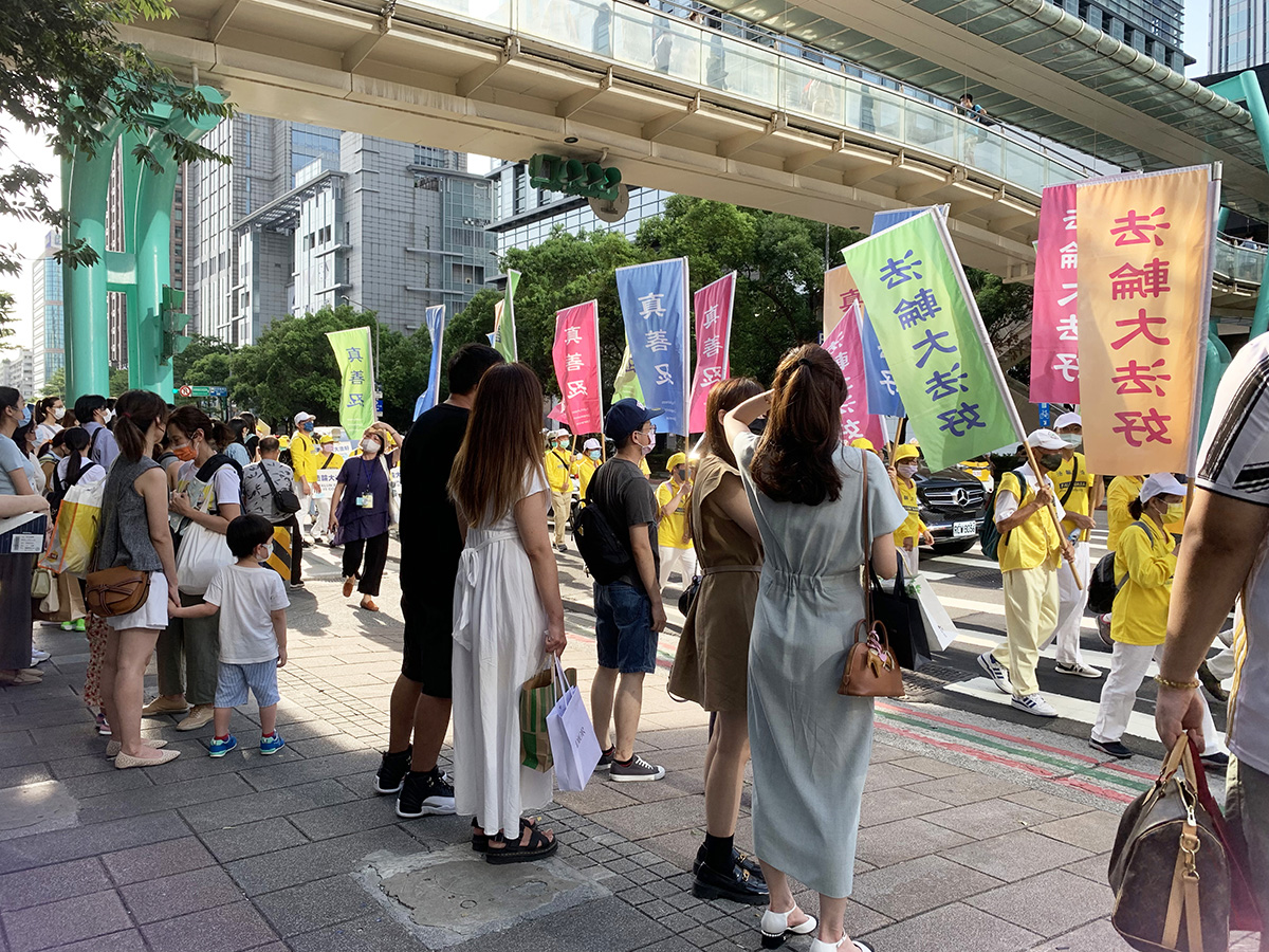 二零二二年七月十六日,台北部分法轮功学员约一千多位学员顶着高温在台北街头举行七・二零反迫害大游行,游行队伍从台北市政府市民广场出发,分三大方阵——大法弘传、千古奇冤及结束迫害,行经热闹信义计划区四周回到广场前,全程约1.8公里。