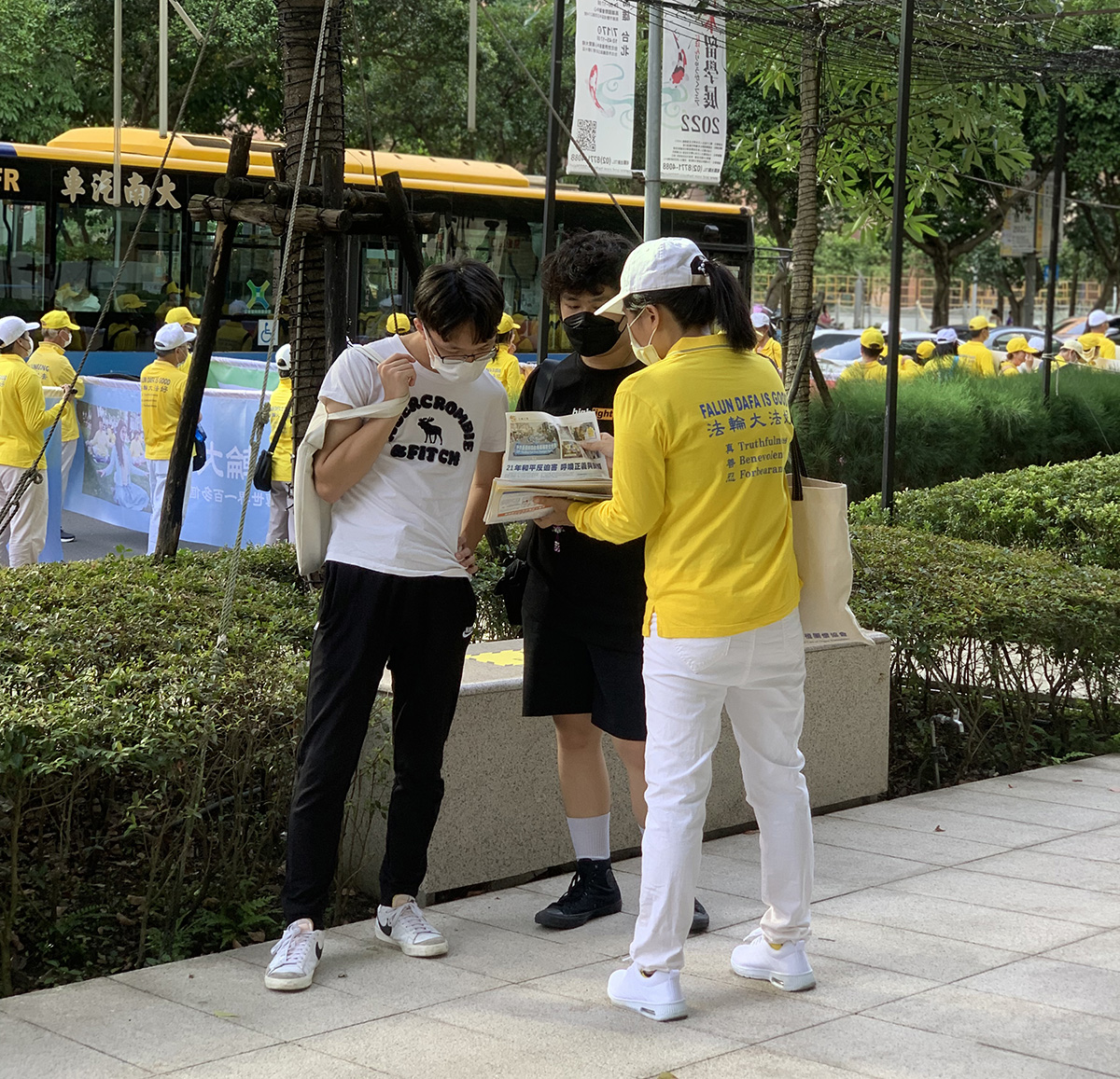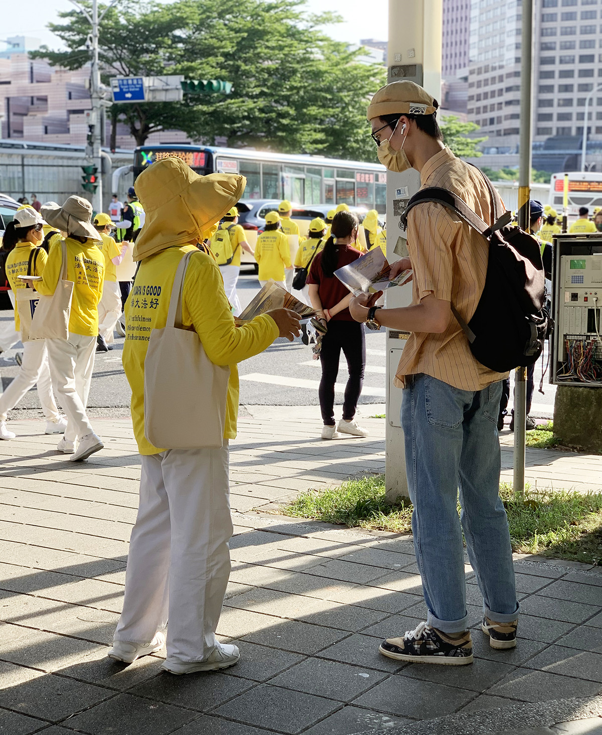 吴小姐在等公车时,刚好遇到法轮功学员的游行队伍。她说,对法轮功学员被中共迫害这件事,早已有所耳闻,他们这次以游行的方式,来表达自己诉求,她说:“觉得很好,这在台湾是合法的事情”。