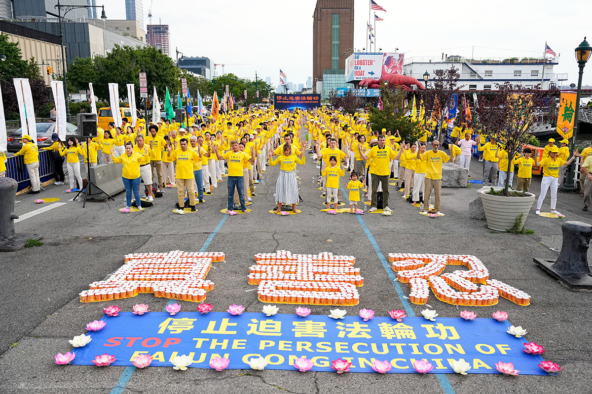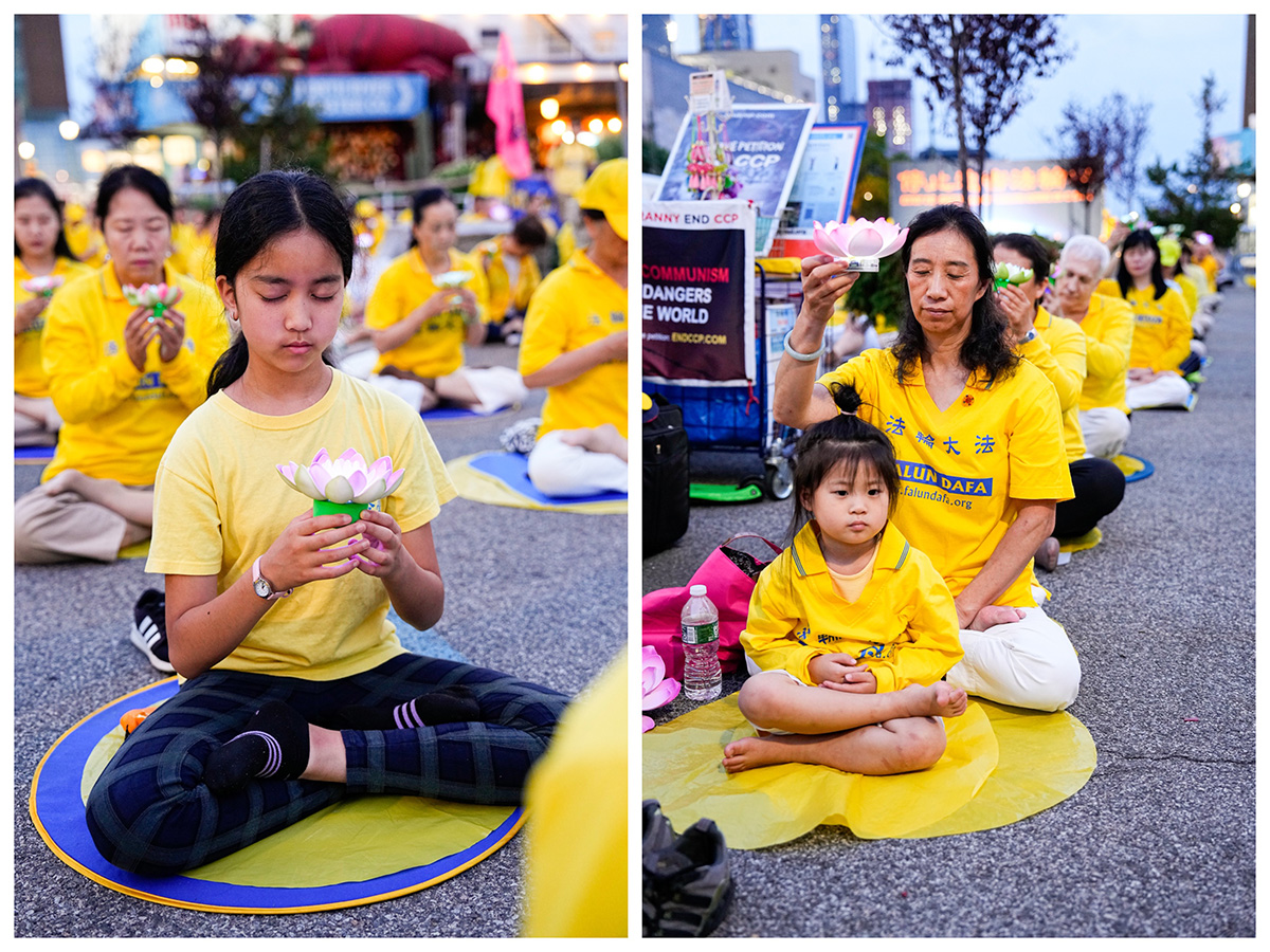 ![]() 图6~9:二零二二年七月十六日傍晚,纽约部分中西族裔的法轮功学员,齐聚在中领馆前举办,烛光夜悼活动。 |