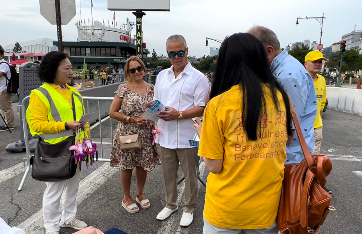 退休的纽约州警察托尼‧佩雷斯(Tony Perez)说:“我们与他们任何一位站在一起,尤其是那些寻求公道的中国人,那些遭受不公正的迫害的人。”