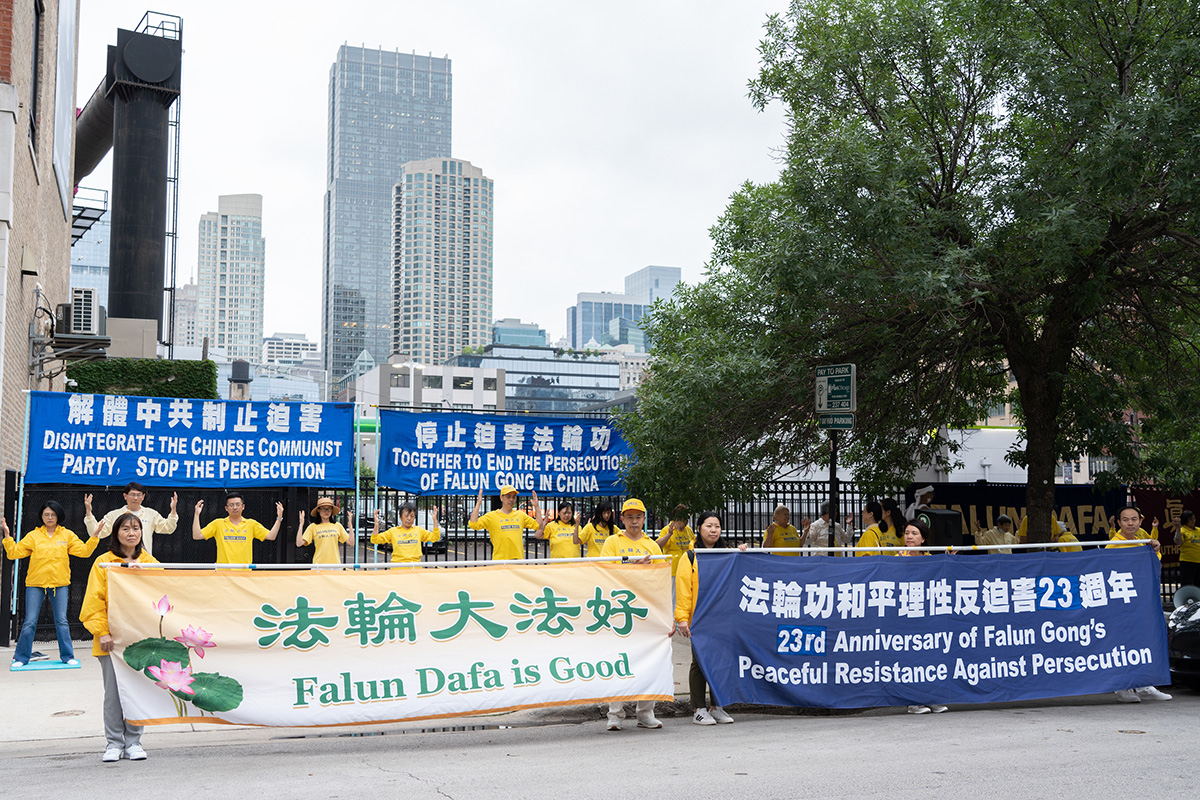 ![]() 图1~4:2022年7月16日,大芝加哥地区的部分法轮功学员在中领馆前举办集会和烛光夜悼,揭露和抗议中共23年来对法轮功学员的残酷迫害。 |