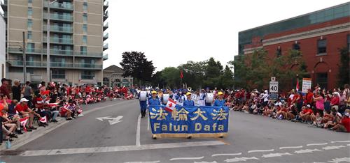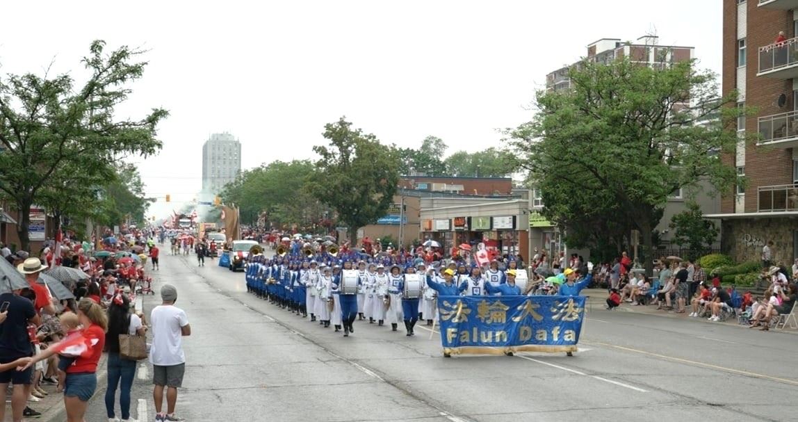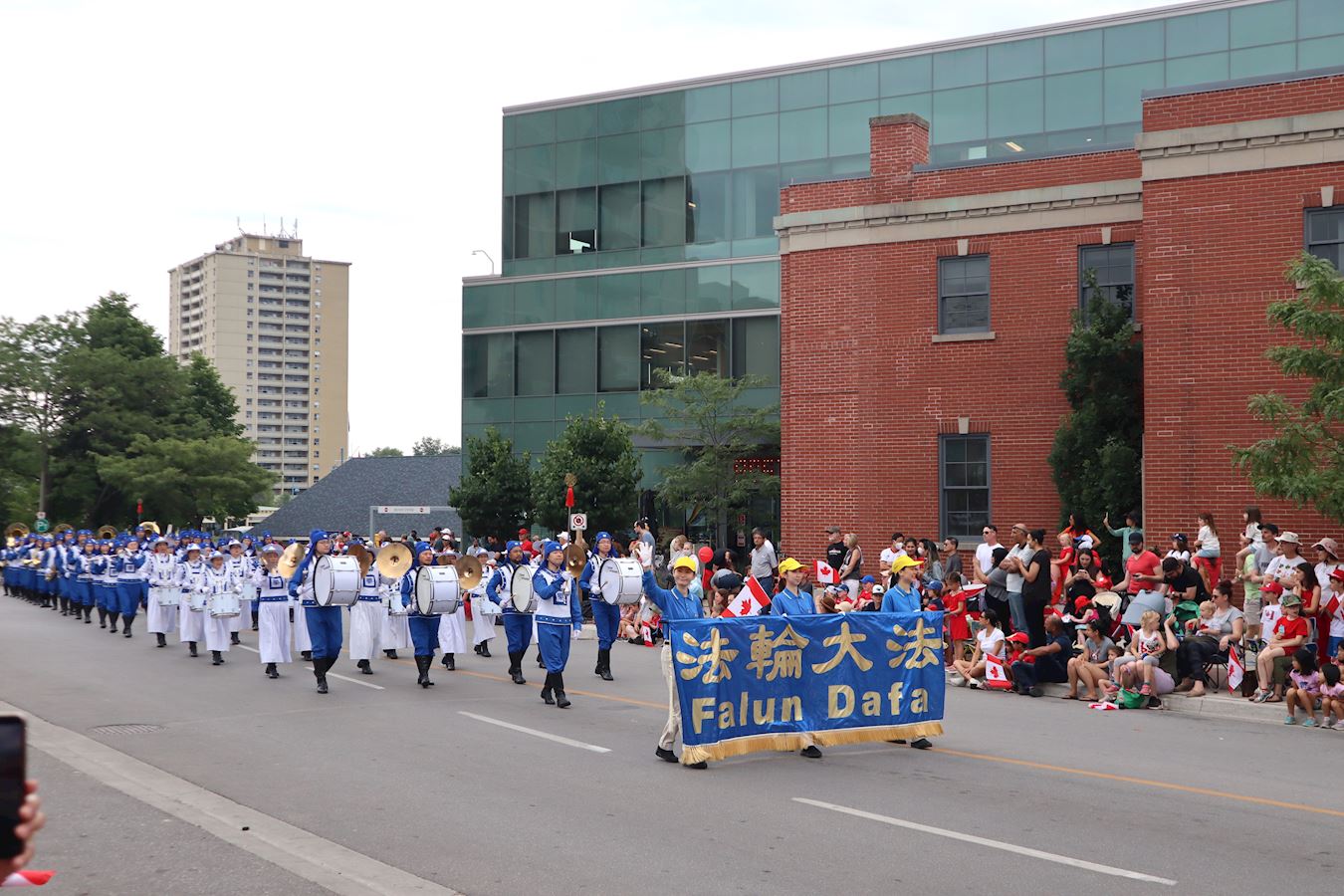 ![]() 图1~5:多伦多法轮功学员组成的天国乐团、腰鼓队参加了二零二二年的七月一日上午十一点在密西沙加市(Mississauga)的国庆游行。 |