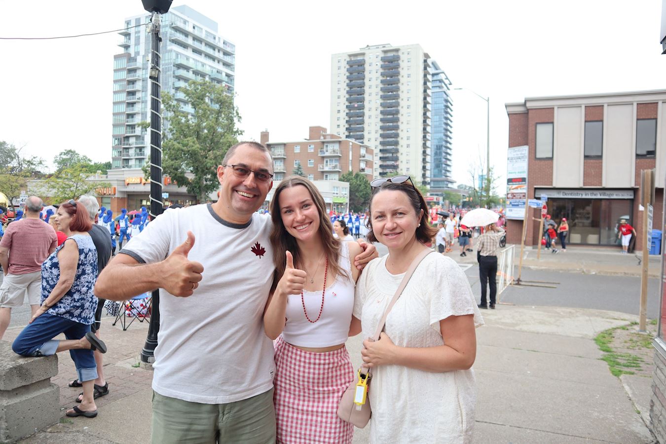 伊万(Ivan)一家人在路旁观看游行,随着天国乐团的音乐拍掌。他们表示这是第一次听到天国乐团的音乐,全家都非常喜欢。